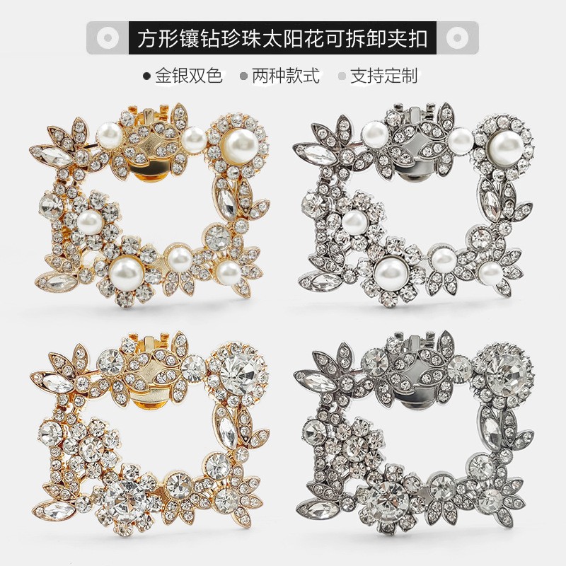 Съемная заколка в виде квадратного жемчужного подсолнуха, инкрустированного бриллиантами