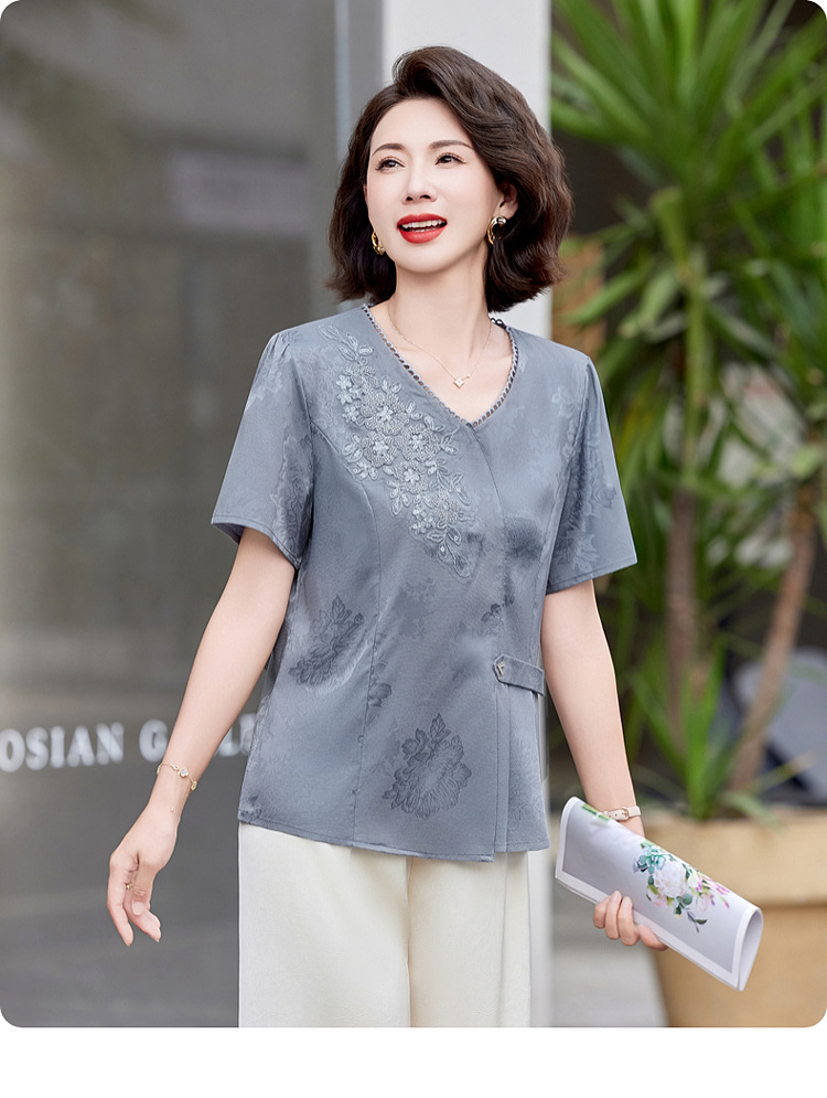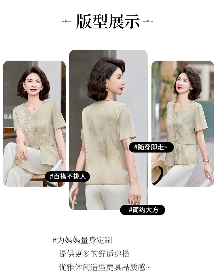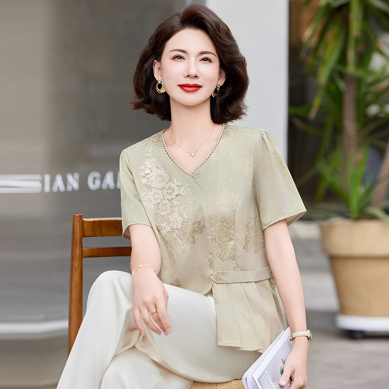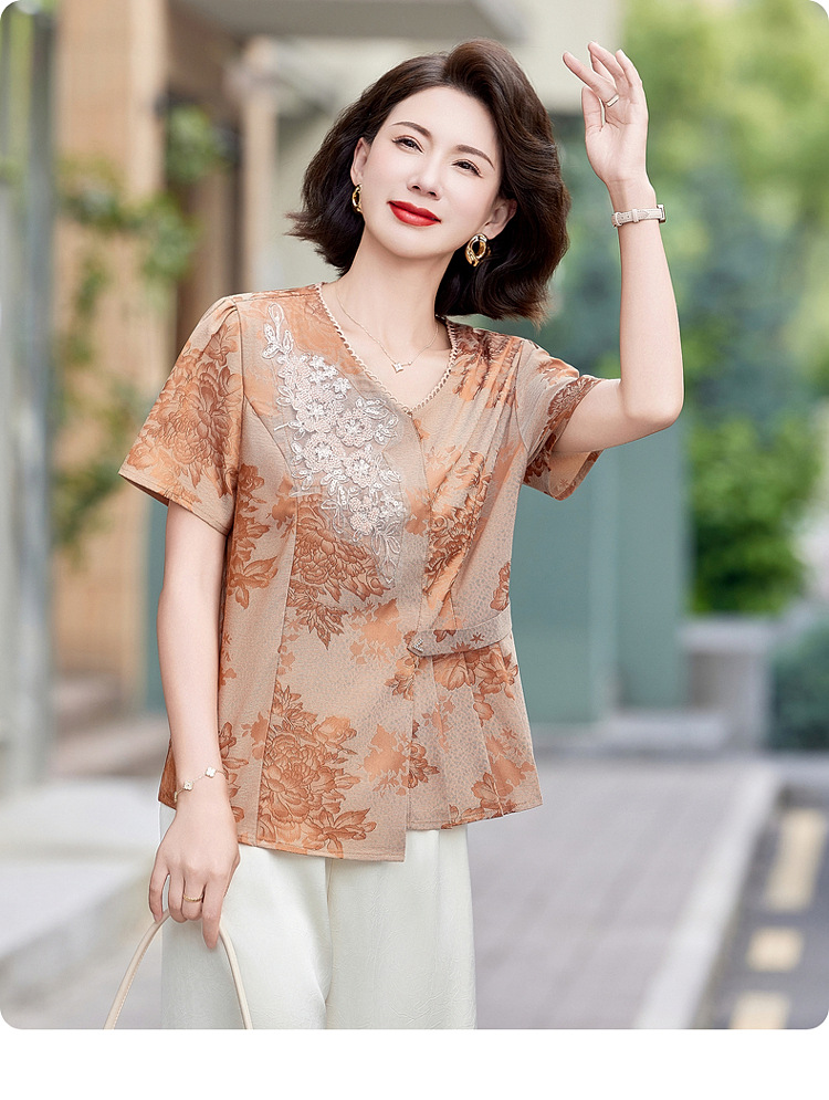 Мама летняя новая рубашка с короткими рукавами с v-образным вырезом темперамент