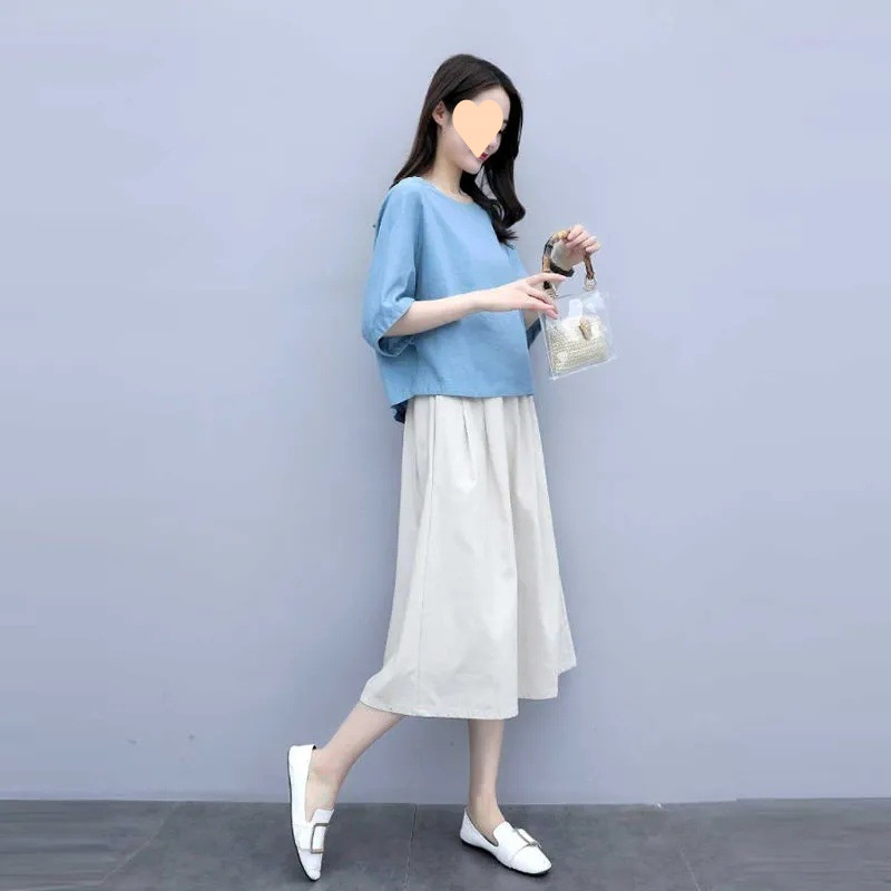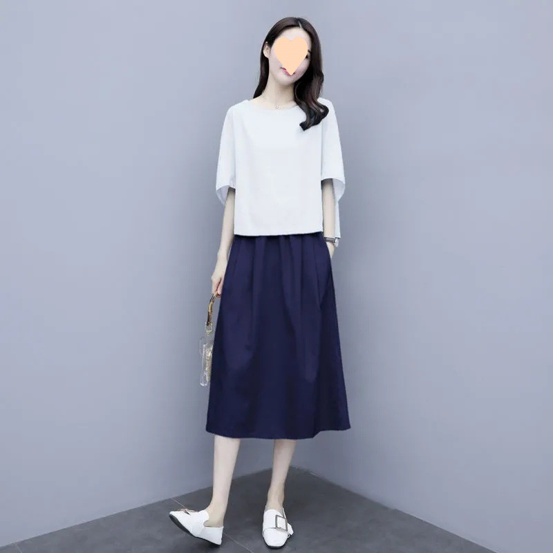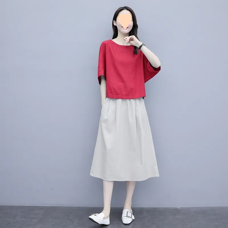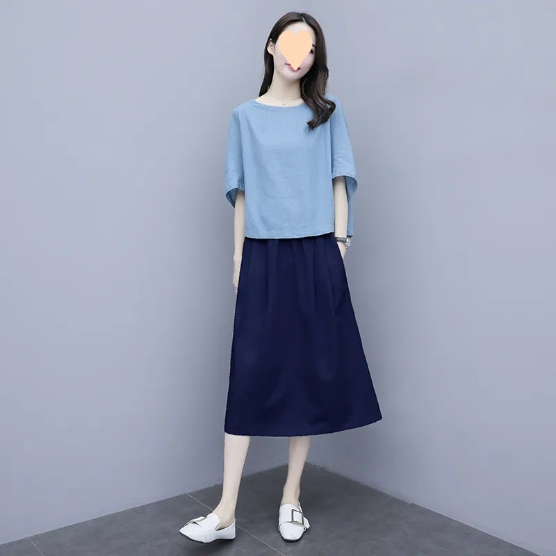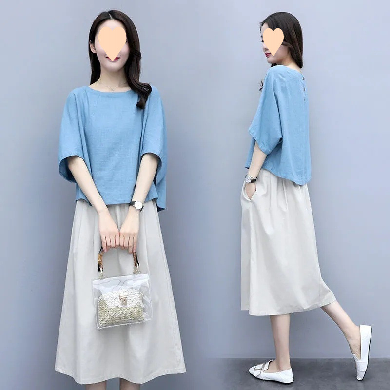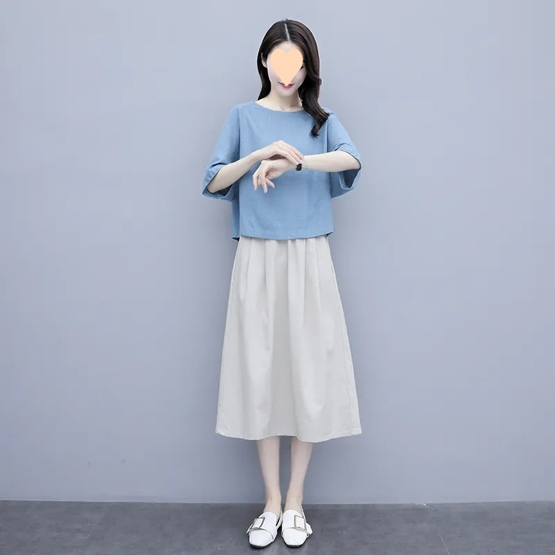 Льняное платье для женщин лето 2025, новое, стройнящее, скрывающее живот, двухкомпонентный костюм, элегантная популярная юбка, тренд