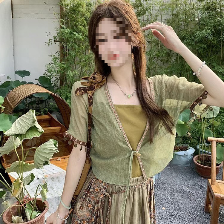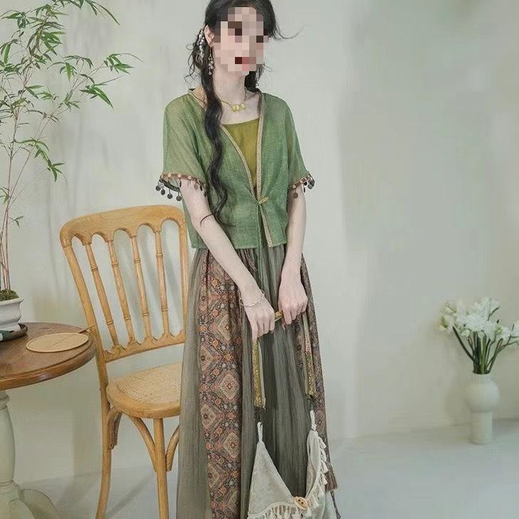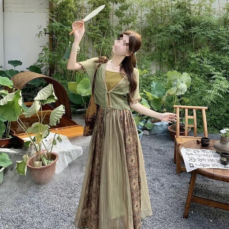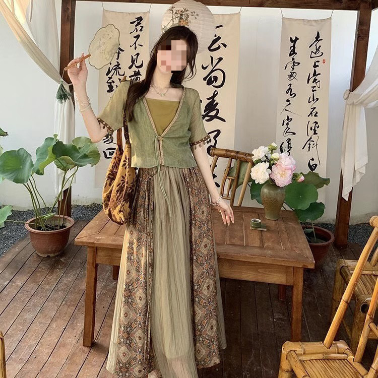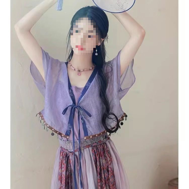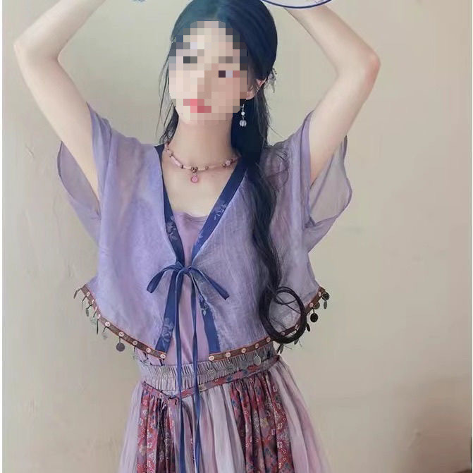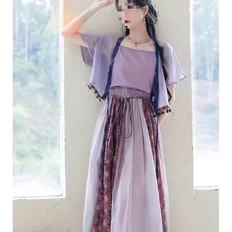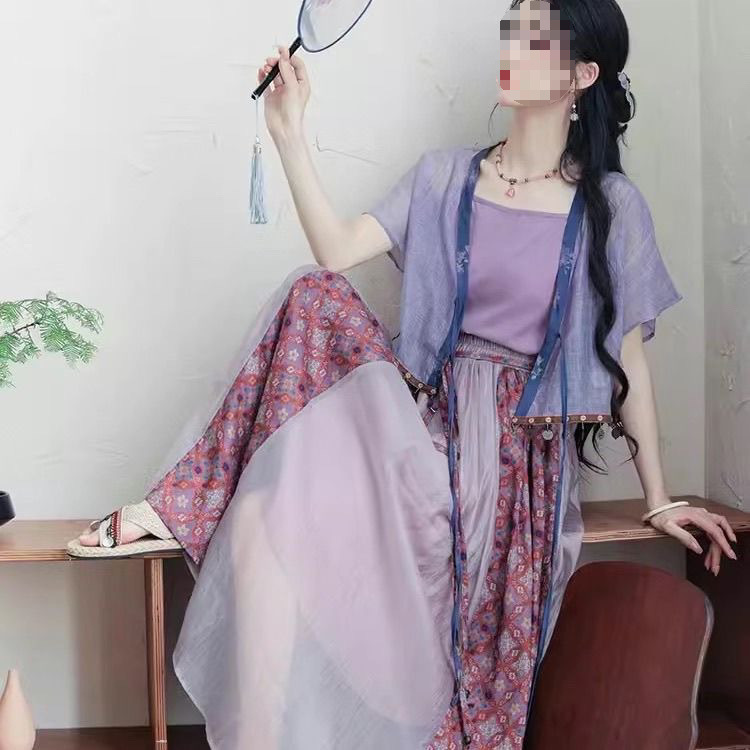 Wisteria фиолетовый ретро нежный улучшенный китайский элемент национального стиля верхняя юбка летний костюм