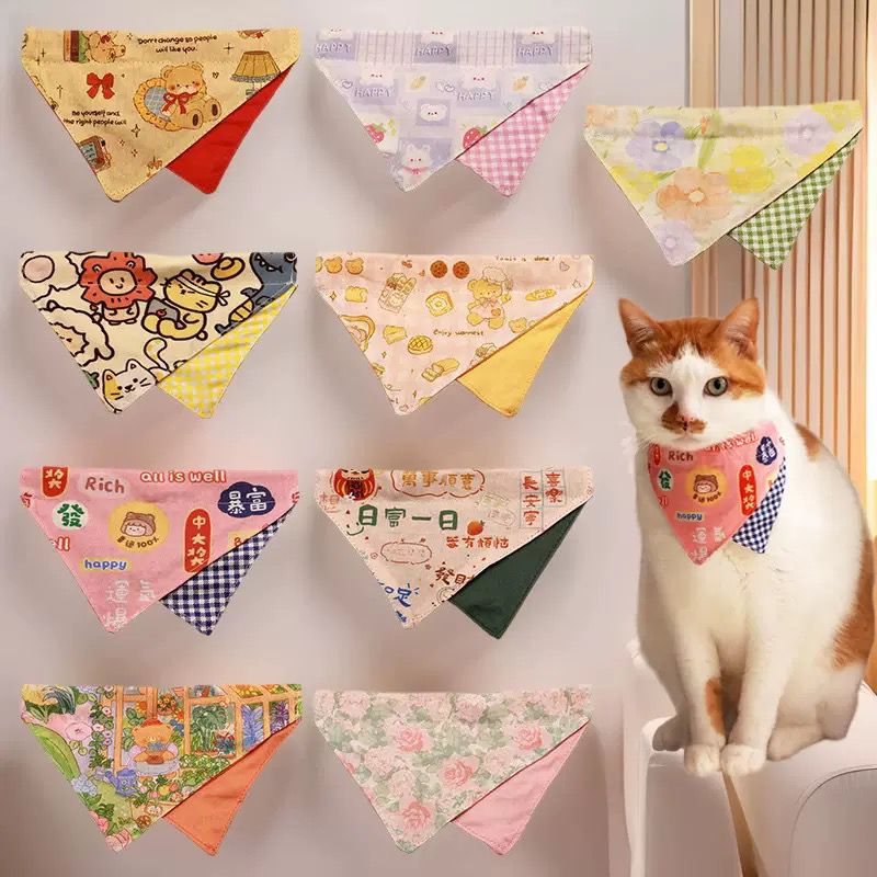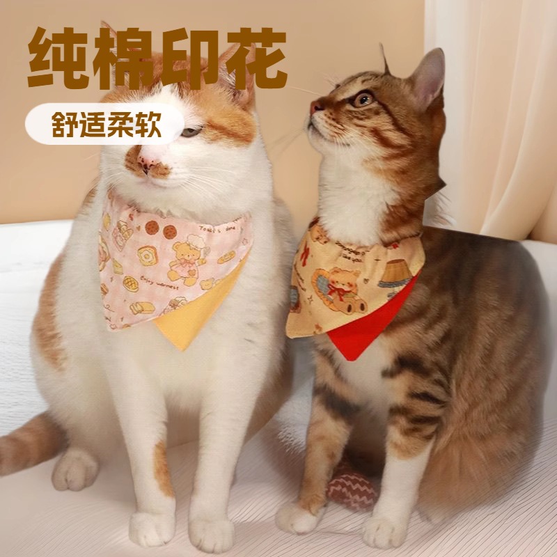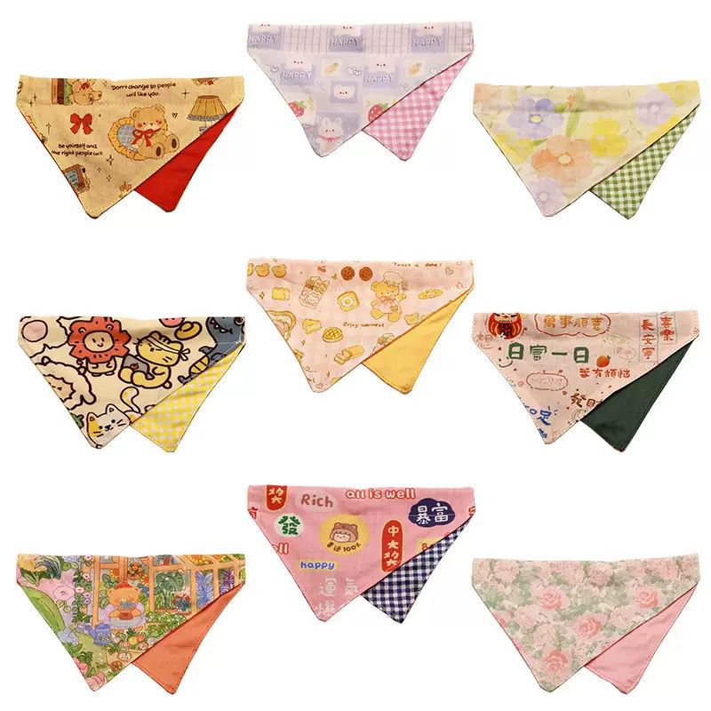 Трансграничное полотенце для кошачьей слюны из чистого хлопка с принтом, милый нагрудник для кошек и собак, карманный треугольный шарф, товары для домашних животных