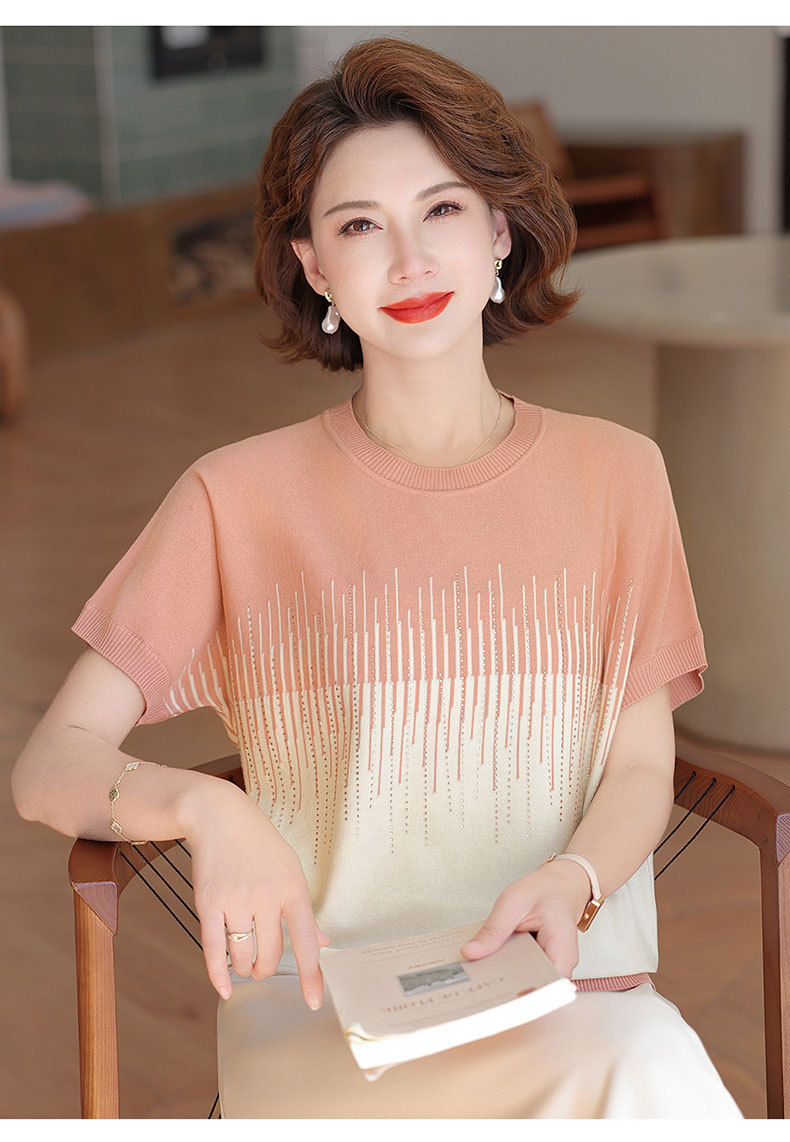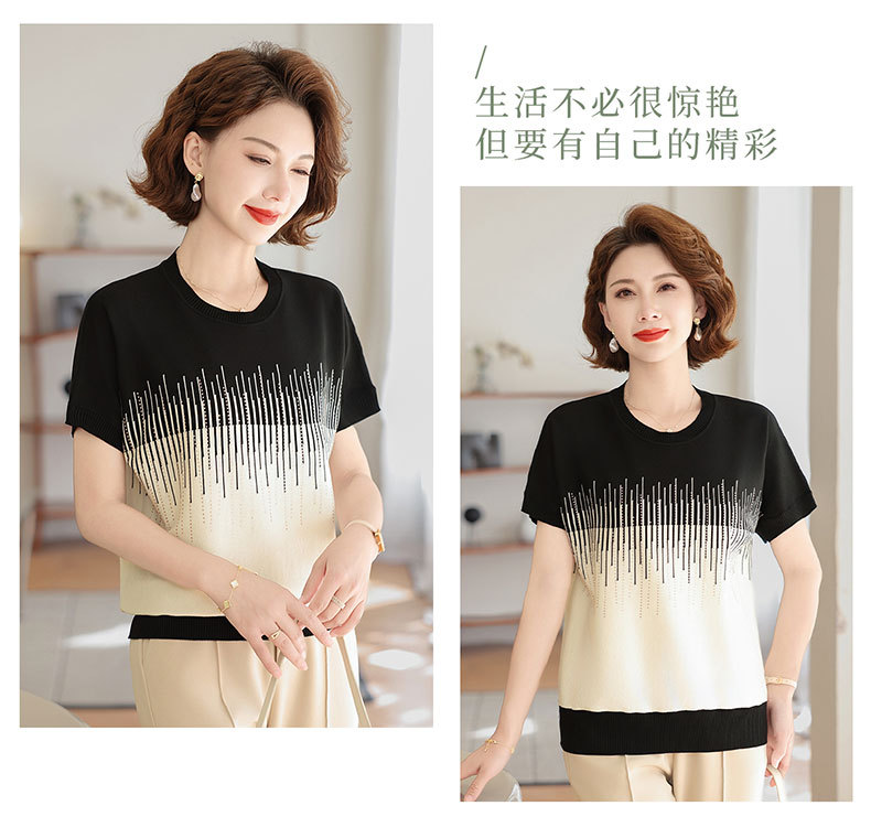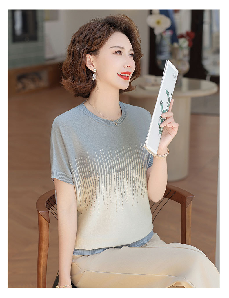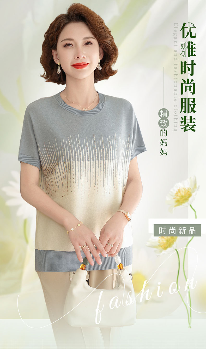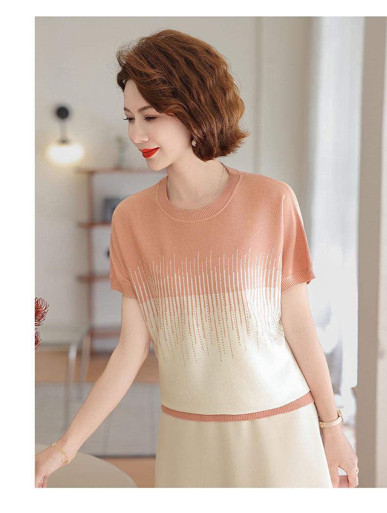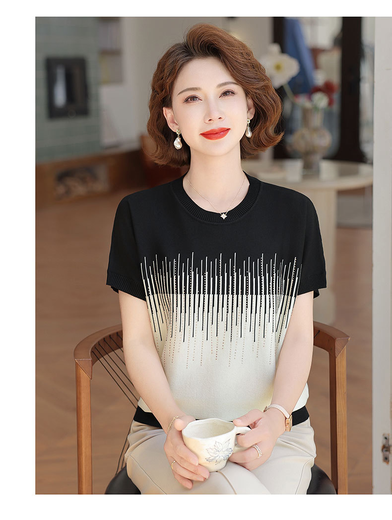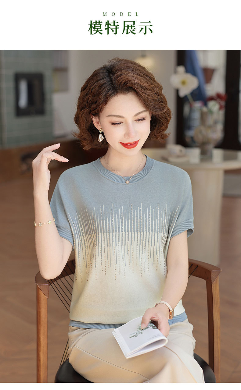 Мама летнее платье темперамент с короткими рукавами 2025 новый средний и пожилой женский свитер с ледяным шелком футболка с круглым вырезом