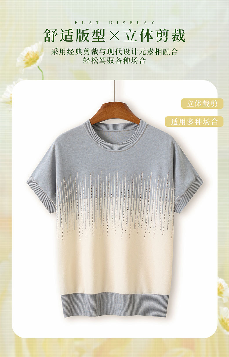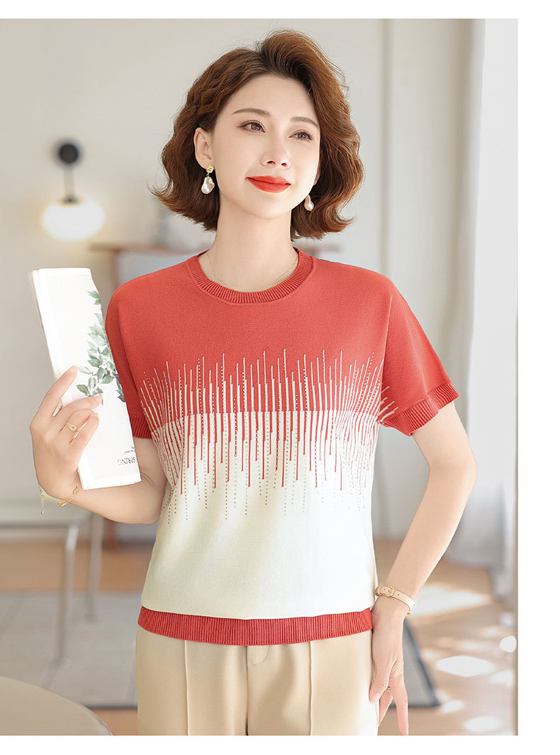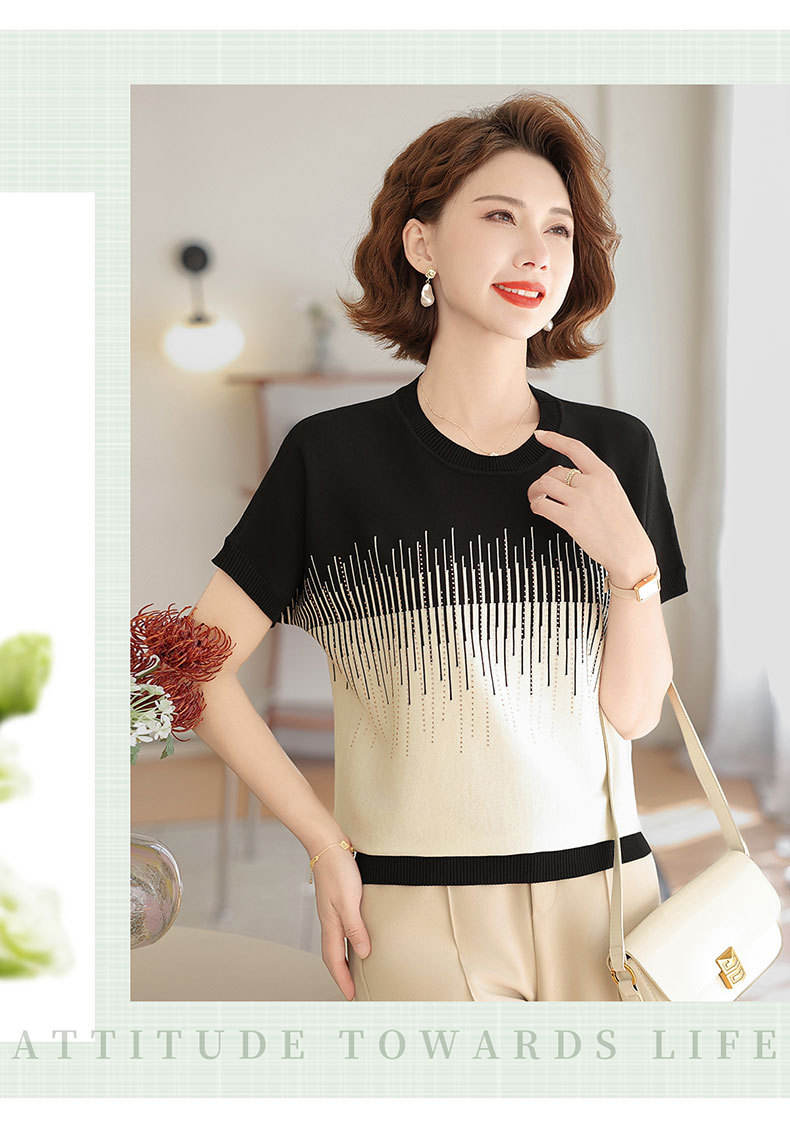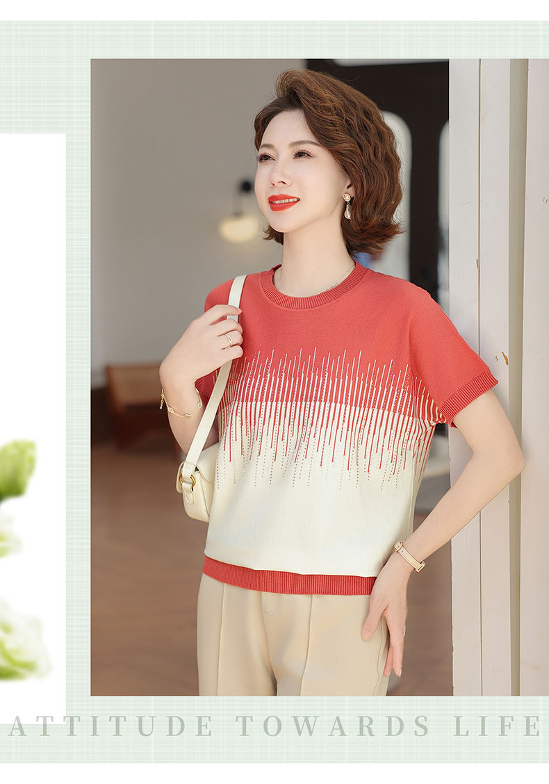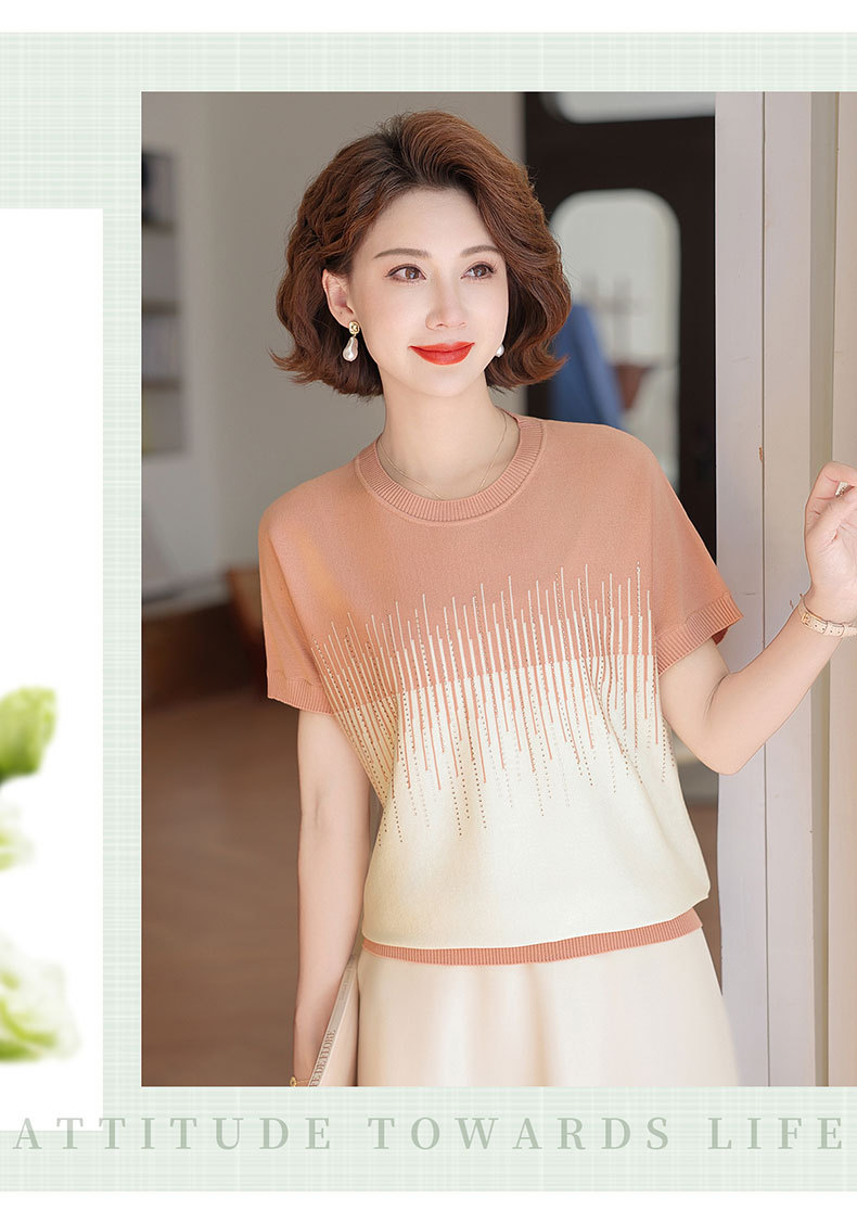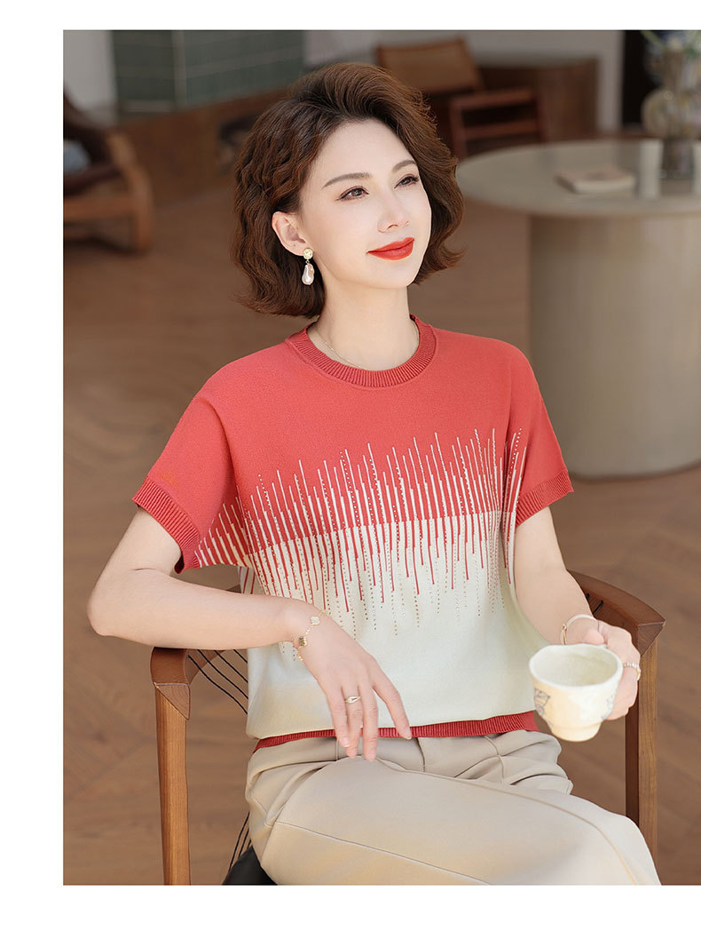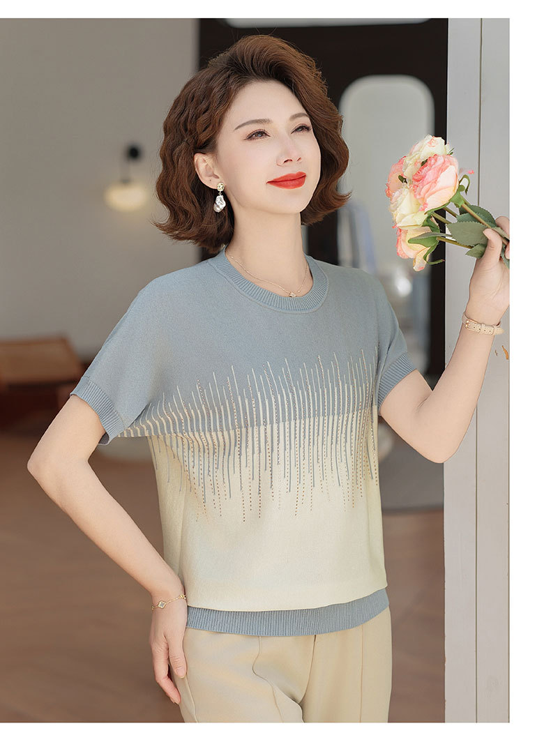 Мама летнее платье темперамент с короткими рукавами 2025 новый средний и пожилой женский свитер с ледяным шелком футболка с круглым вырезом