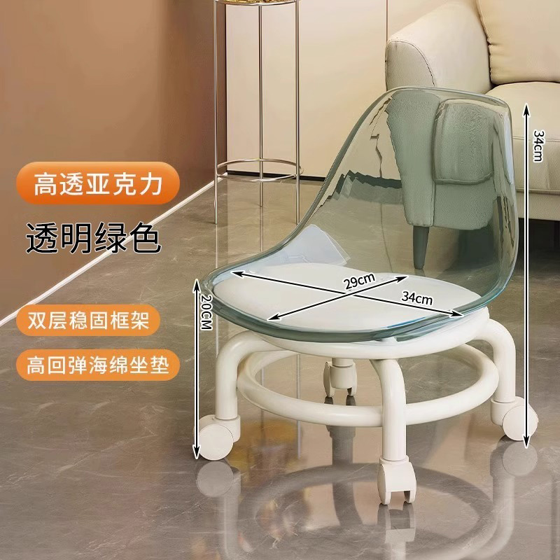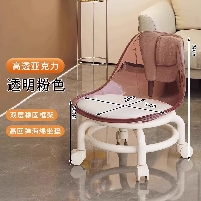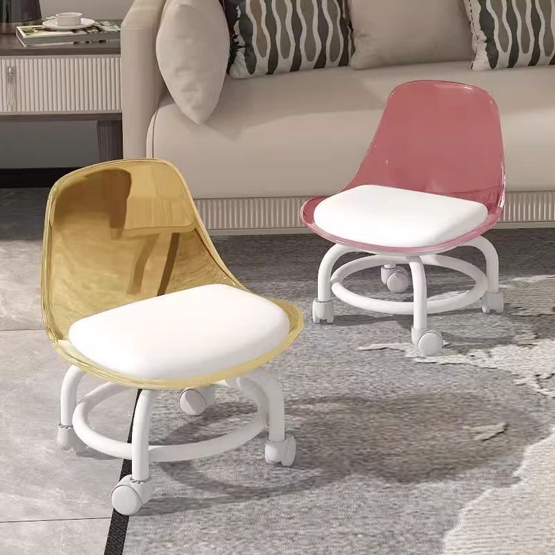 Низкий табурет на колесиках, бесшумный детский стул для гостиной, прозрачная раздвижная скамейка, универсальное колесо, маленький табурет для взрослых