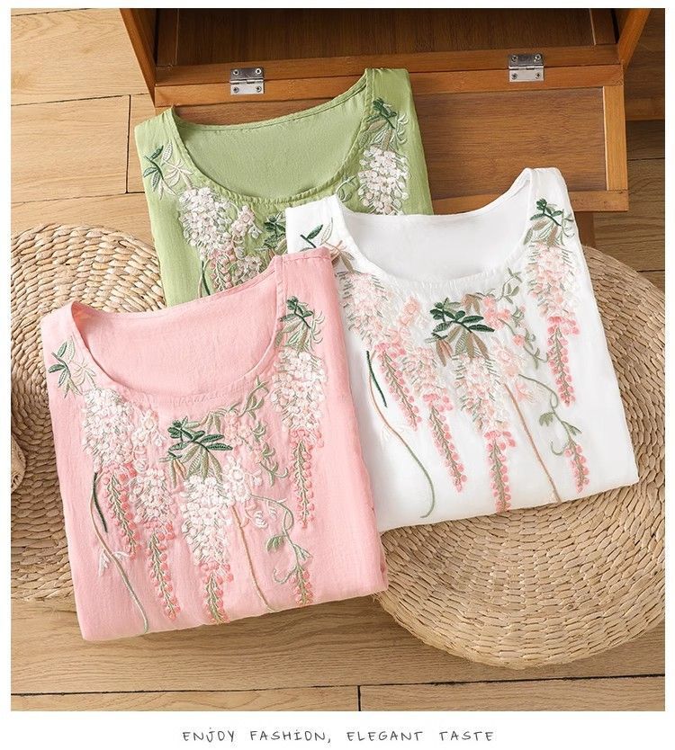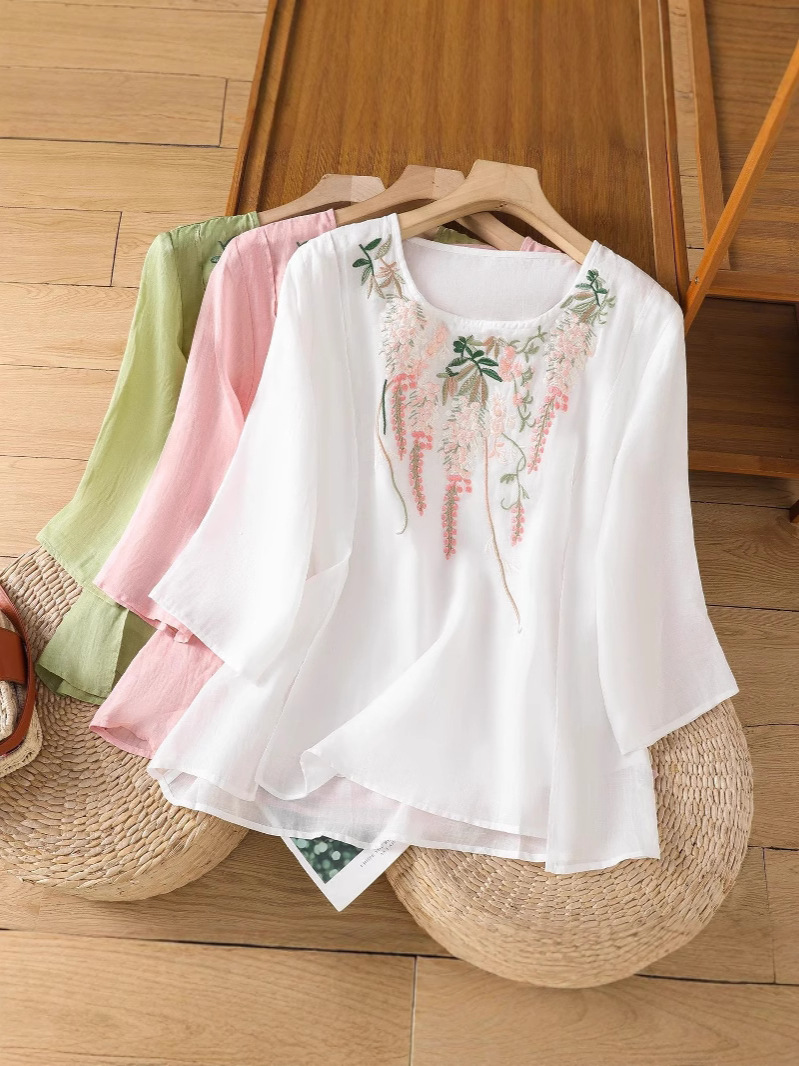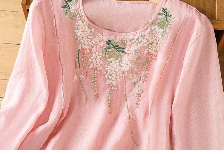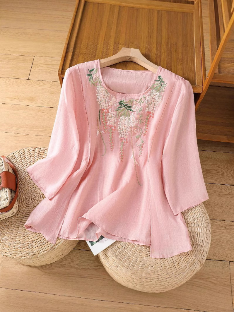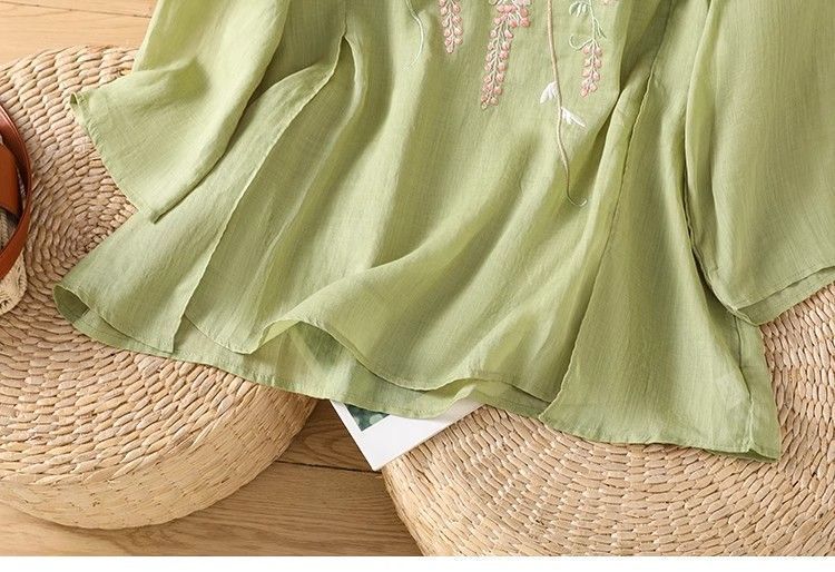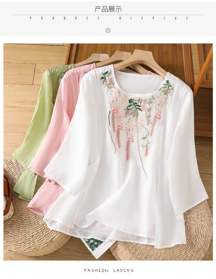 Женская рубашка из рами с тяжелой вышивкой для среднего и пожилого возраста, новинка лета 2025 года, свободная рубашка в стиле ретро в стиле шинуазри из хлопка и льна, топ