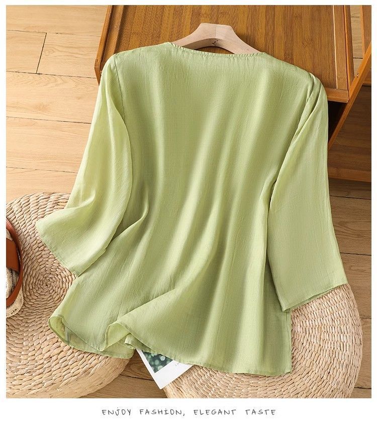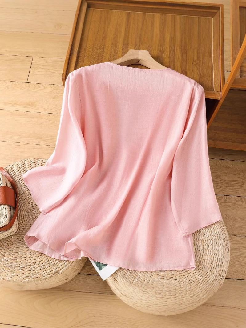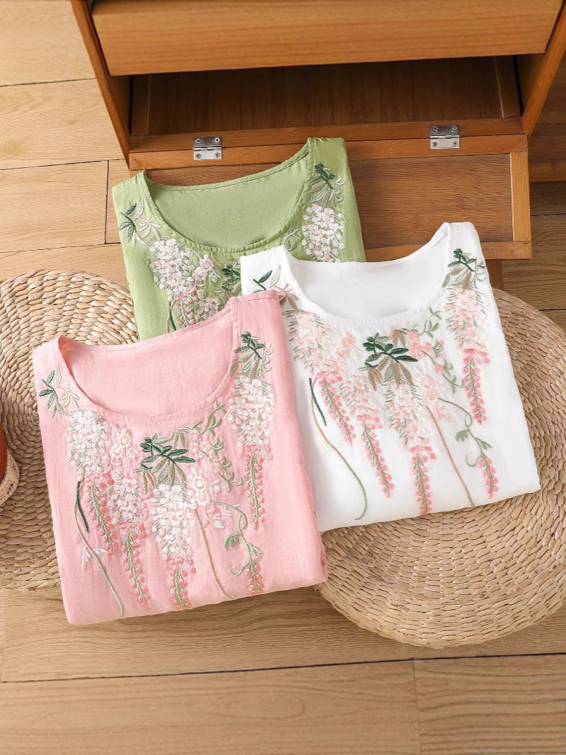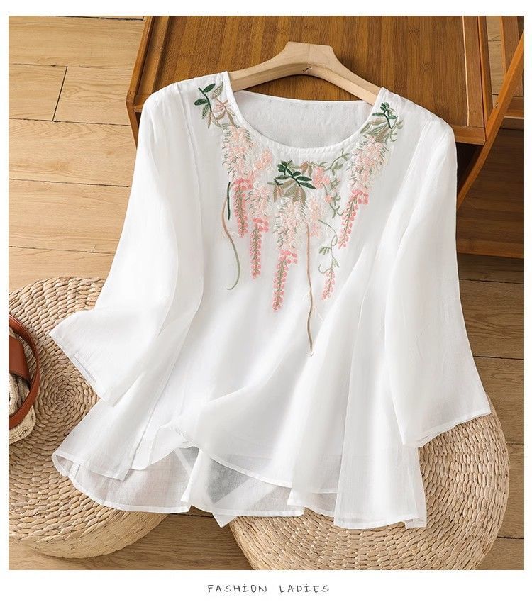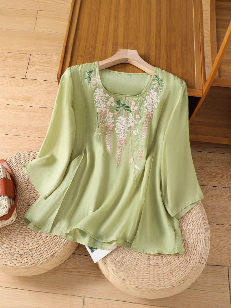 Женская рубашка из рами с тяжелой вышивкой для среднего и пожилого возраста, новинка лета 2025 года, свободная рубашка в стиле ретро в стиле шинуазри из хлопка и льна, топ