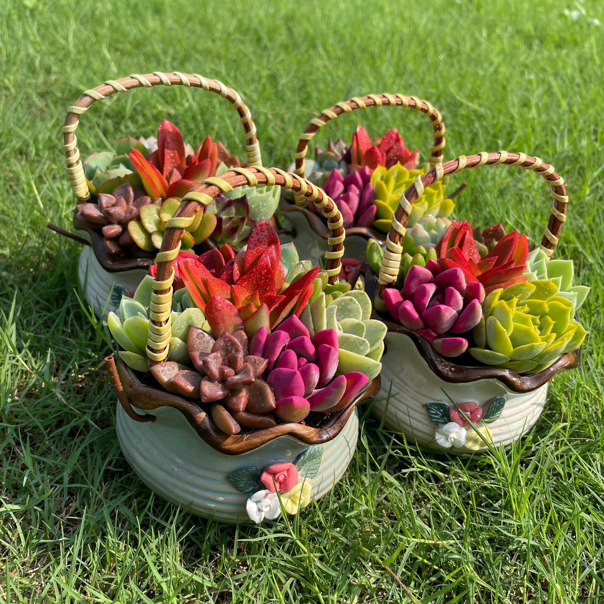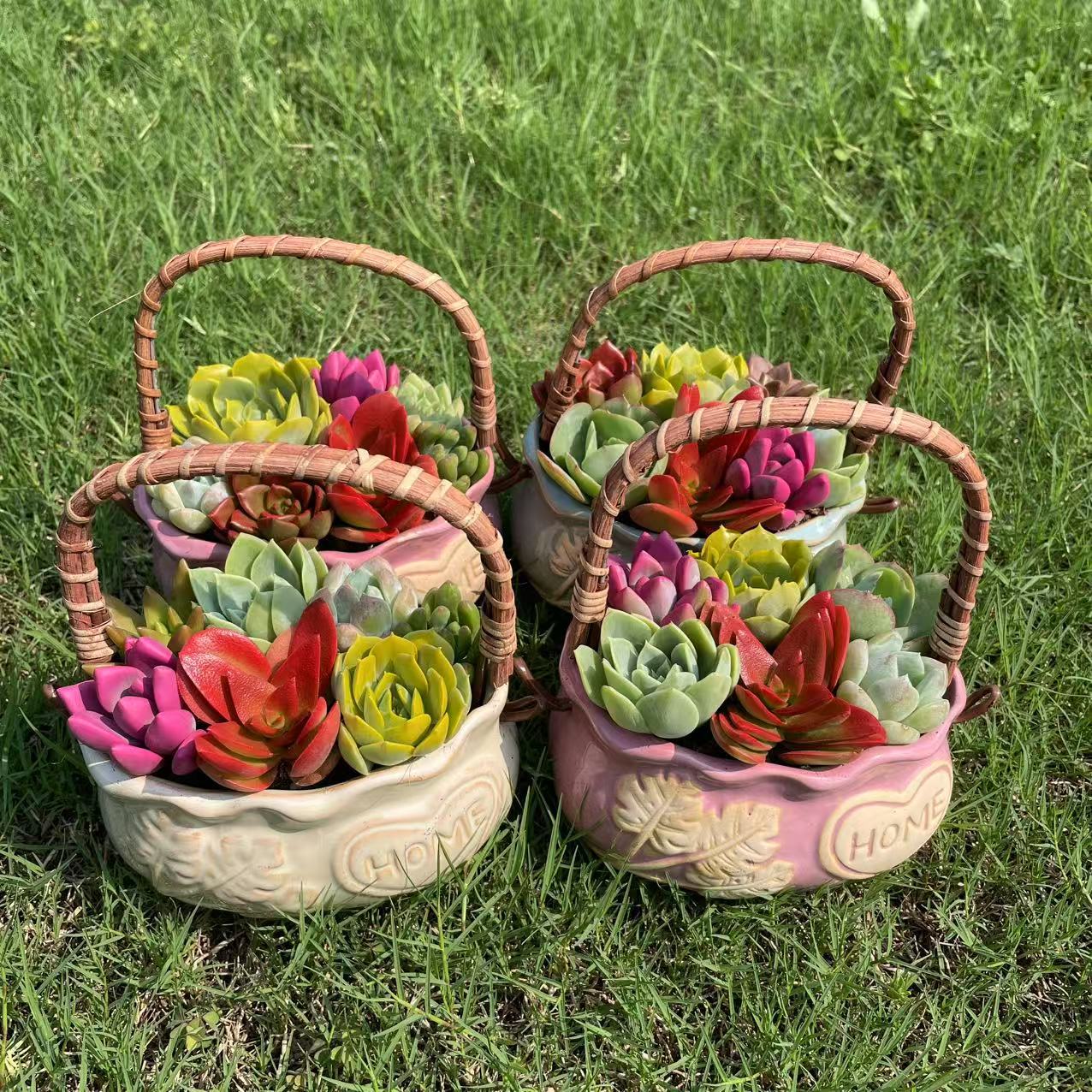 Портативная корзина для суккулентов, сувенирный подарок, керамический горшок для растений, праздничный подарок, горшок для суккулентов, настольные украшения, украшения