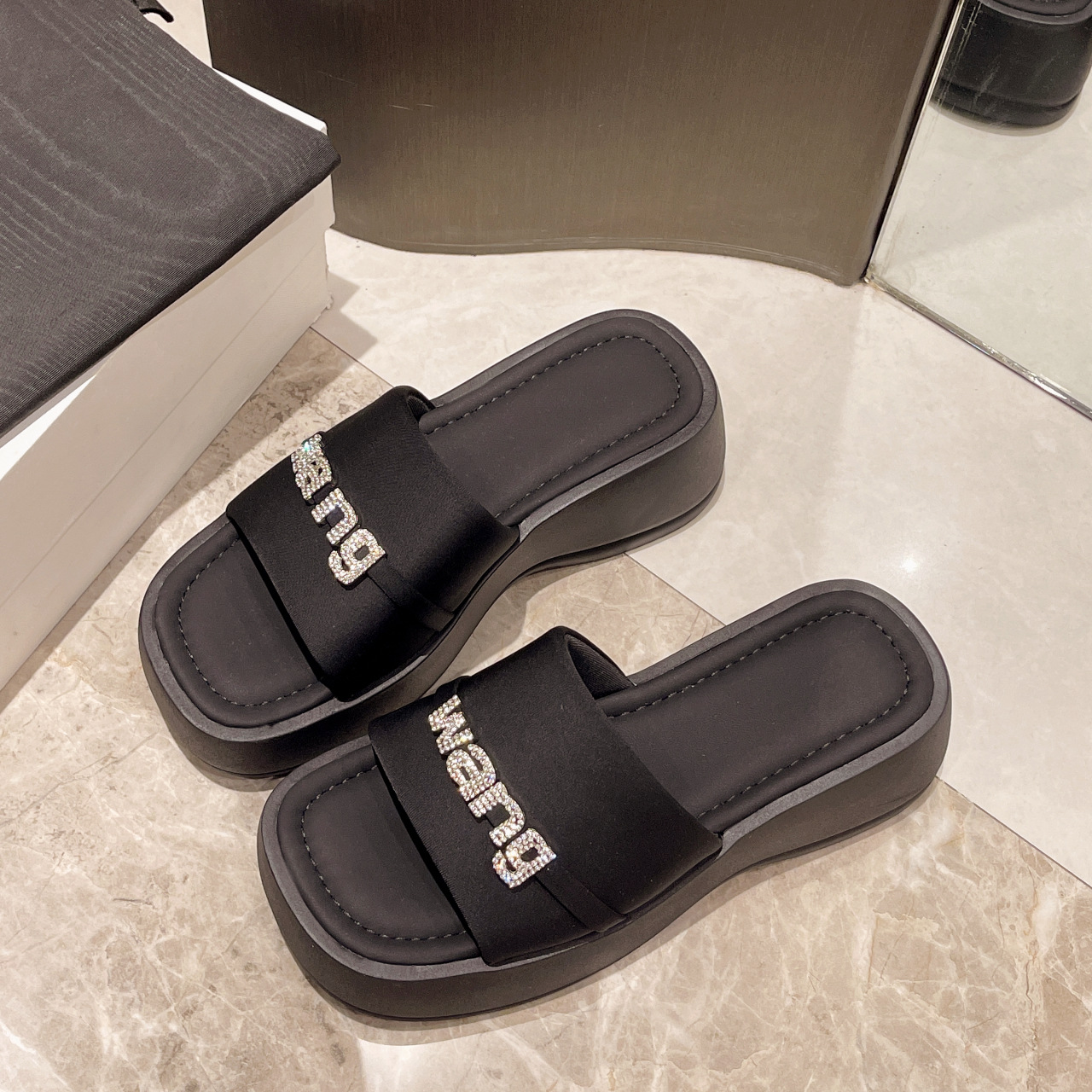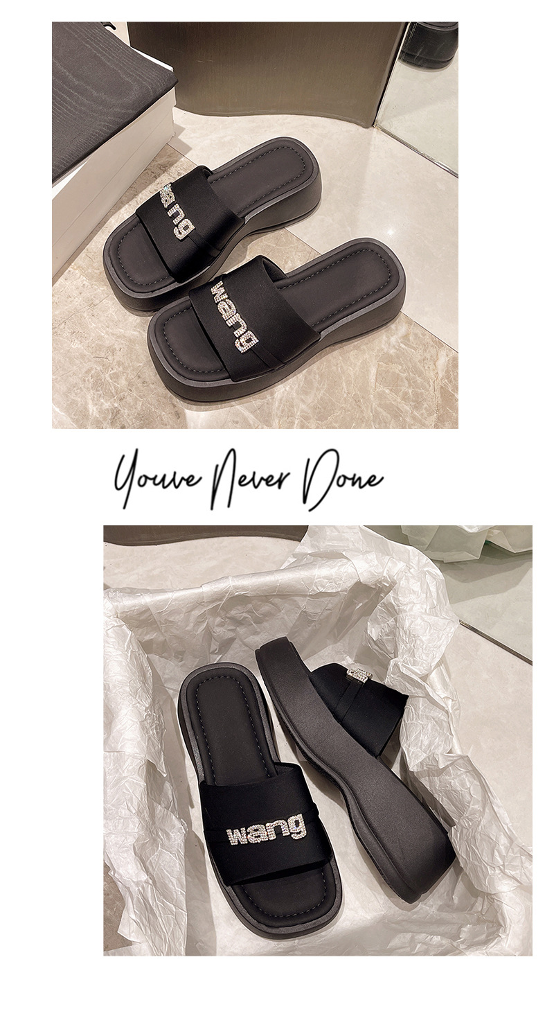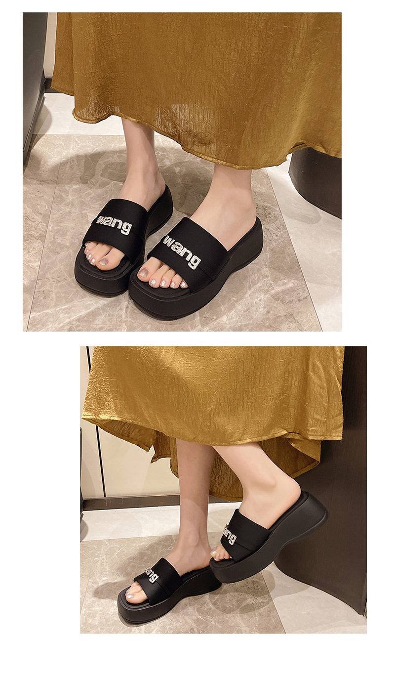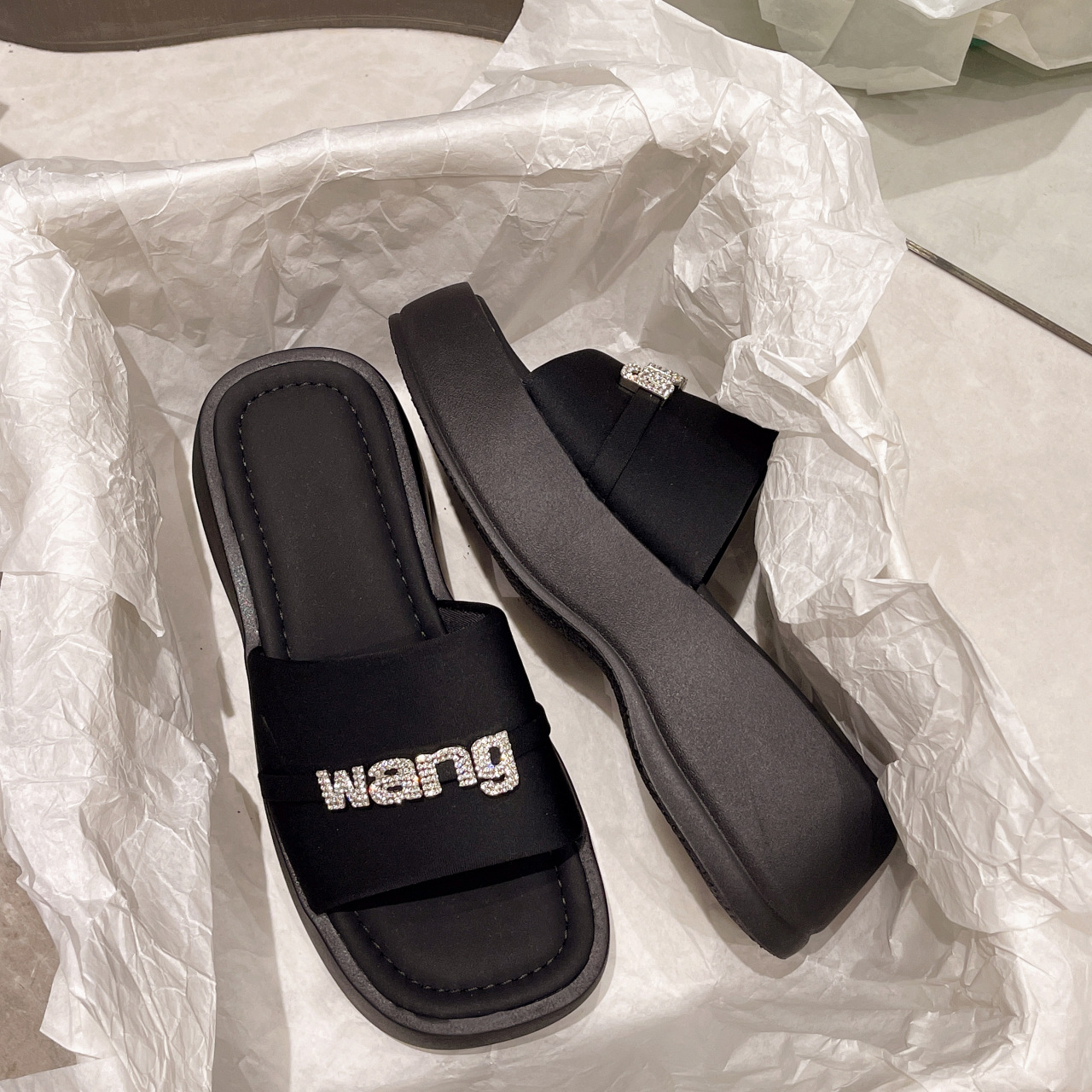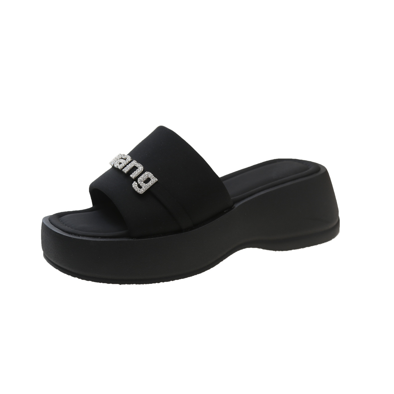 Женские летние босоножки 2025 года, новые, на высокой толстой подошве с камнями, чёрные, красивые.
