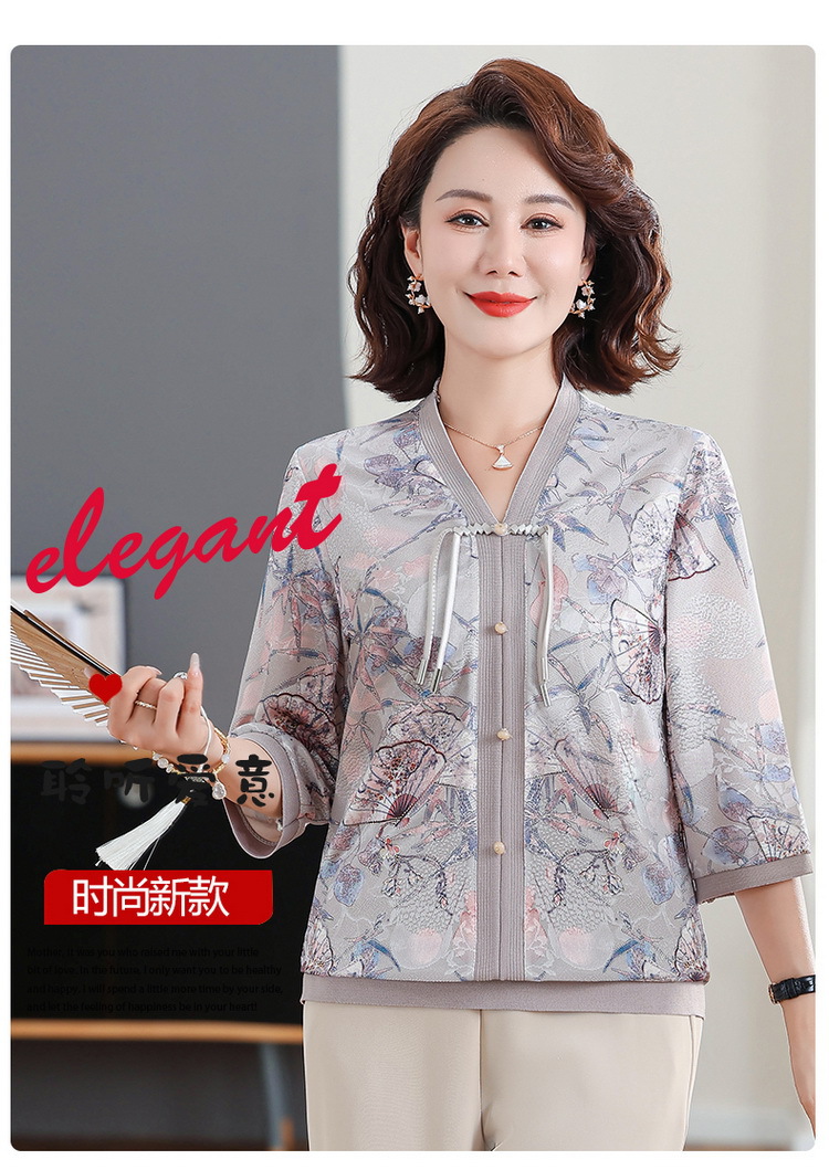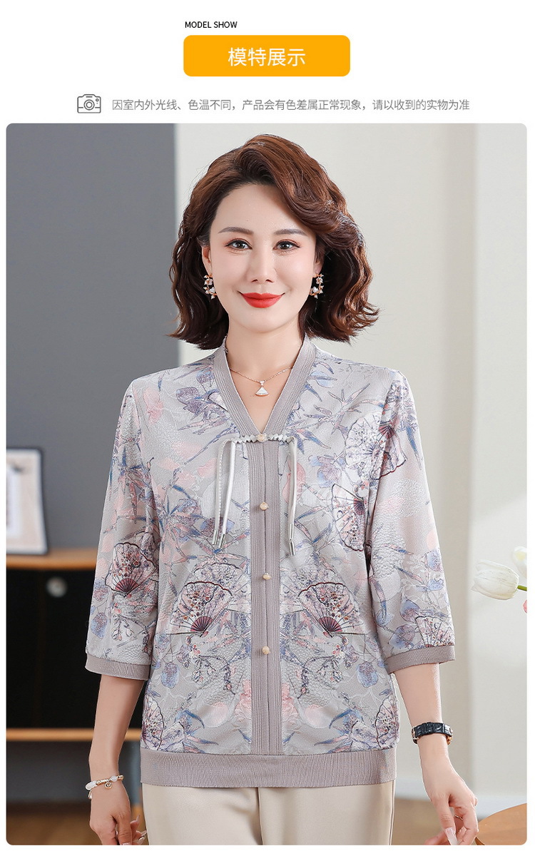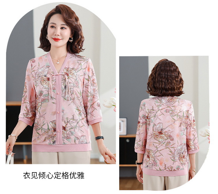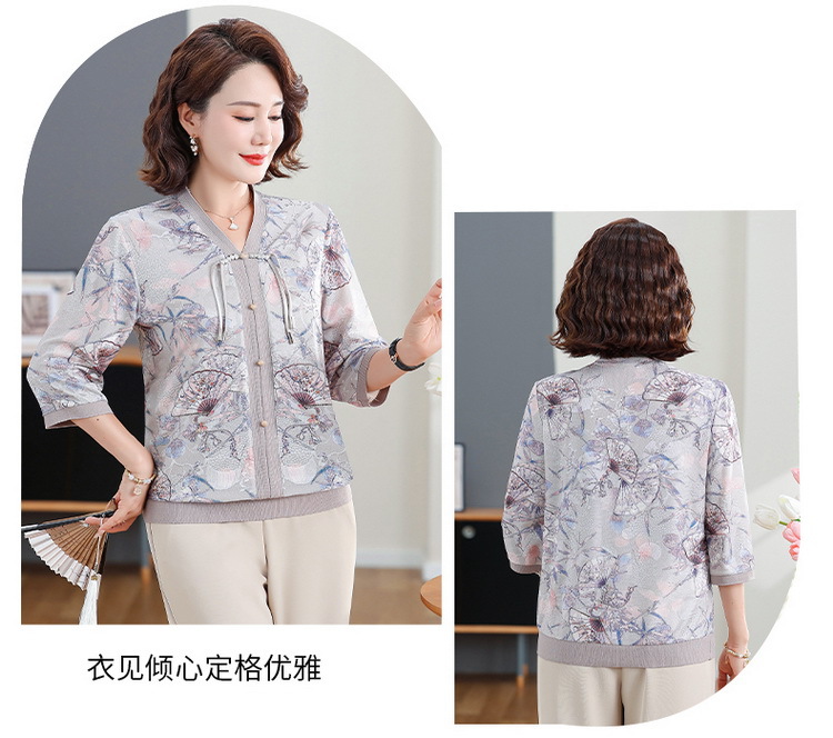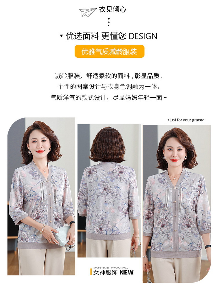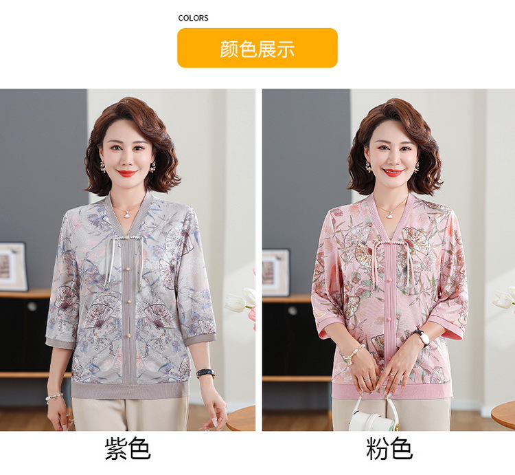 2025 новой летней одежды для мам, новые футболки с короткими рукавами в стиле шинуазри, модные рубашки, уменьшающие возраст, топы из ледяного шелка для женщин среднего и пожилого возраста.