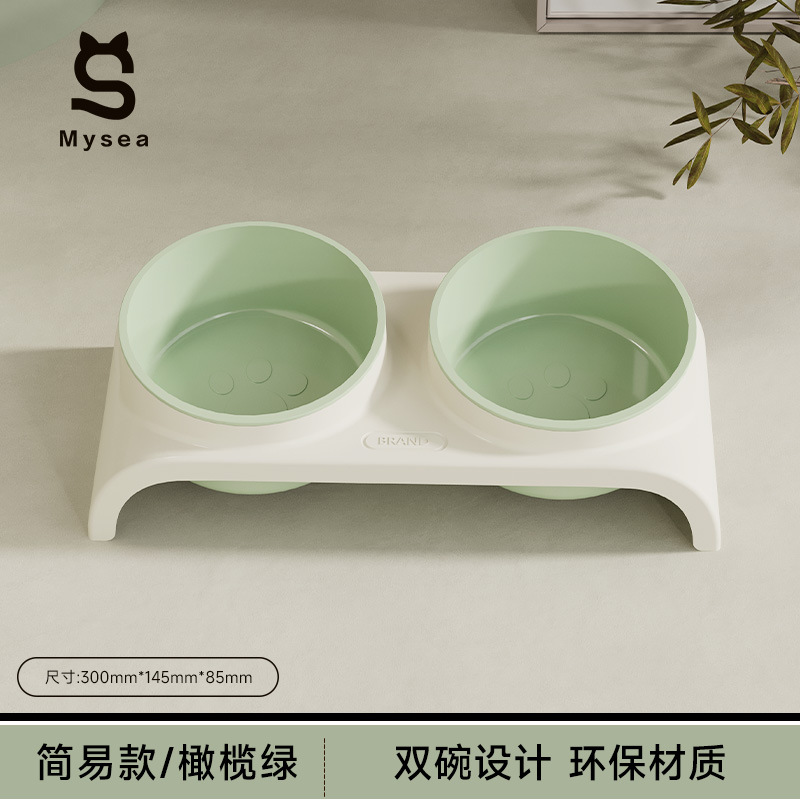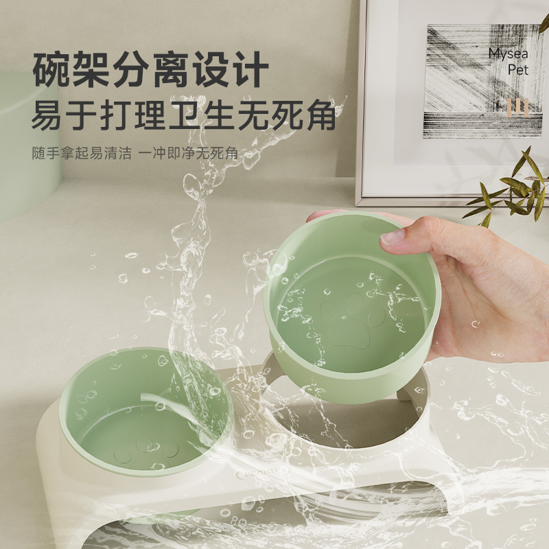 Экологичная двойная миска для кошек Mai Shi с наклонным краем, миска для собак для воды и корма, защищает шейные позвонки и предотвращает проливание