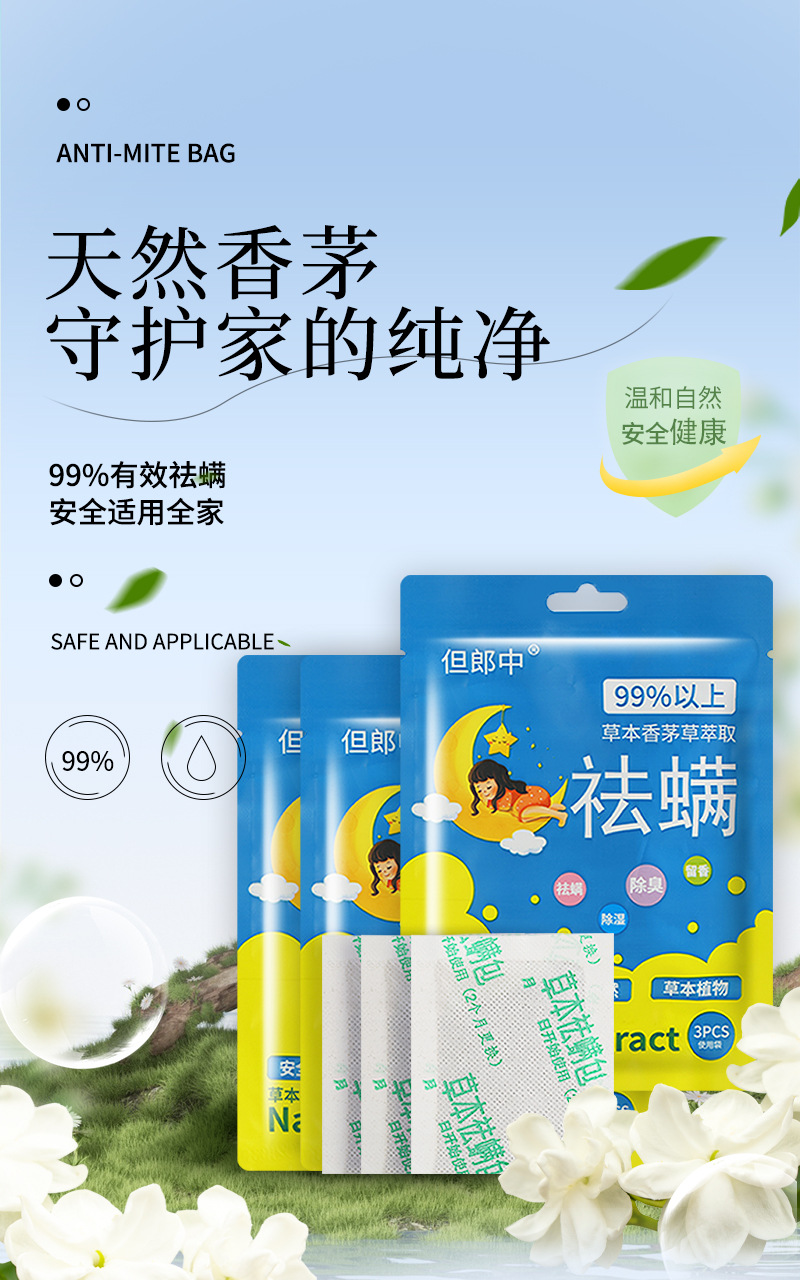 Набор из 3-х мешочков для удаления клещей на основе натуральных растительных компонентов для дома, спальни и детской комнаты.