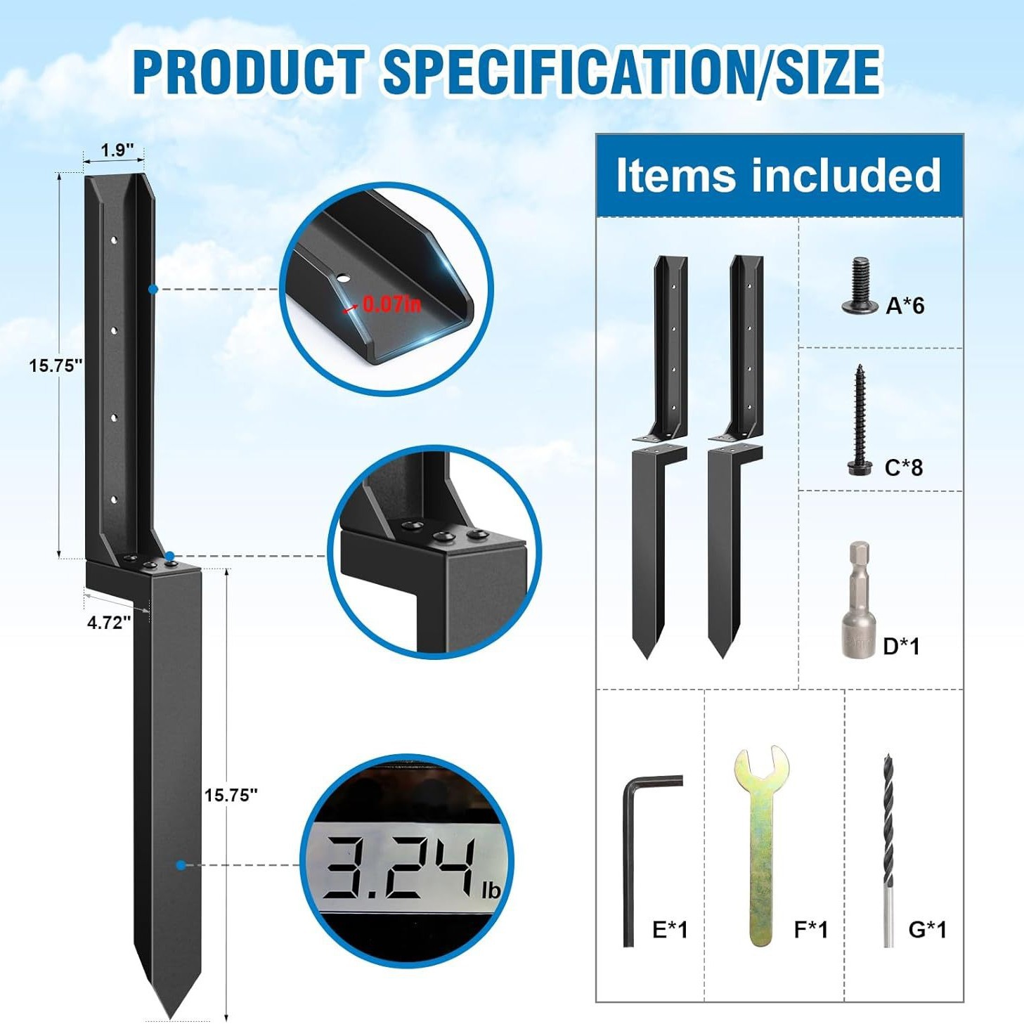 Анкерные детали для ремонта трансграничного забора, набор инструментов для ремонта металлического армирования забора, комплект заднего анкера, сверхмощный заземляющий шип.