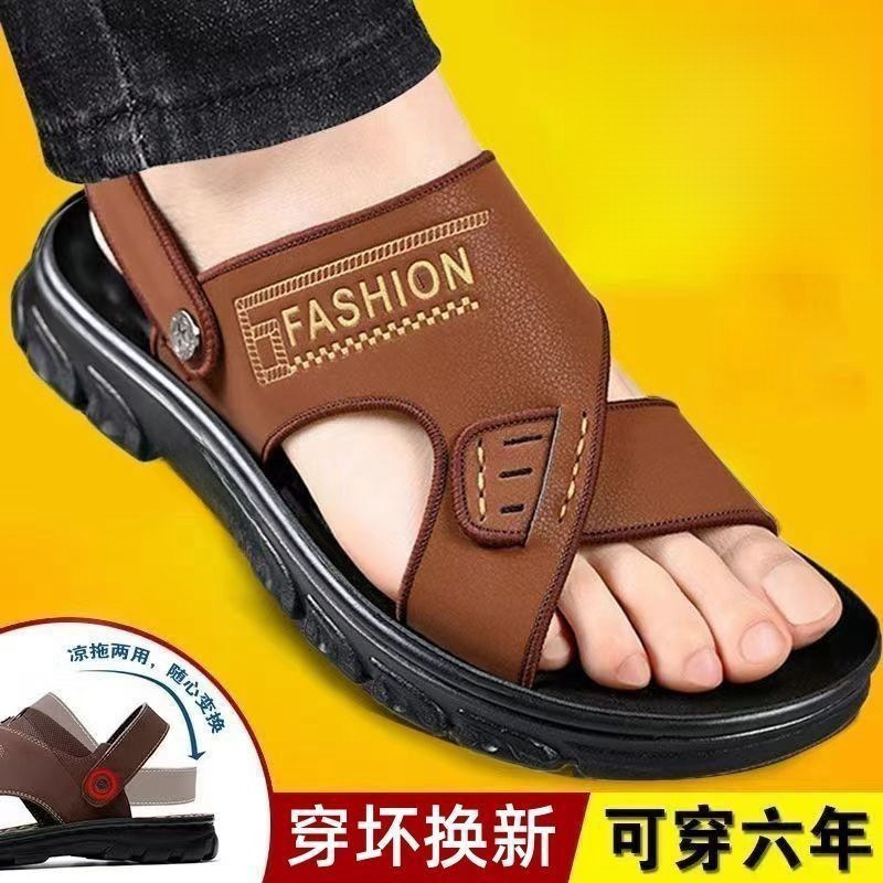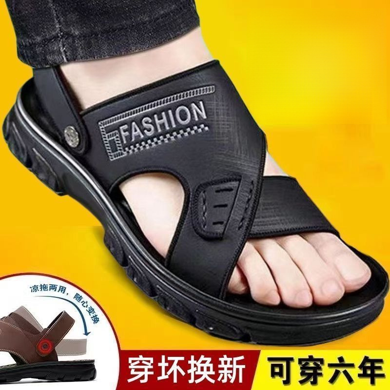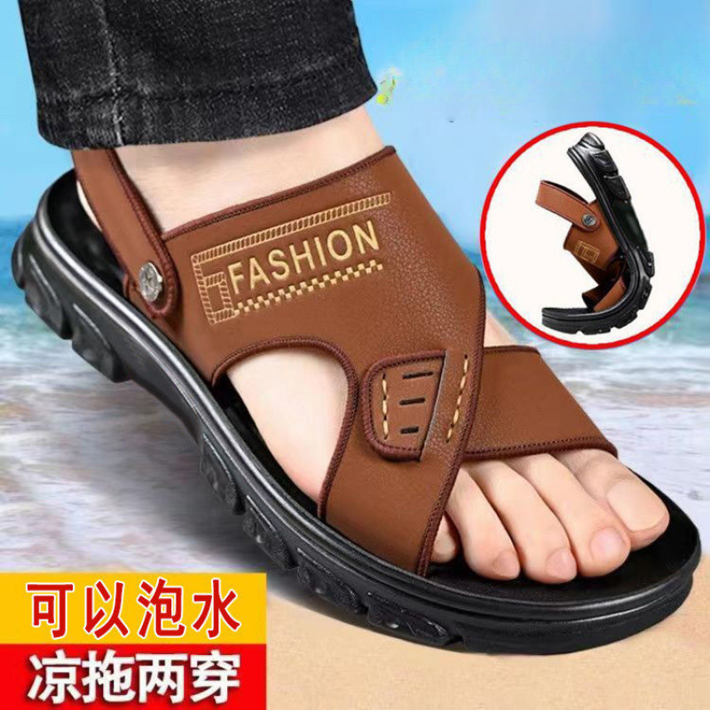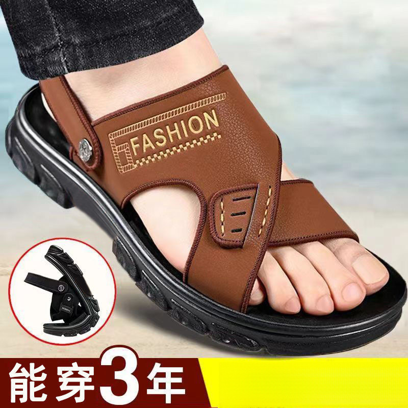 Мужские сандалии 2024 Новые пляжные летние сандалии для папы на толстой подошве, нескользящие универсальные высококачественные пляжные тапочки.