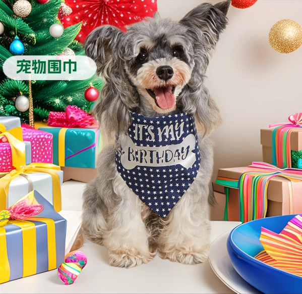 Новый трансграничный продукт, хит продаж, треугольный шарф на день рождения для домашних животных, пятиконечная звезда, шарф для собак и кошек, шарф для домашних животных, шарф на день рождения