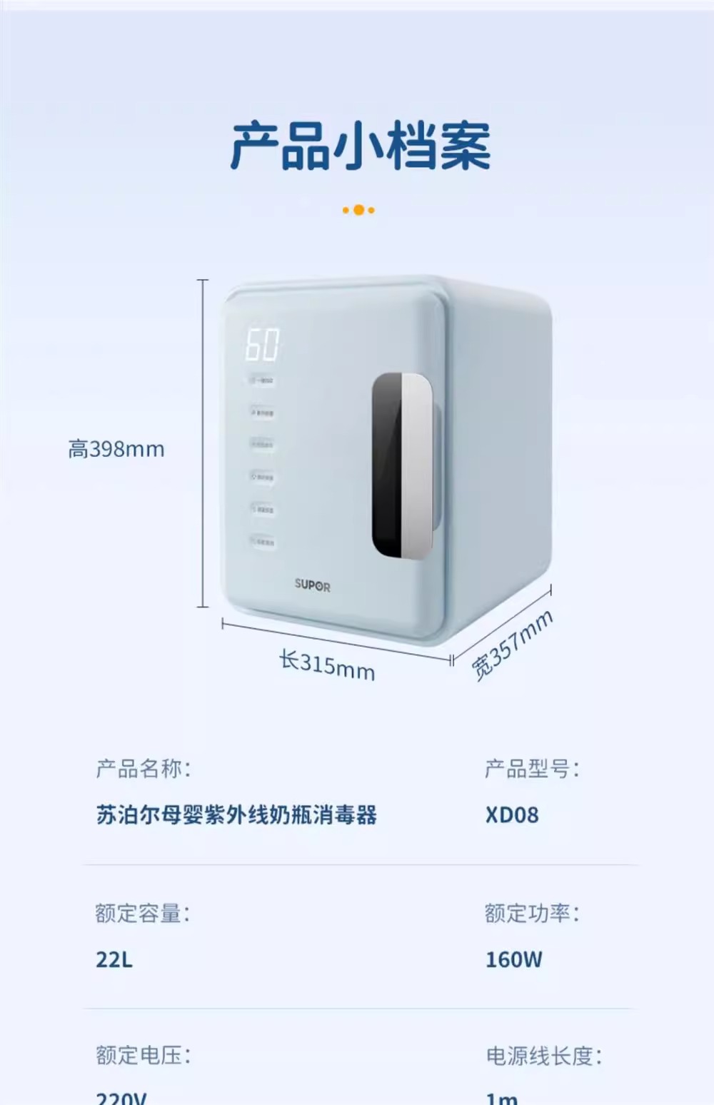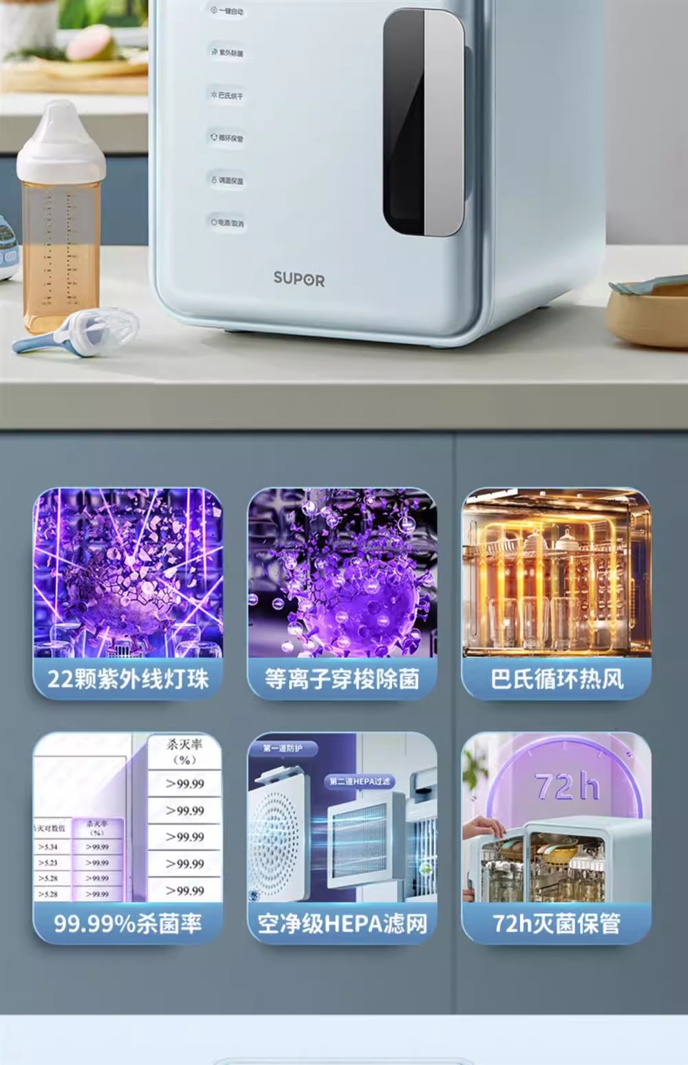 Supor Ультрафиолетовый стерилизатор Детская бутылка Детская стерилизатор с сушеной двойной интегральной машиной для детей XD08