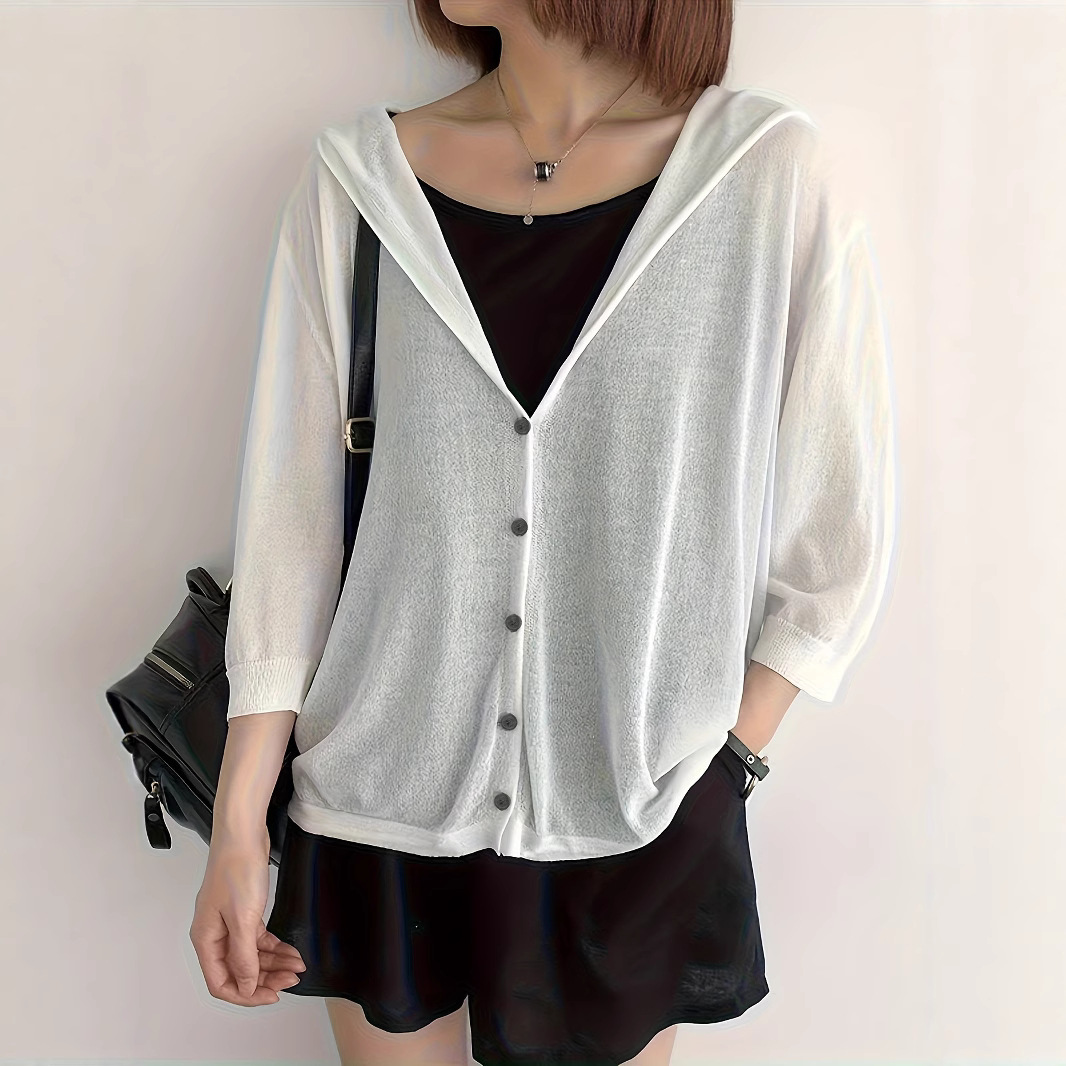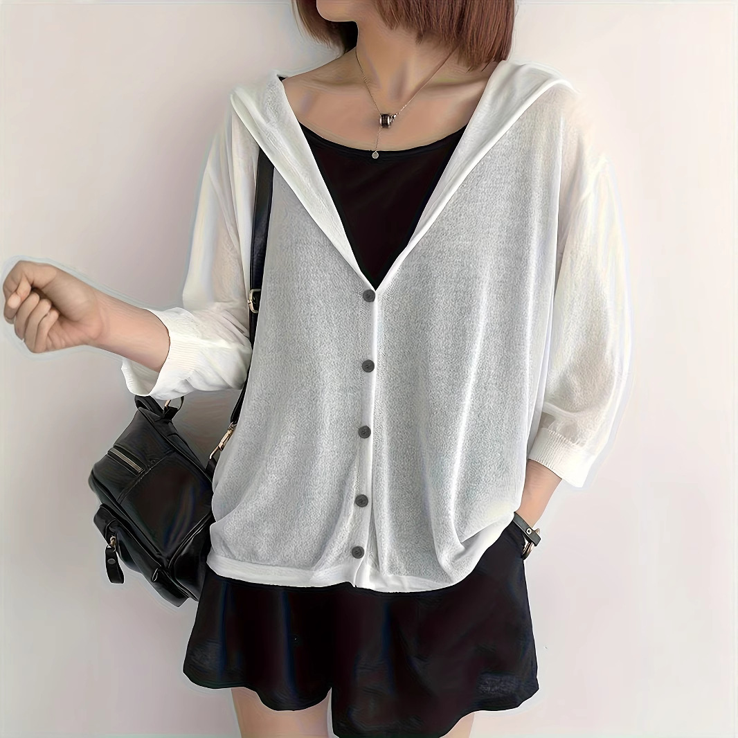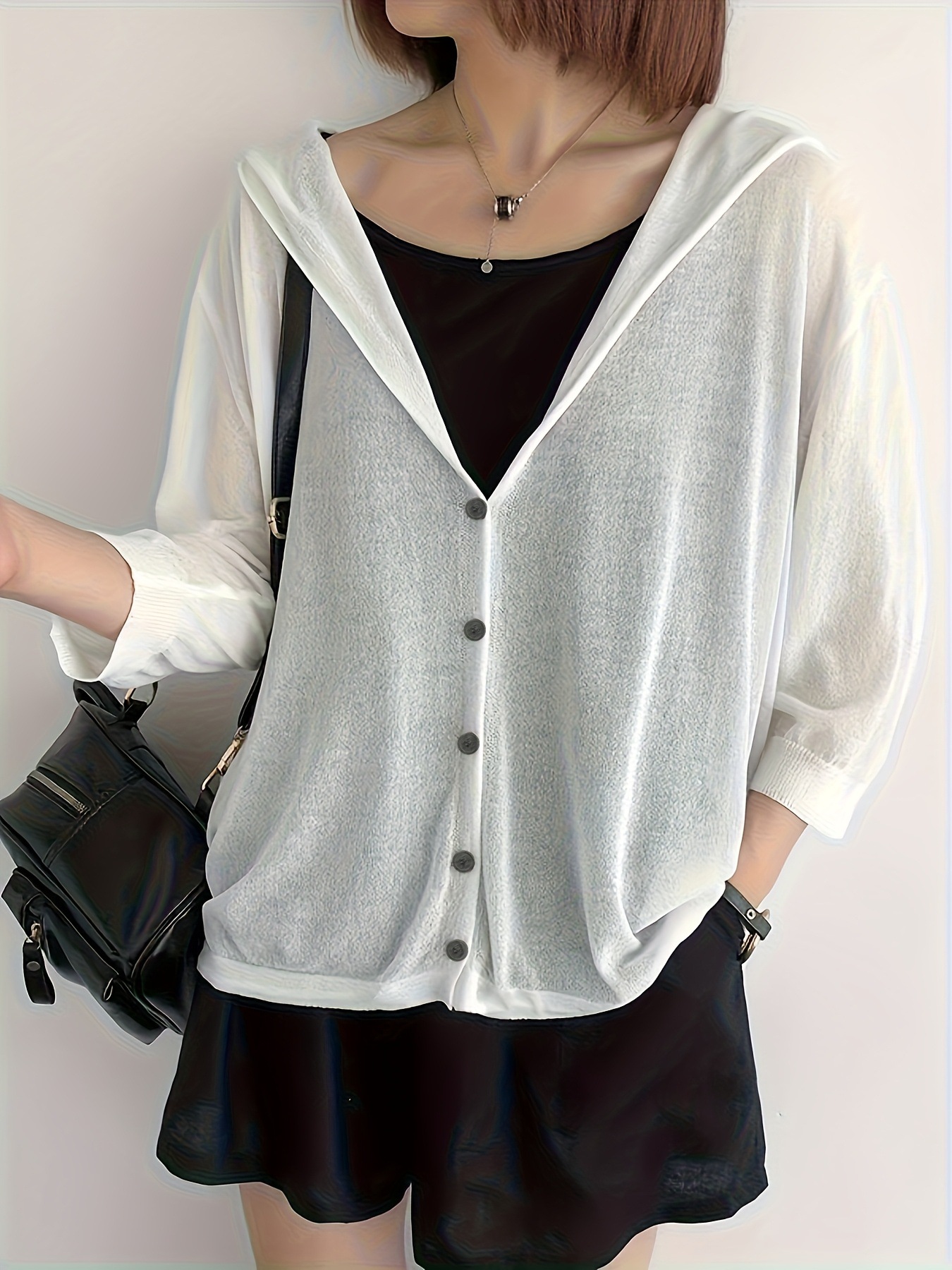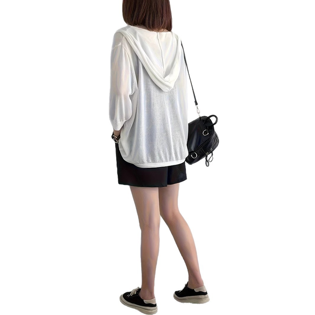 Популярный тонкий кардиган-накидка Amazon для защиты от солнца, новый летний стиль с капюшоном, свободная и стильная рубашка-шаль для кондиционированных помещений.