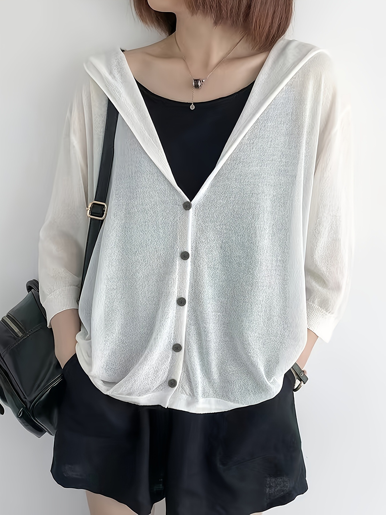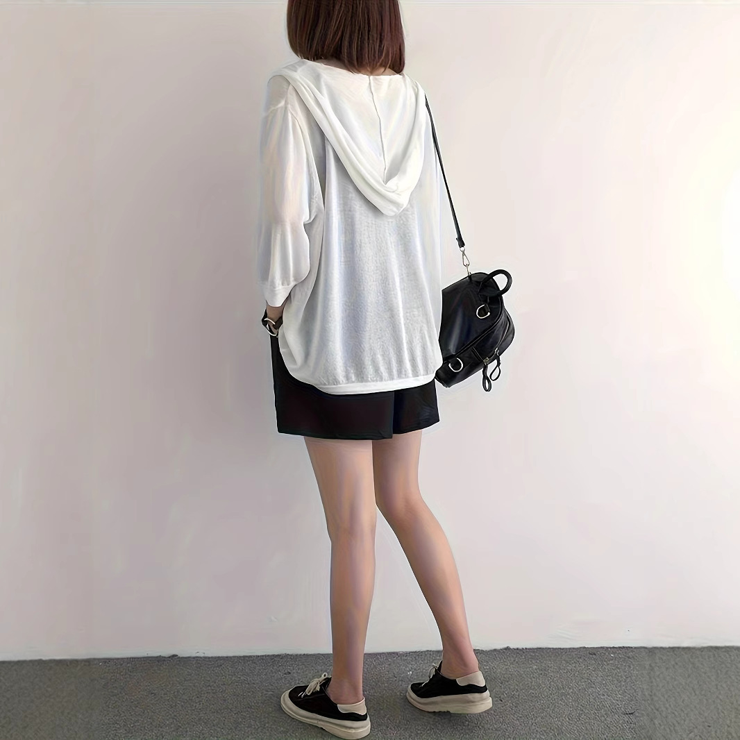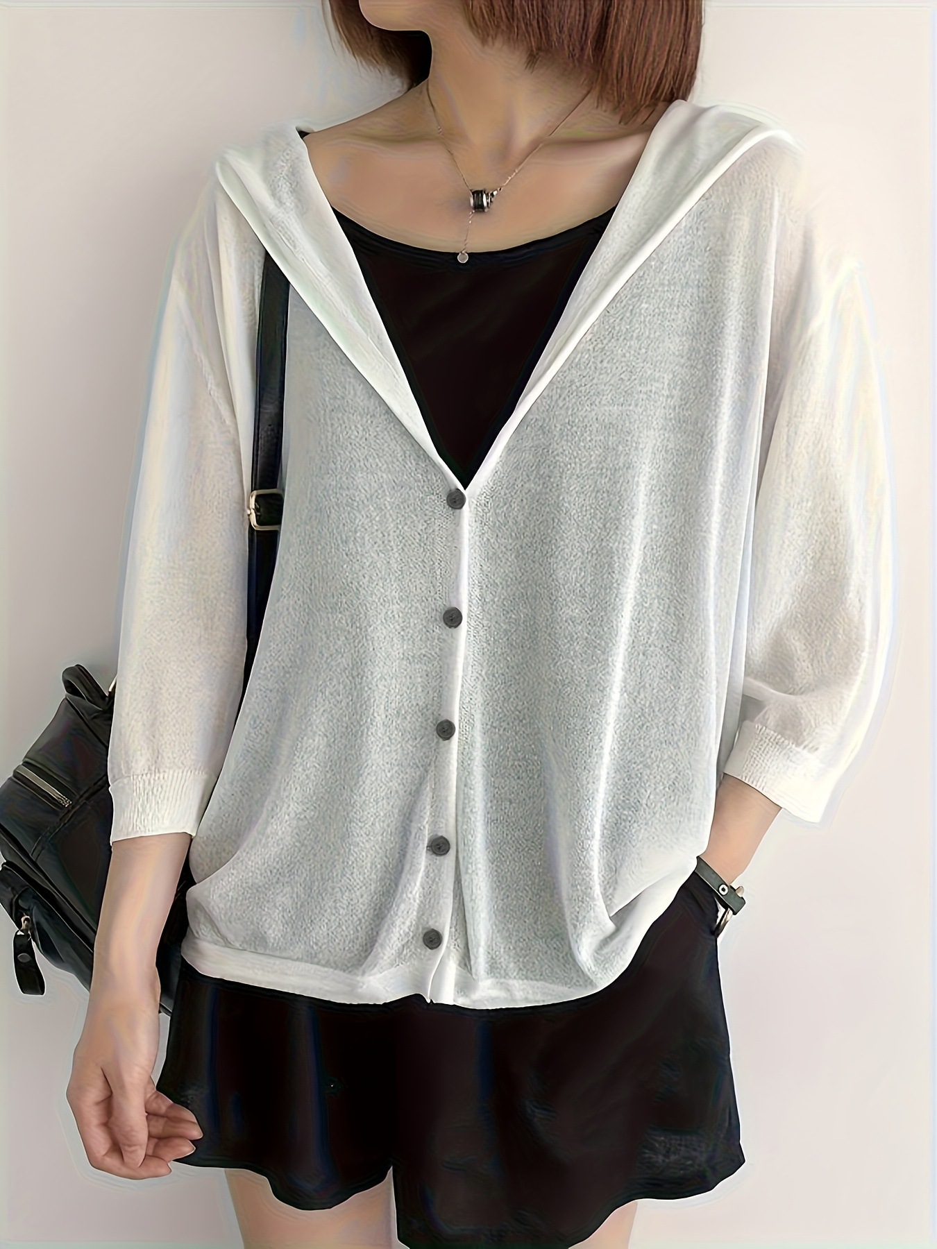 Популярный тонкий кардиган-накидка Amazon для защиты от солнца, новый летний стиль с капюшоном, свободная и стильная рубашка-шаль для кондиционированных помещений.