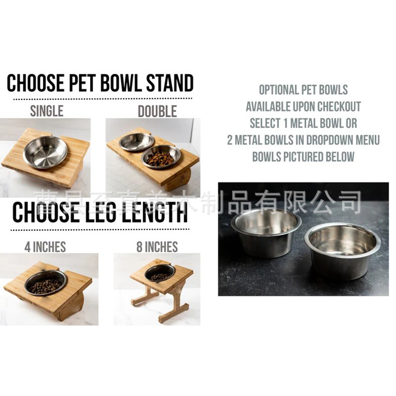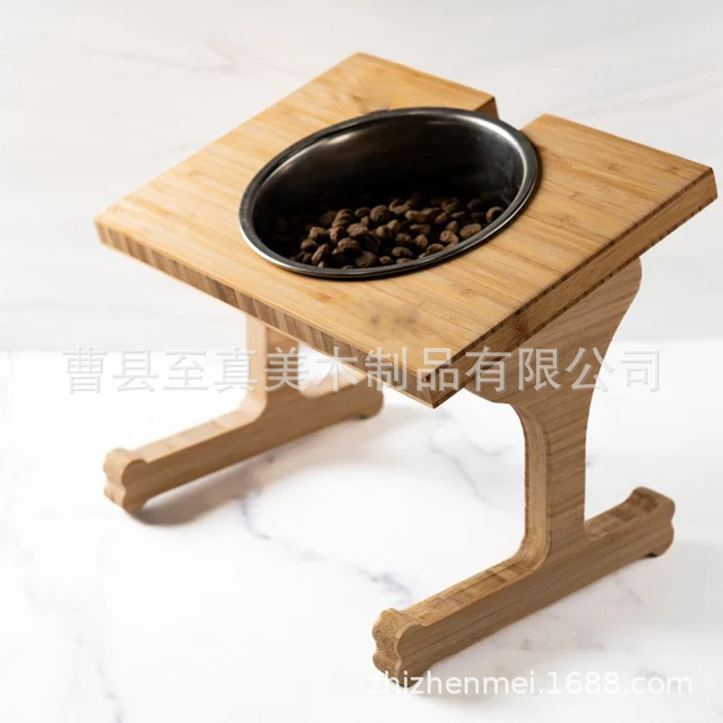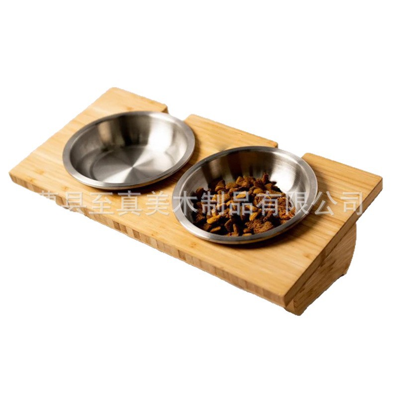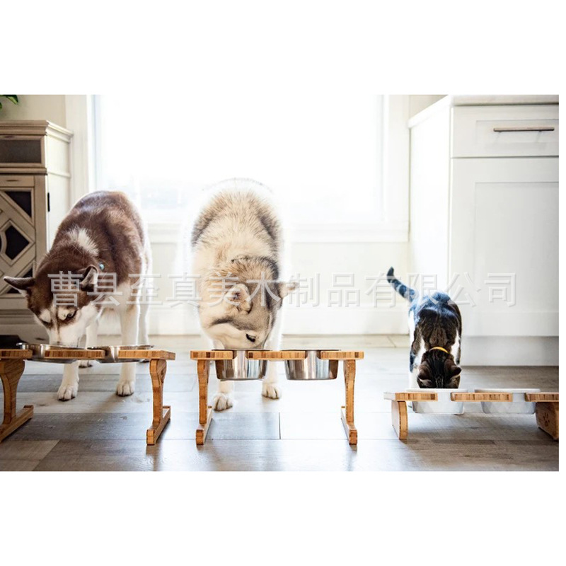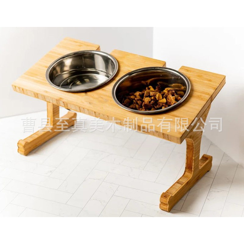 Подставка для мисок для животных из бамбука, двойная миска для собак и кошек, кормушка из бамбукового дерева, регулируемая подставка для кошачьих мисок, деревянная подставка для корма для животных