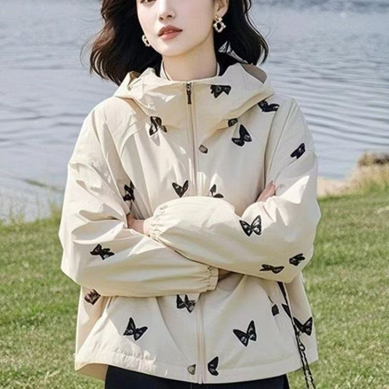 Модная женская весенне-осенняя стильная молодежная короткая универсальная куртка с капюшоном в европейском и американском стиле.