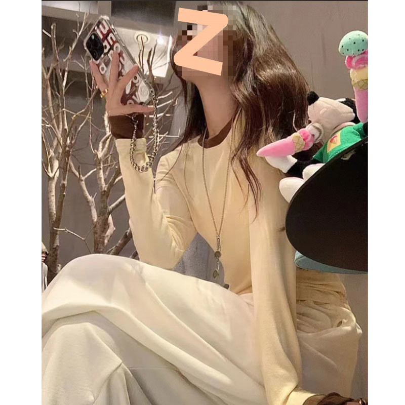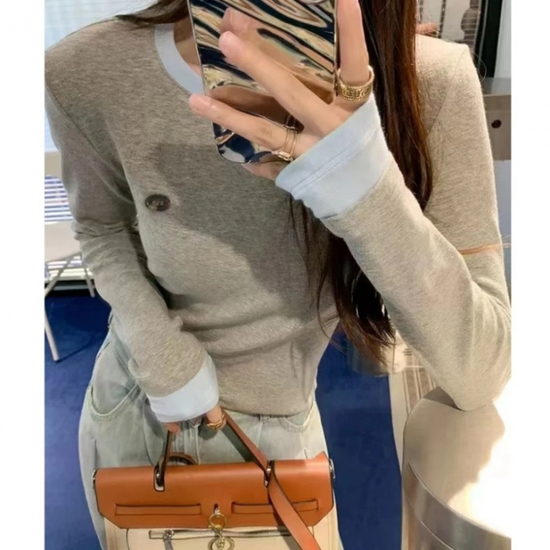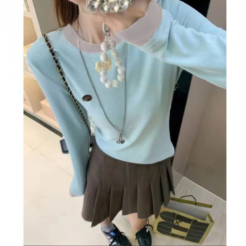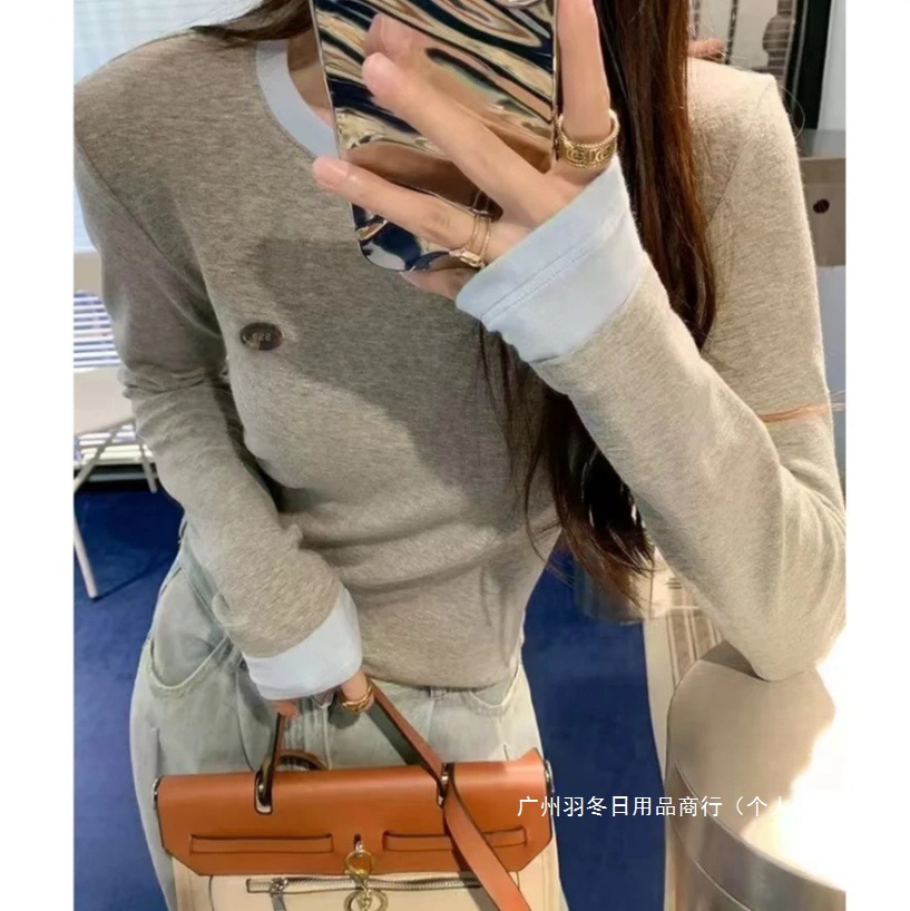 Женская рубашка с круглым вырезом и контрастным краем, внутренняя многослойная рубашка для женщин, новинка зимы 2025, универсальная корейская студенческая рубашка с длинными рукавами