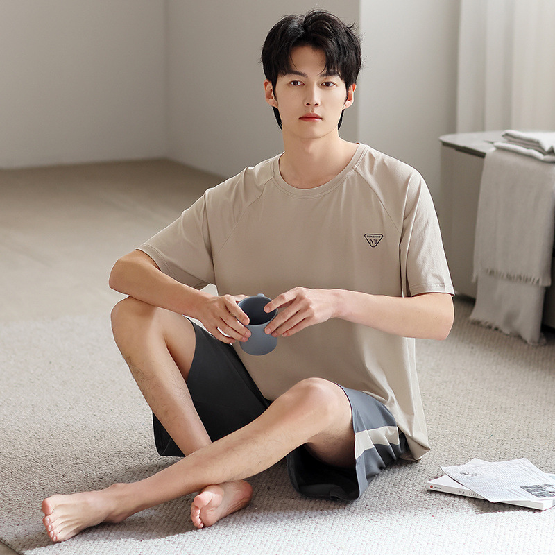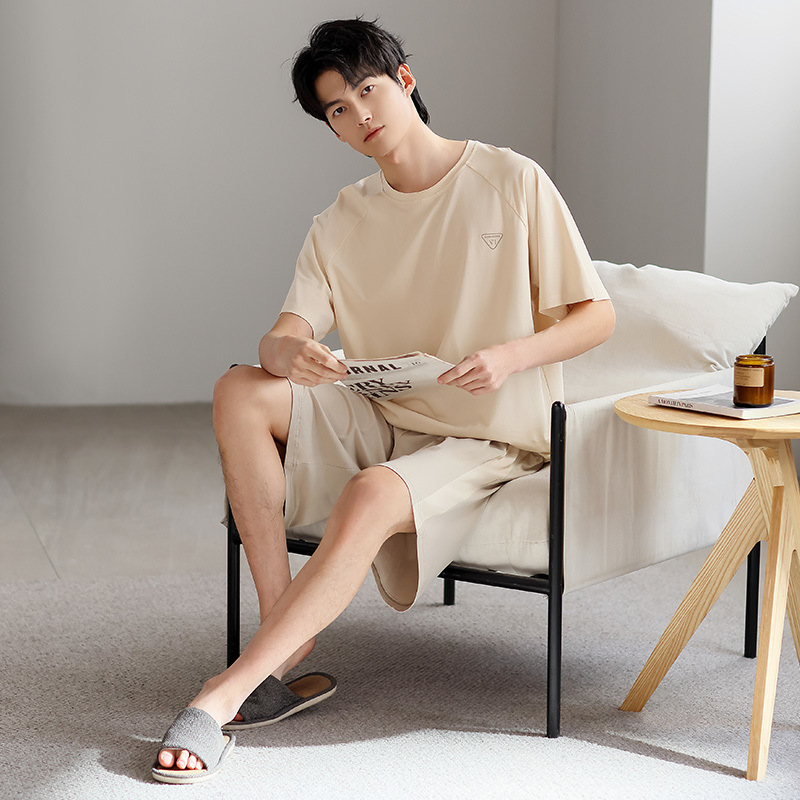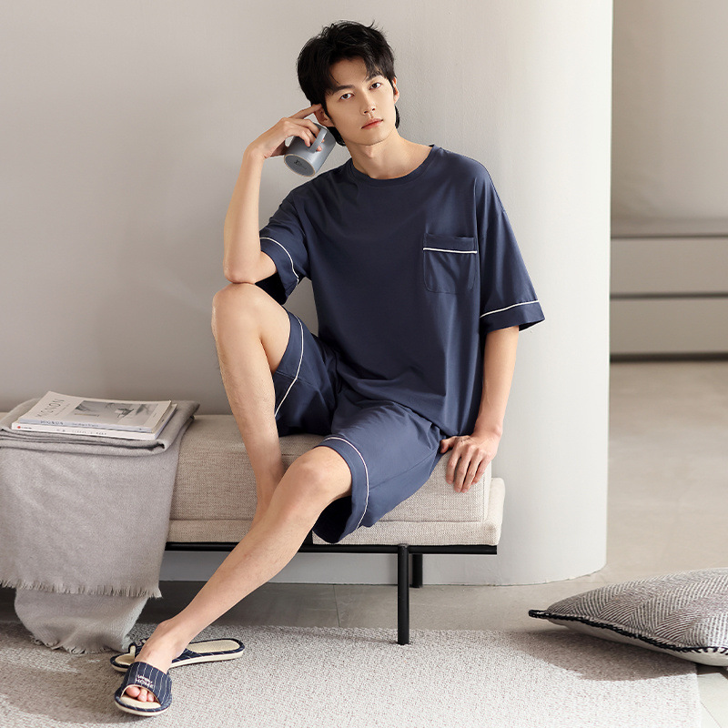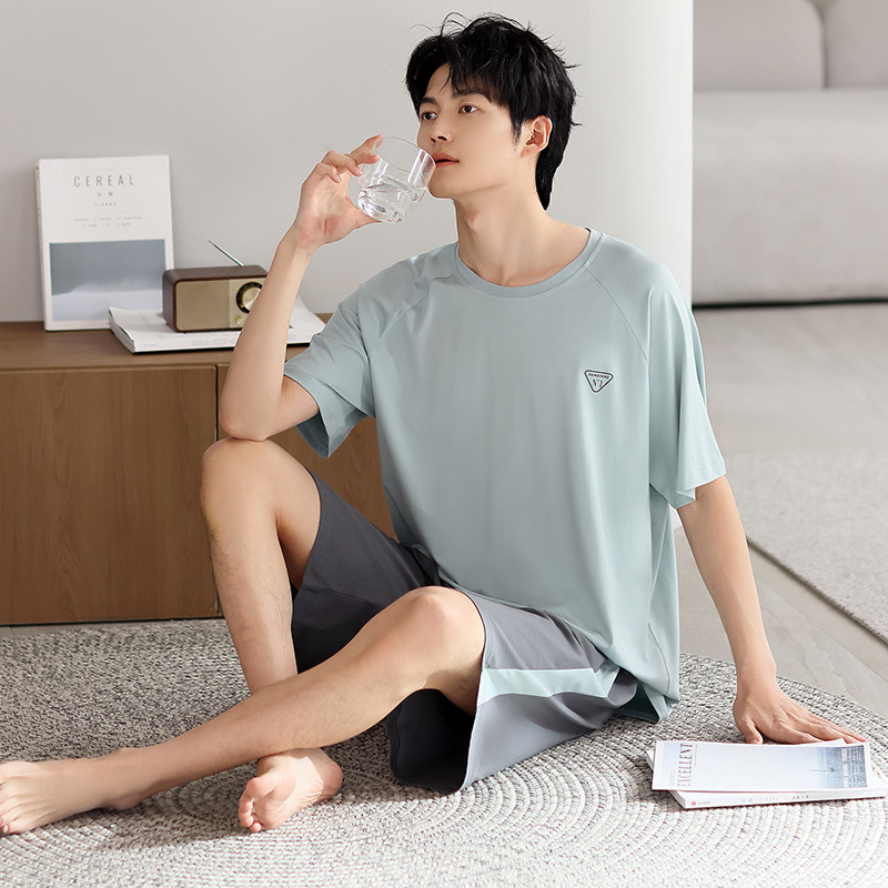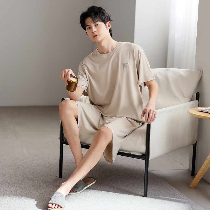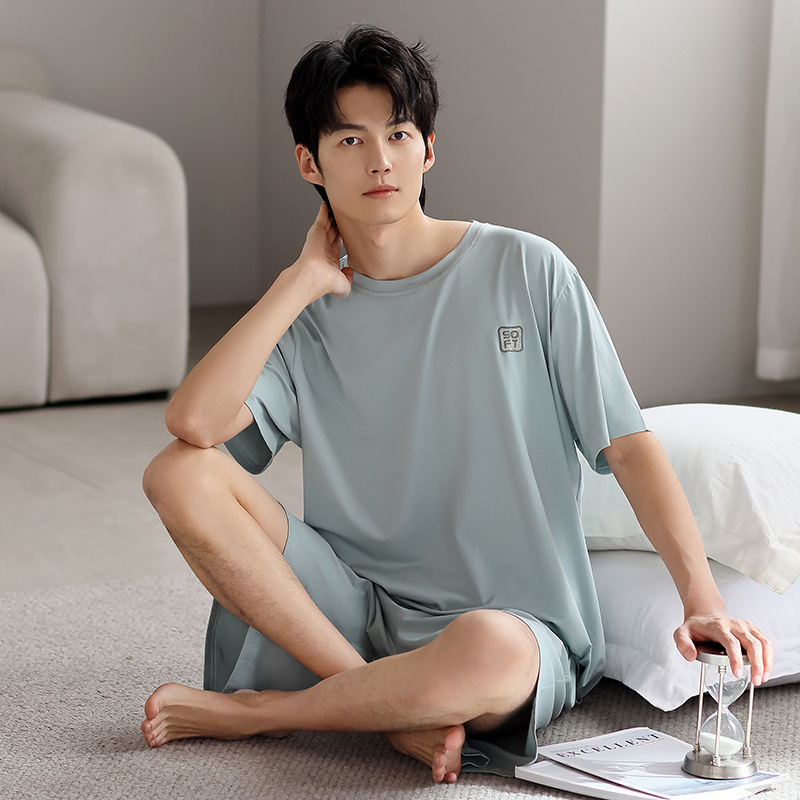 Пижамы мужские летние с короткими рукавами из тонкого модала из прохладного ледяного шелка больших размеров, летняя мужская домашняя одежда, костюм-двойка