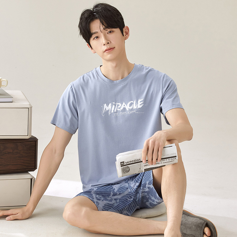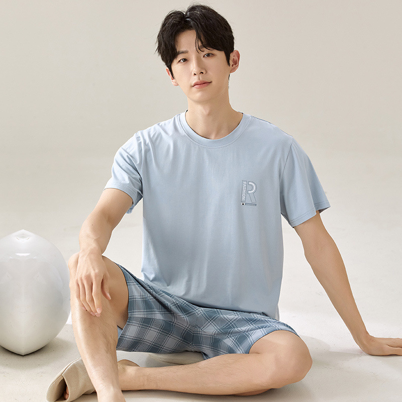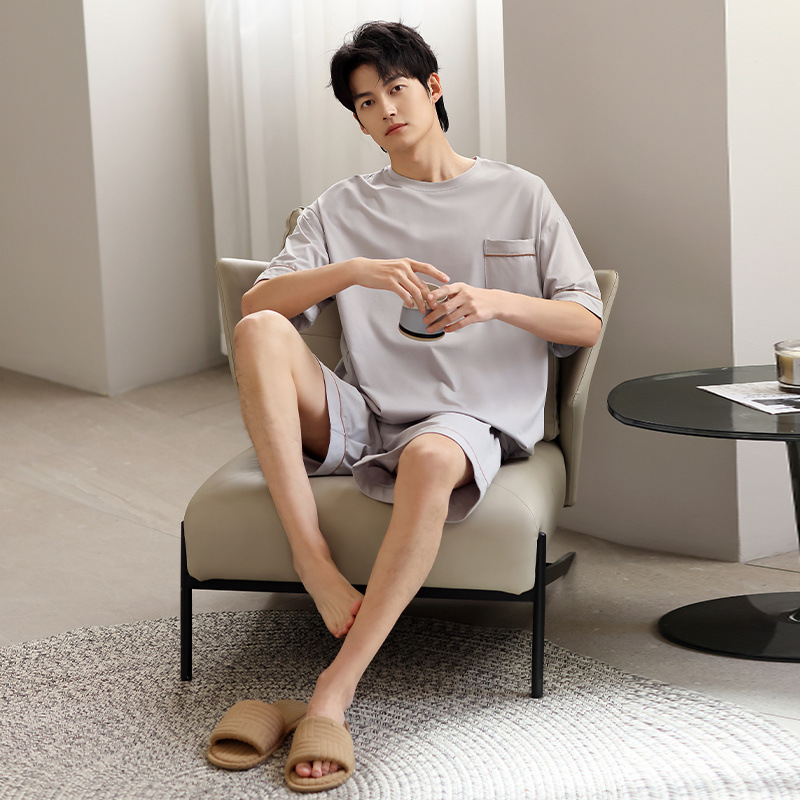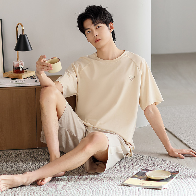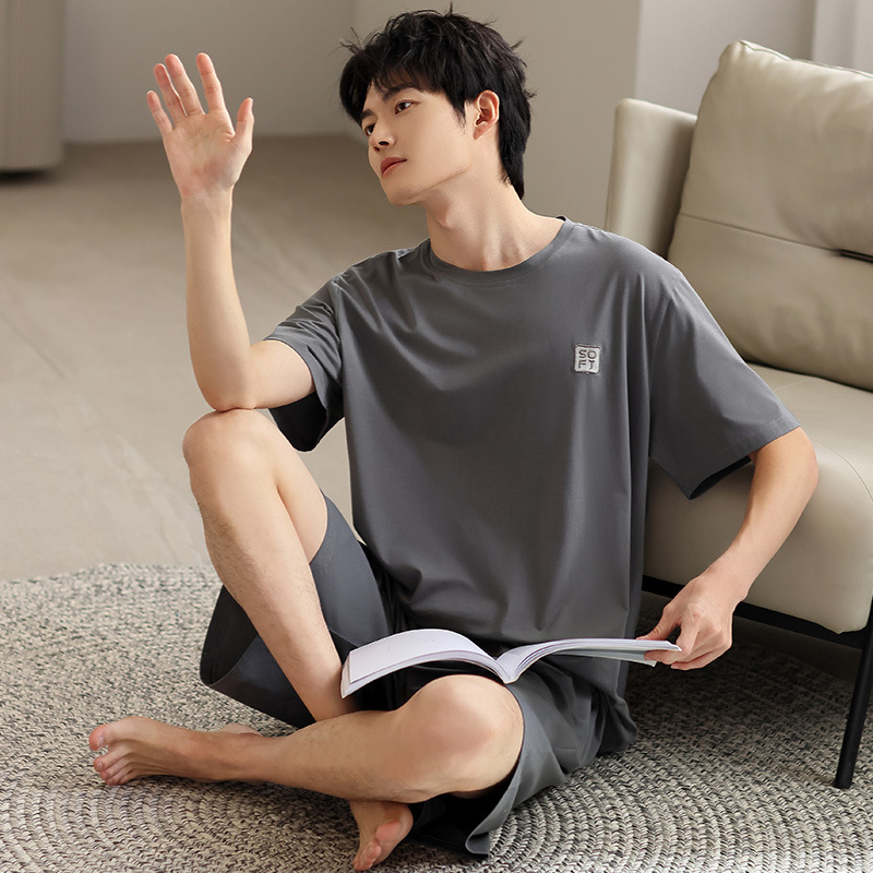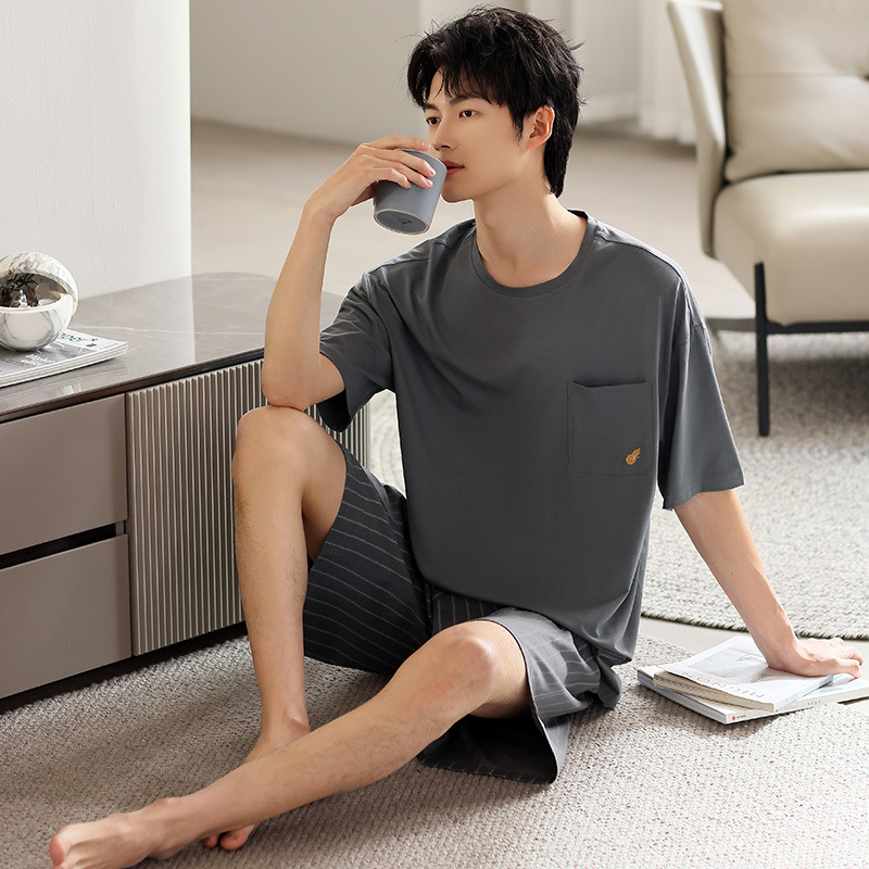 Пижамы мужские летние с короткими рукавами из тонкого модала из прохладного ледяного шелка больших размеров, летняя мужская домашняя одежда, костюм-двойка
