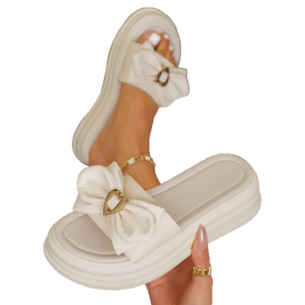Однотонные сандалии с бантом, элитные женские тапочки на танкетке, летняя верхняя одежда, новые летние модные сандалии 2025 года.