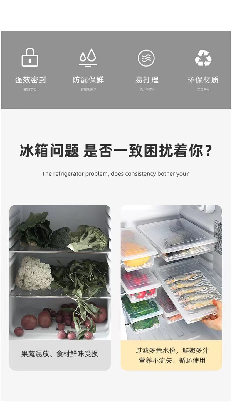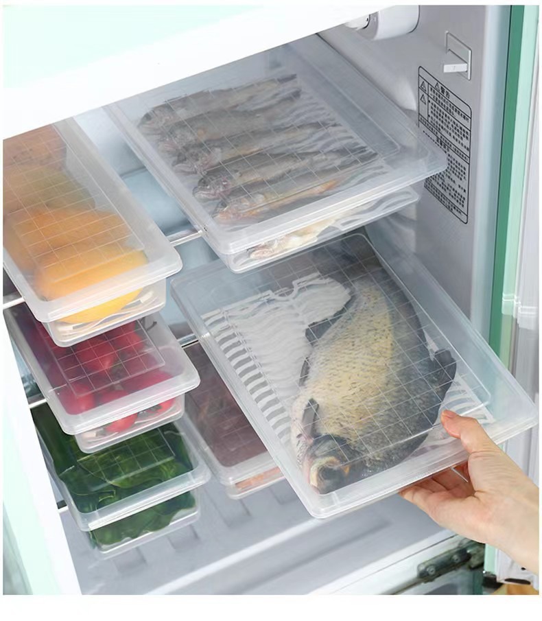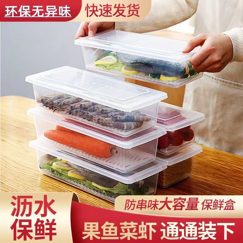 Ящик для хранения продуктов в холодильнике, кухонный ящик для хранения, пластиковый прямоугольный ящик для охлаждения с крышкой, слив для замороженной рыбы и фруктов