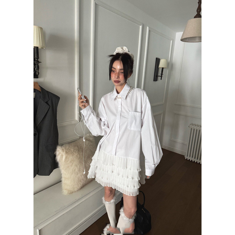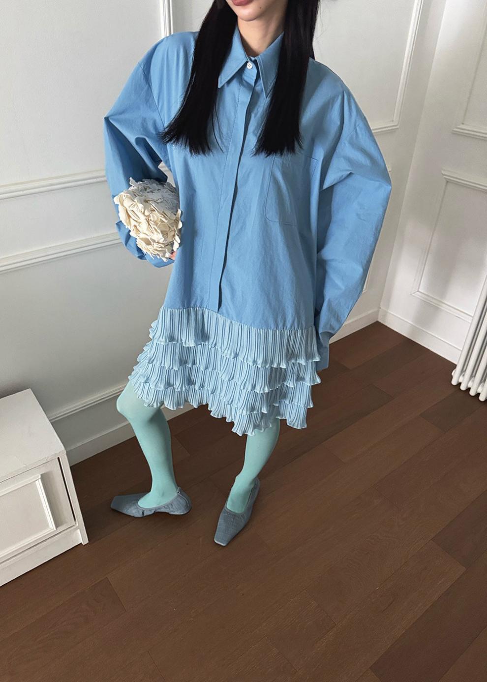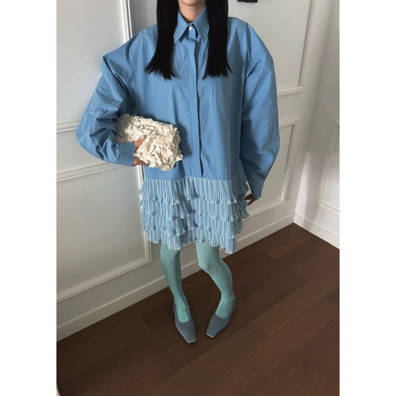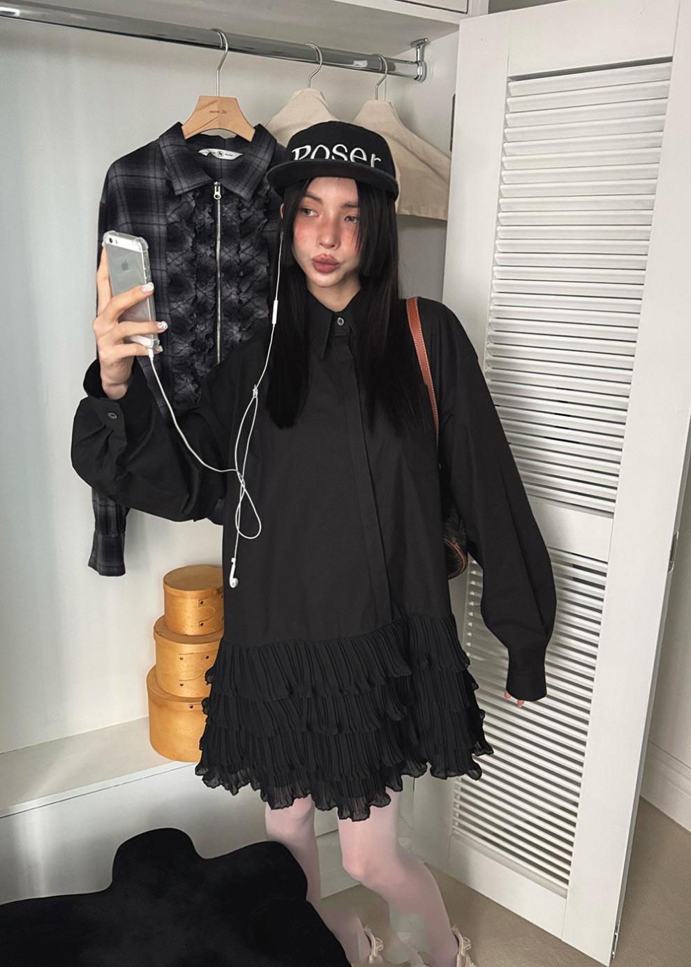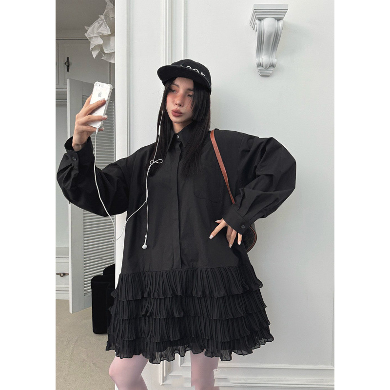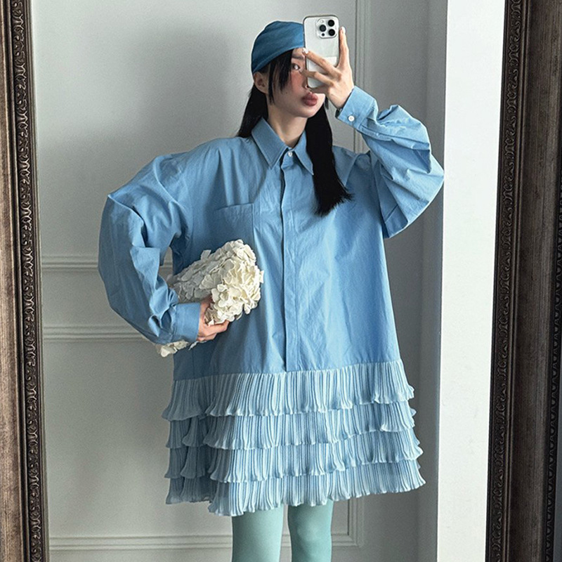 В наличии корейское нишевое дизайнерское платье-рубашка в стиле пэчворк с цветными блоками Dongdaemun для женщин