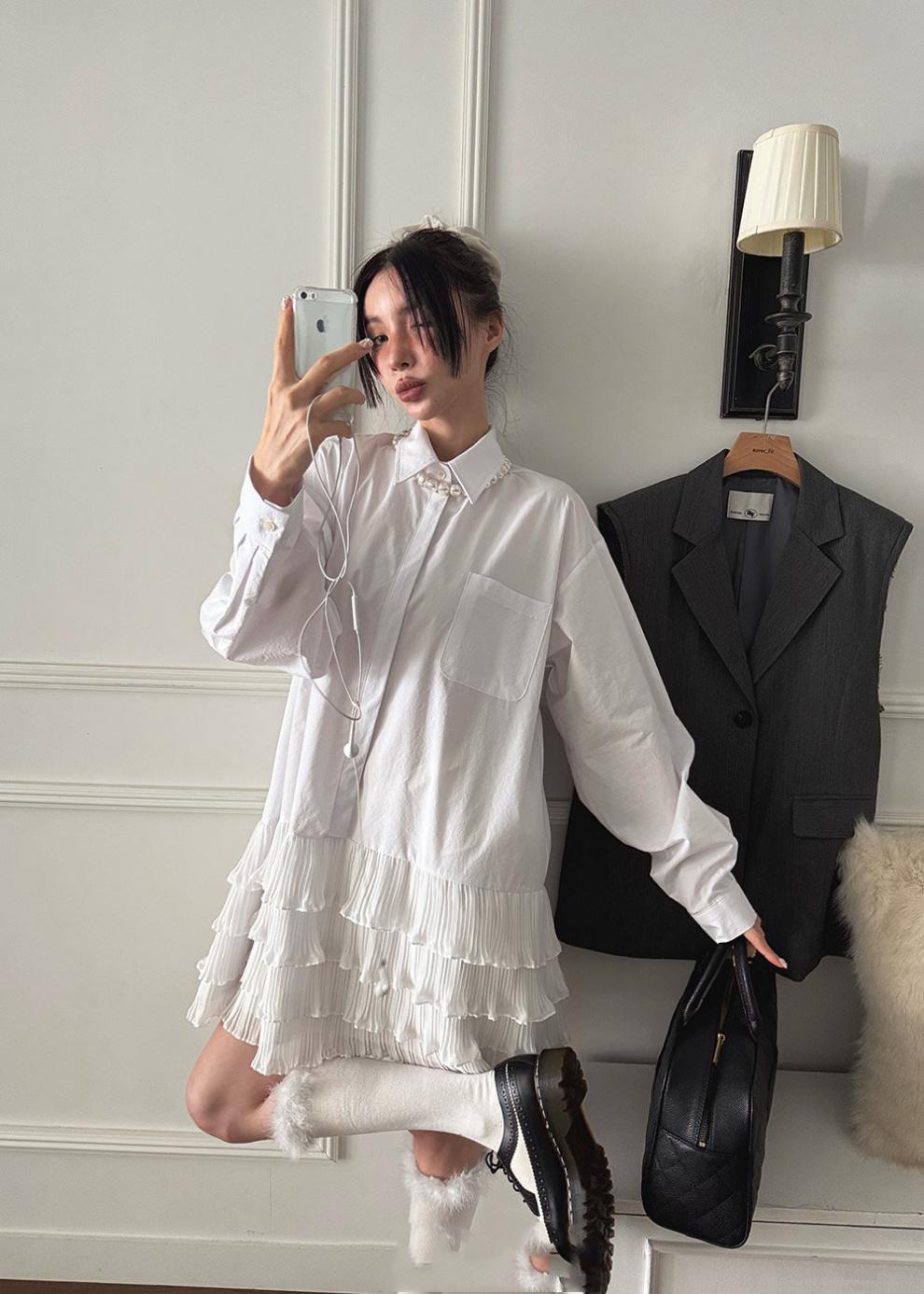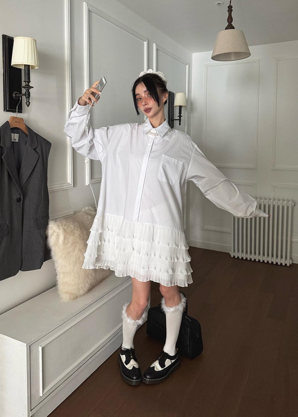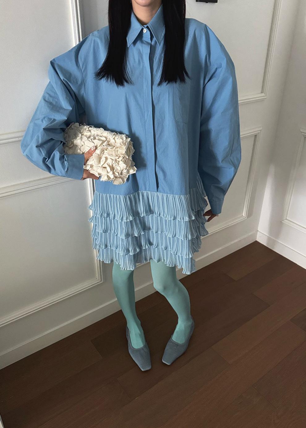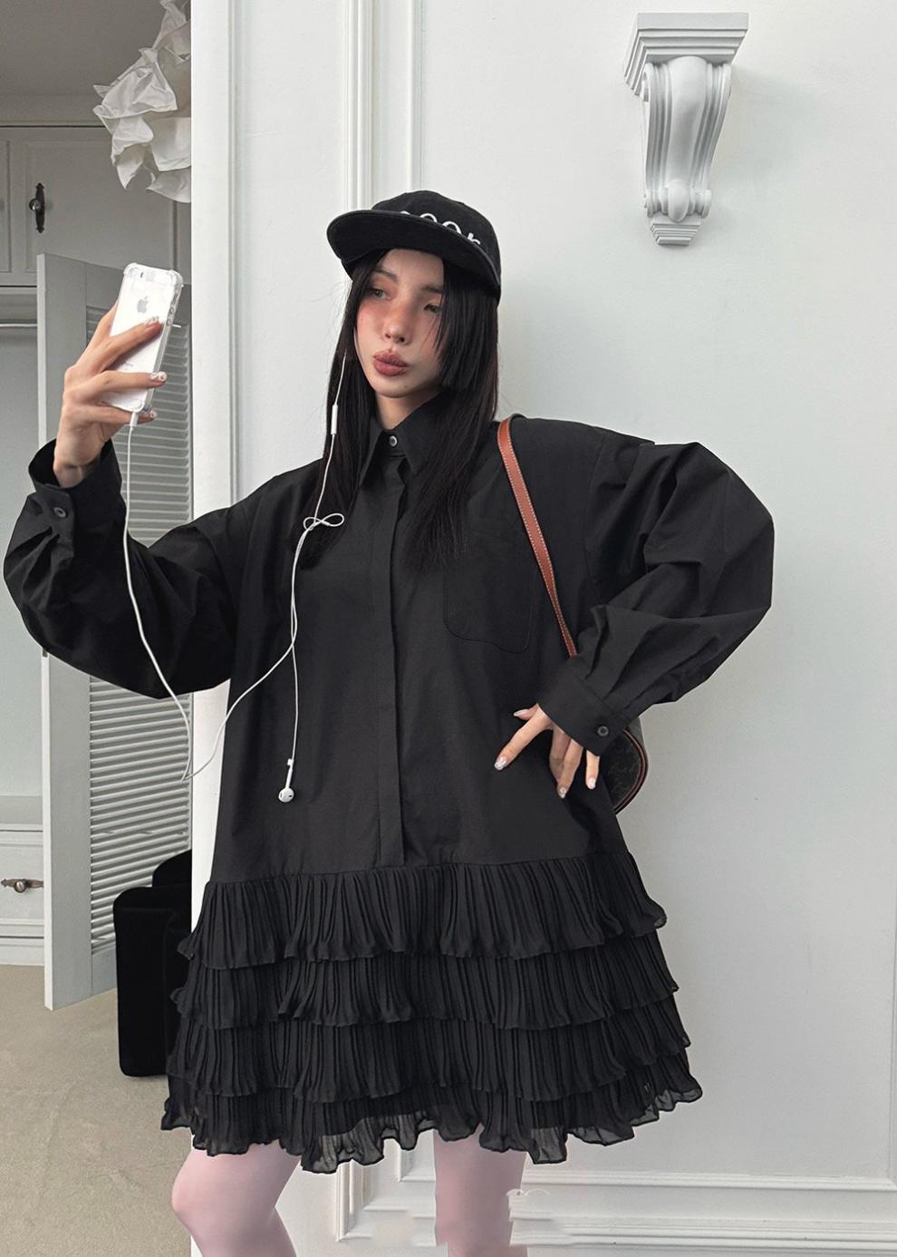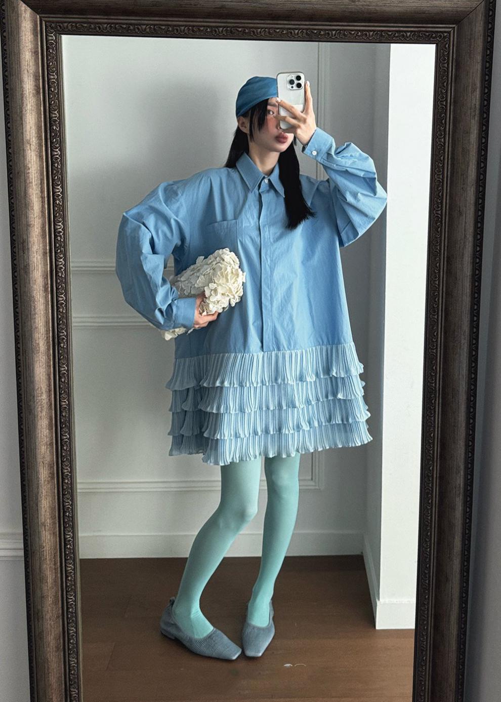 В наличии корейское нишевое дизайнерское платье-рубашка в стиле пэчворк с цветными блоками Dongdaemun для женщин