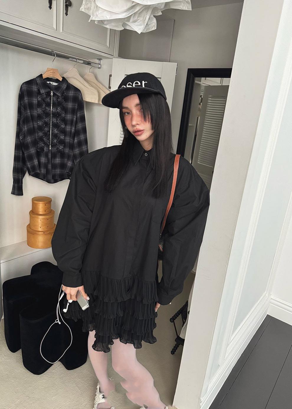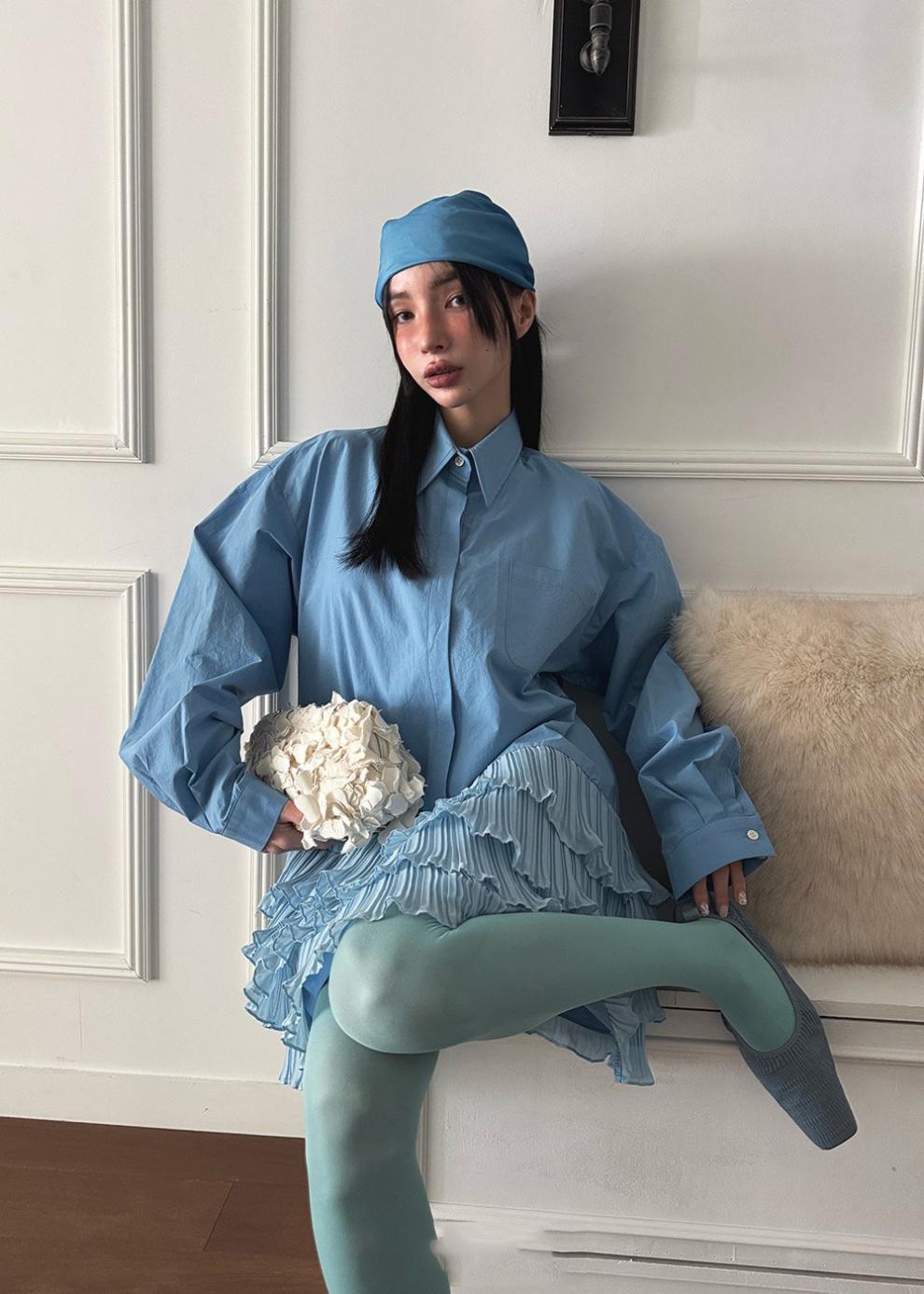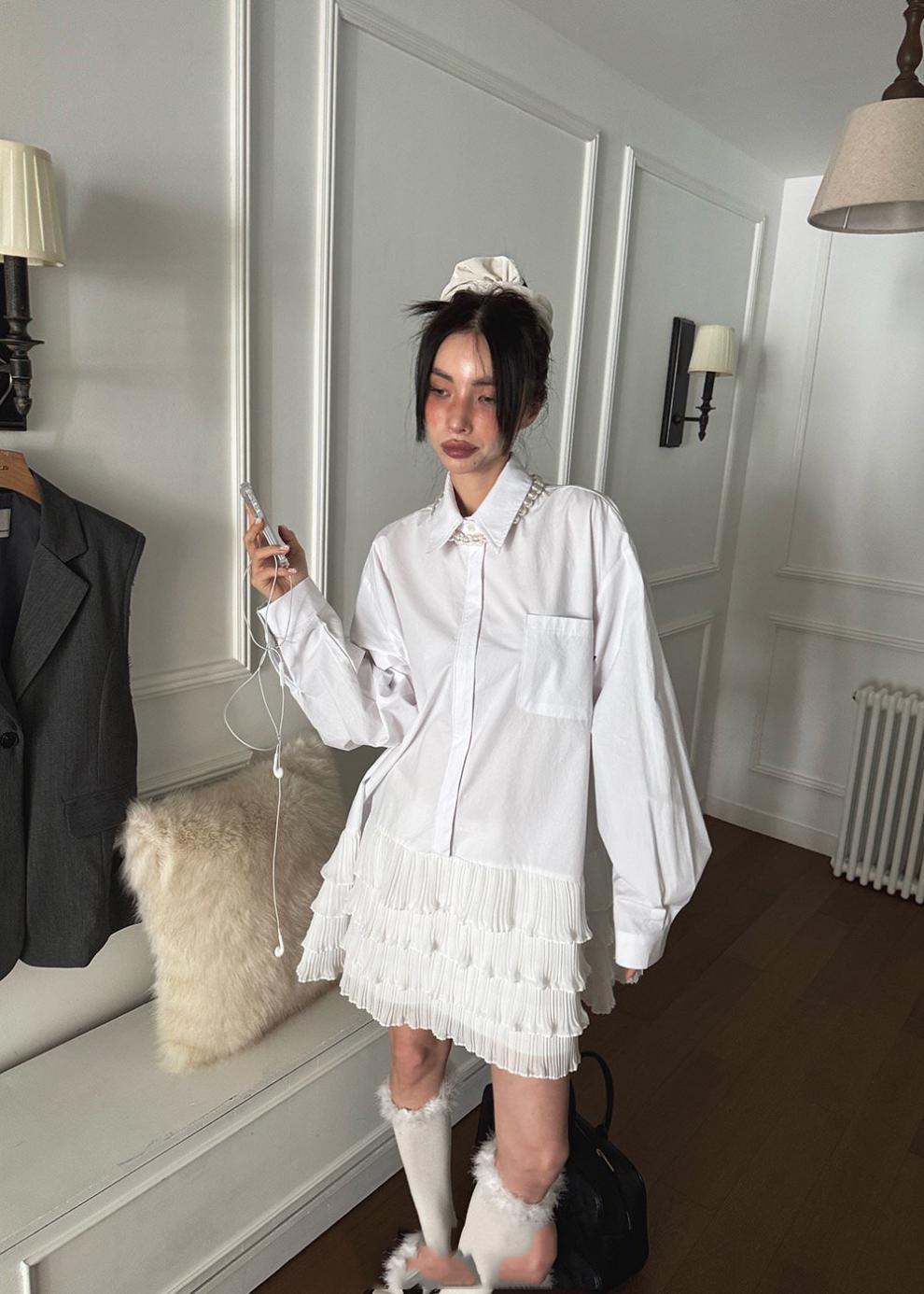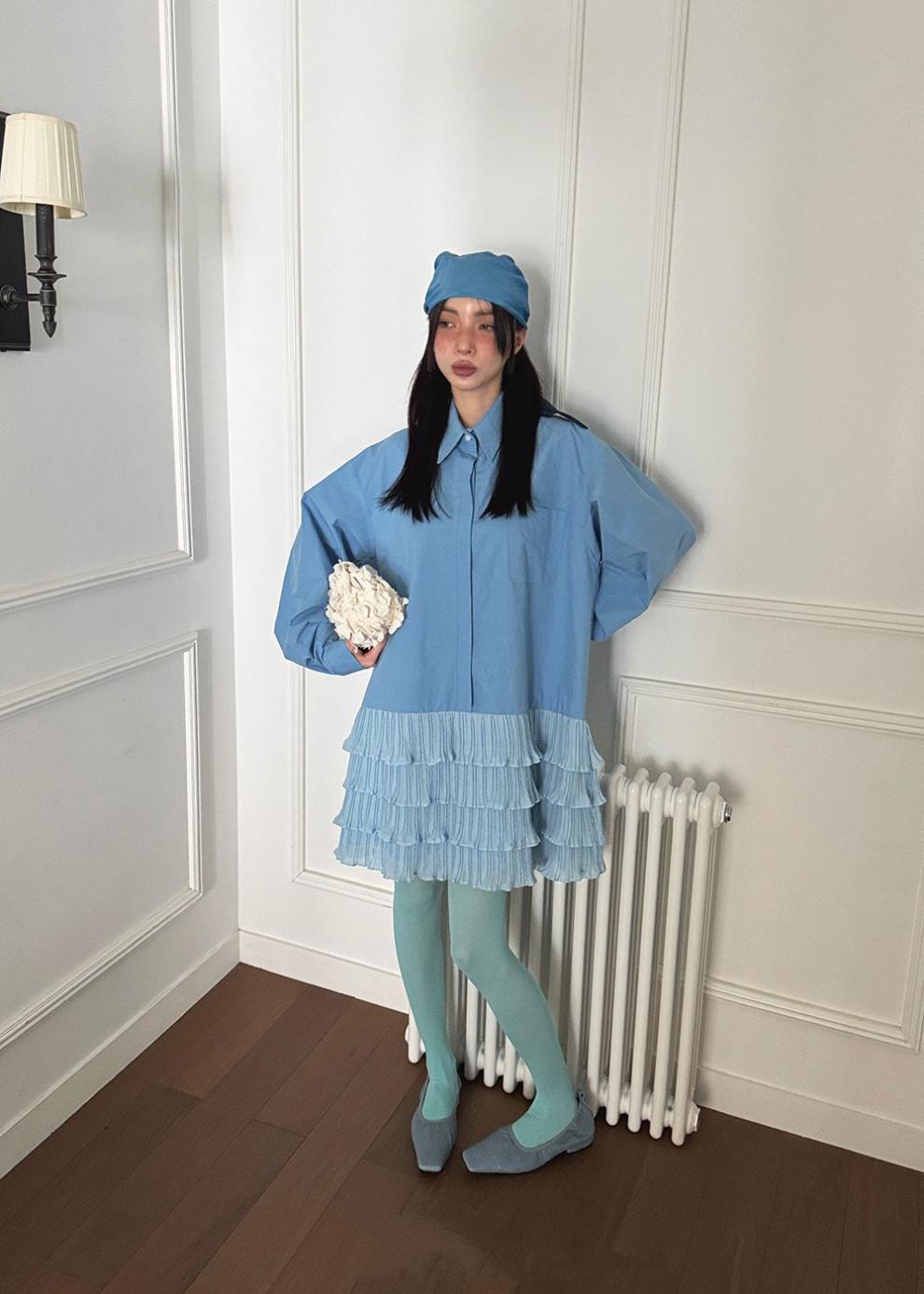 В наличии корейское нишевое дизайнерское платье-рубашка в стиле пэчворк с цветными блоками Dongdaemun для женщин