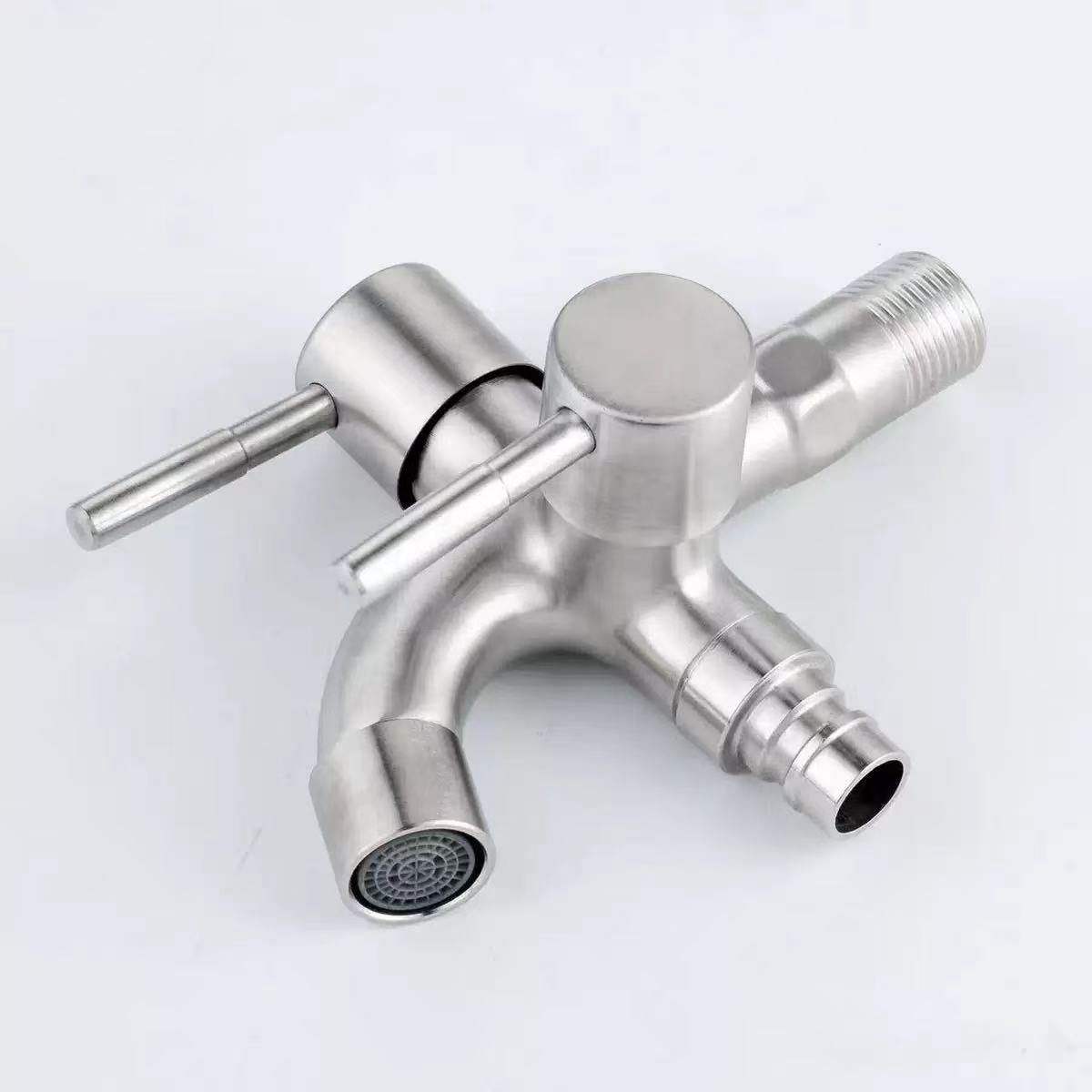 Внешнеторговый смеситель для стиральной машины из нержавеющей стали с боковым открытием, одинарный холодный, быстрораскрывающийся, многофункциональный, с двойным управлением, с одним входным и двумя выходными угловыми клапанами