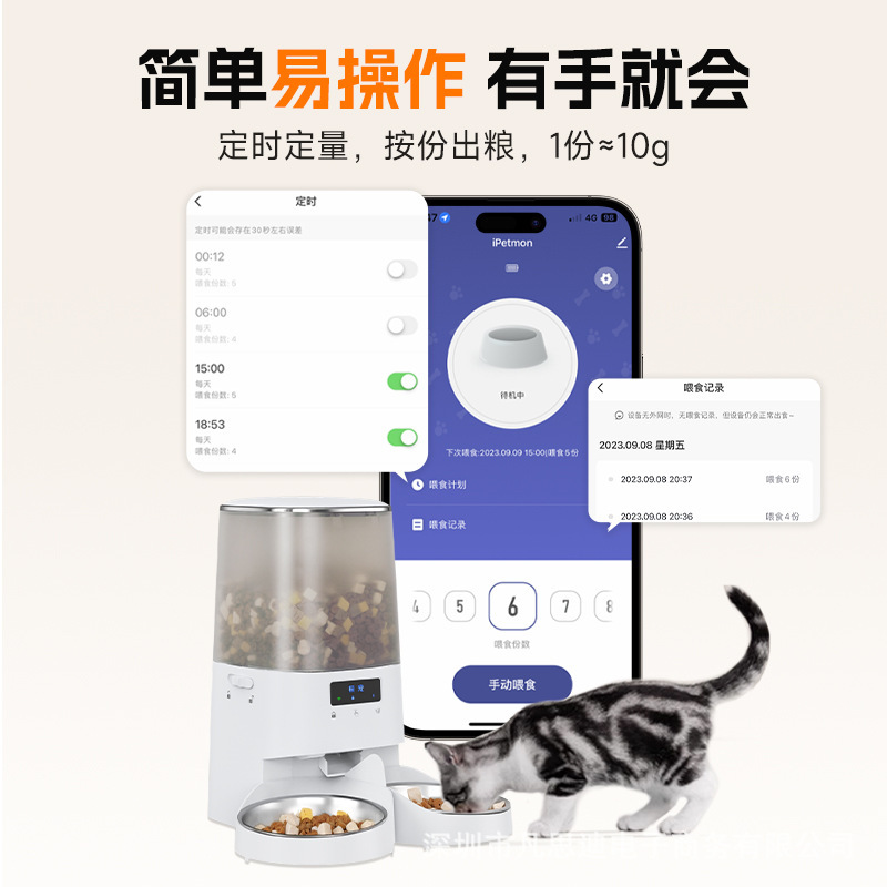 Новая интеллектуальная автоматическая кормушка для кошек с таймером и количественной версией Wi-Fi, дистанционным управлением, стандартной лиофилизированной одинарной миской.