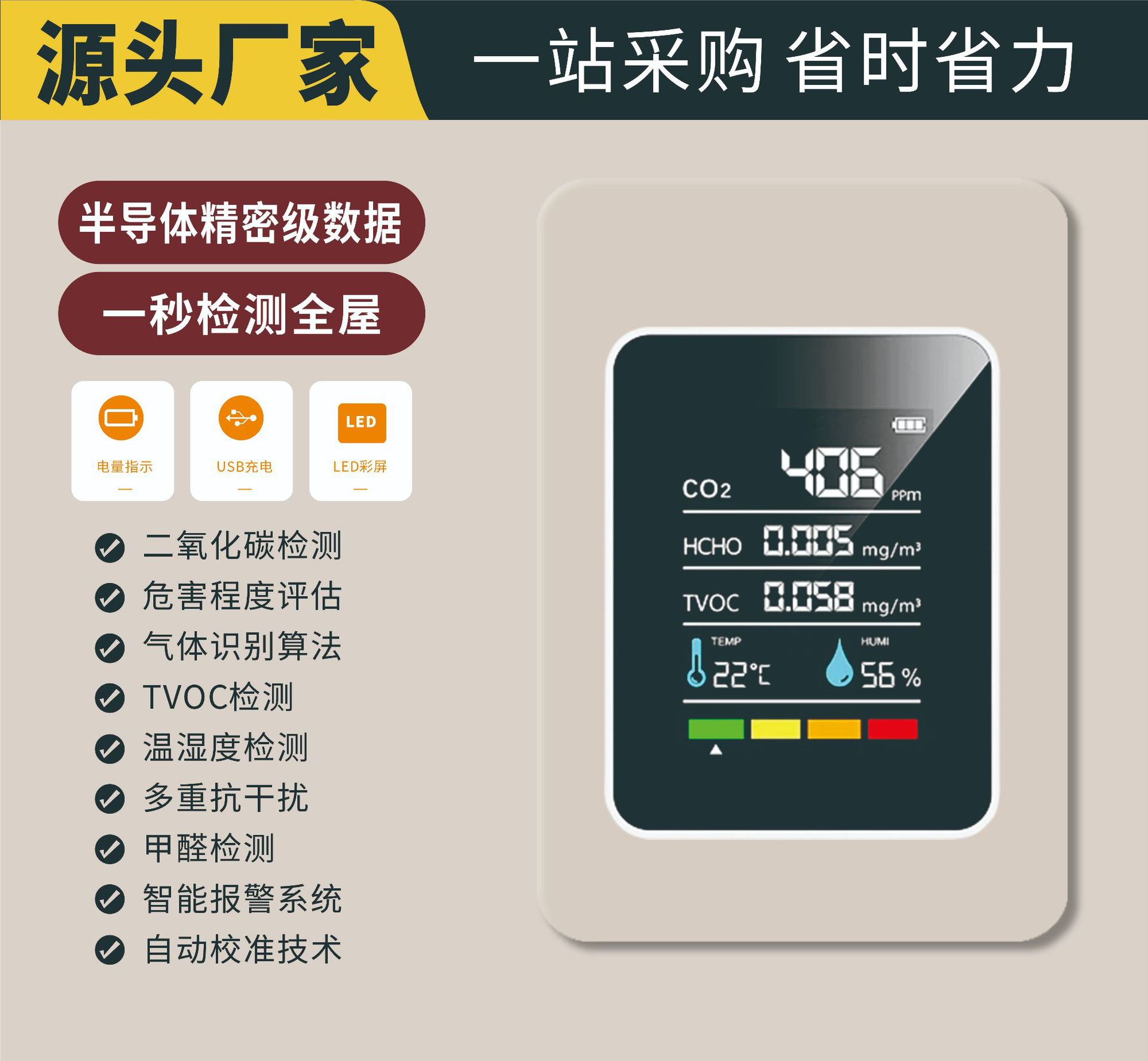Детектор качества воздуха 5-в-1