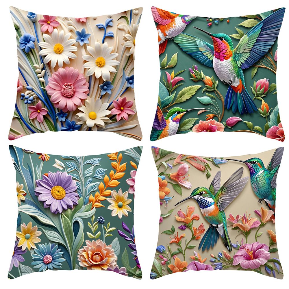 Новая декоративная наволочка TEMU для трансграничной торговли, с 2D цифровой печатью, стереоэффектом, цветочным узором, чехол для подушки дивана