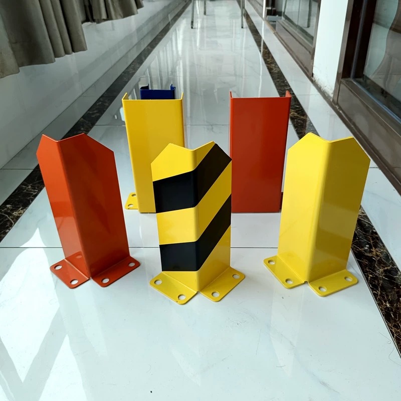 Металлические утолщенные колонны складских полок с угловыми защитными приспособлениями для предотвращения столкновений, размеры L-образной и U-образной формы и различные аксессуары для защиты вил.