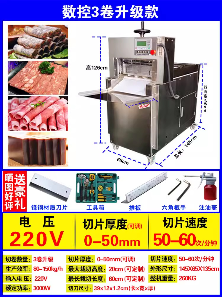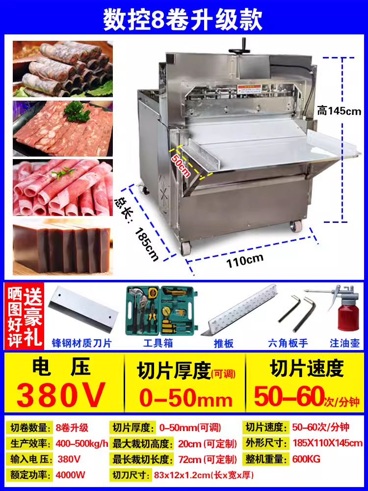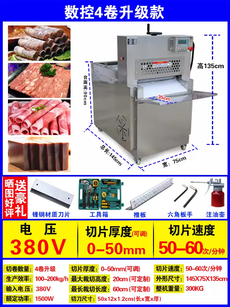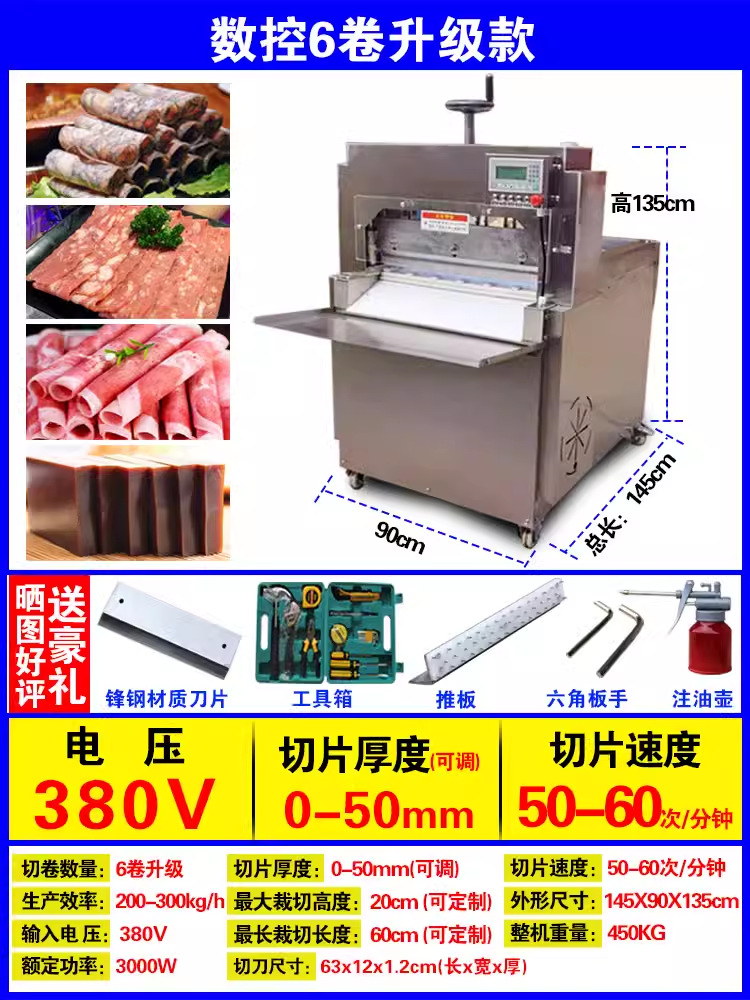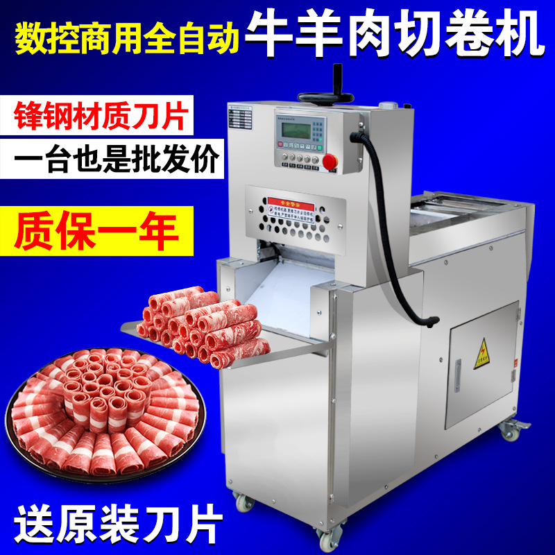 Коммерческая полностью автоматическая машина для резки и прокатки говядины и баранины с ЧПУ, машина для нарезки замороженного мяса, электрическая машина для резки и прокатки жирной говядины