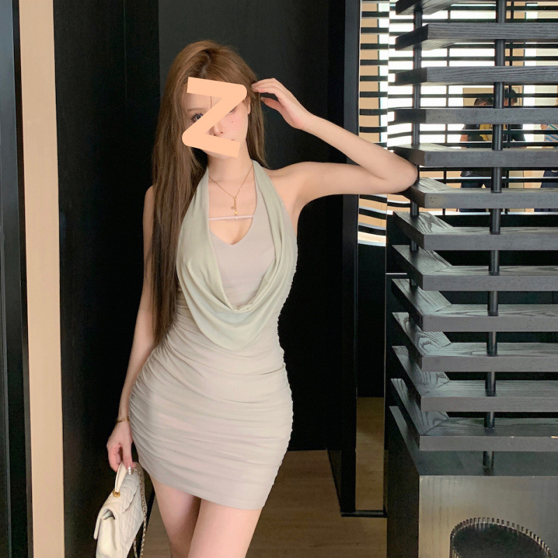Горячее платье с открытыми плечами и шеей без рукавов летом