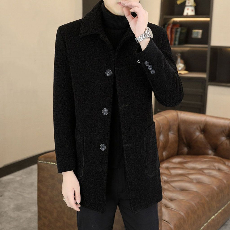 2025 новая осенняя шерстяная верхняя одежда модная шерстяная куртка с лацканами мужская повседневная универсальная верхняя одежда средней длины
