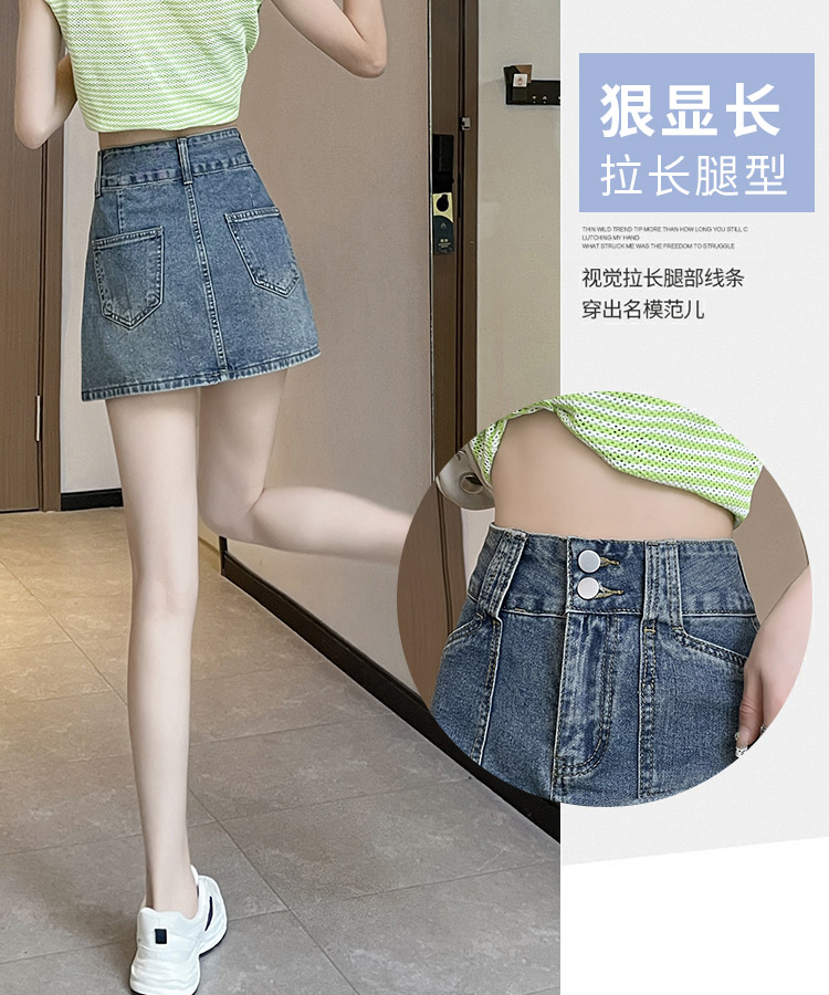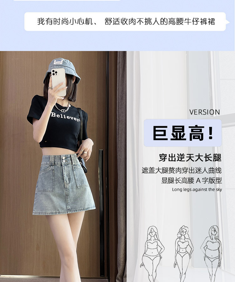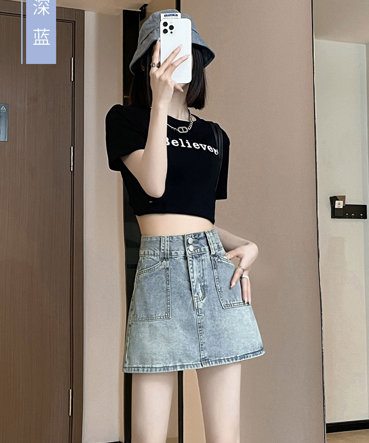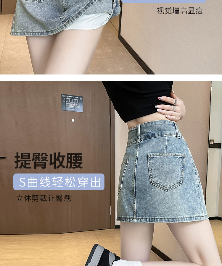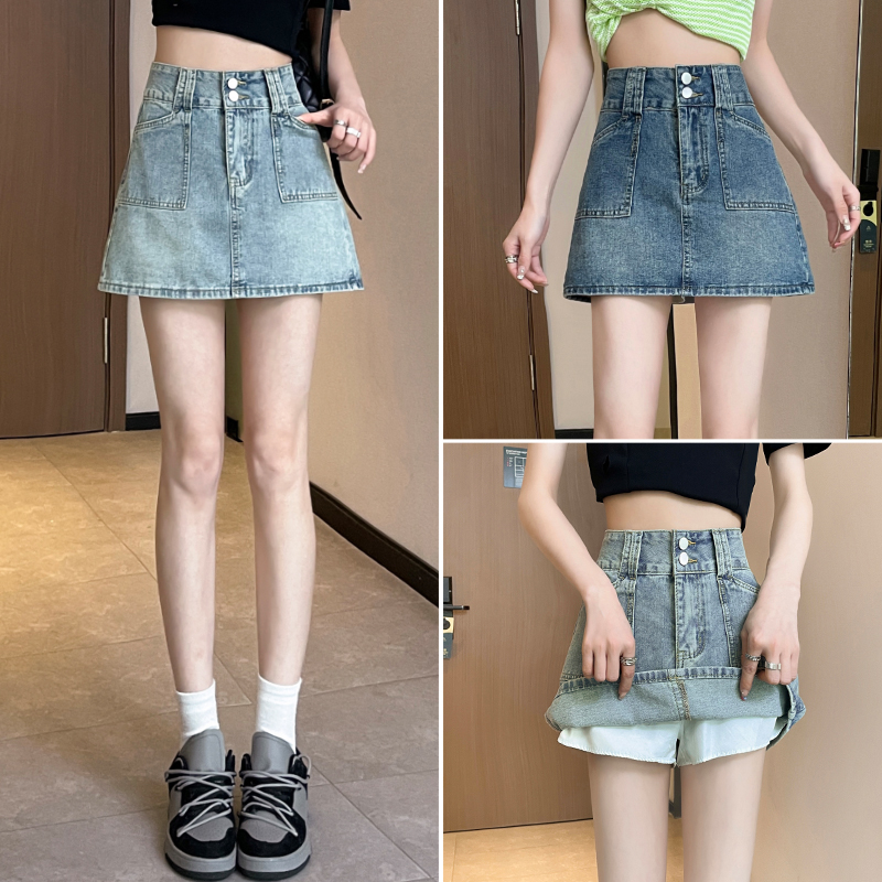 Джинсовая юбка Юбка-трапеция женская, лето 2025, новая короткая юбка с высокой талией, полуюбка, юбка, закрывающая бедра, модная юбка в один шаг