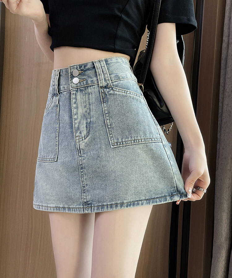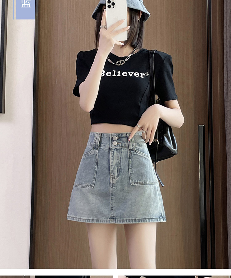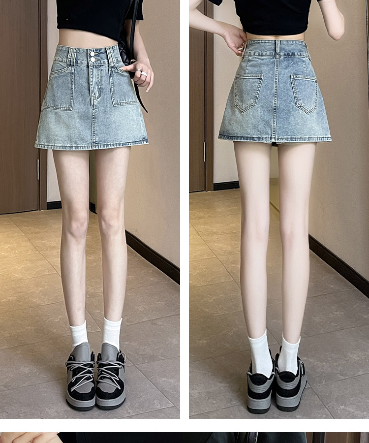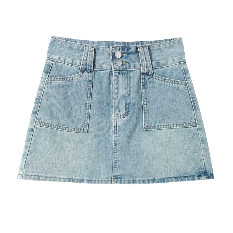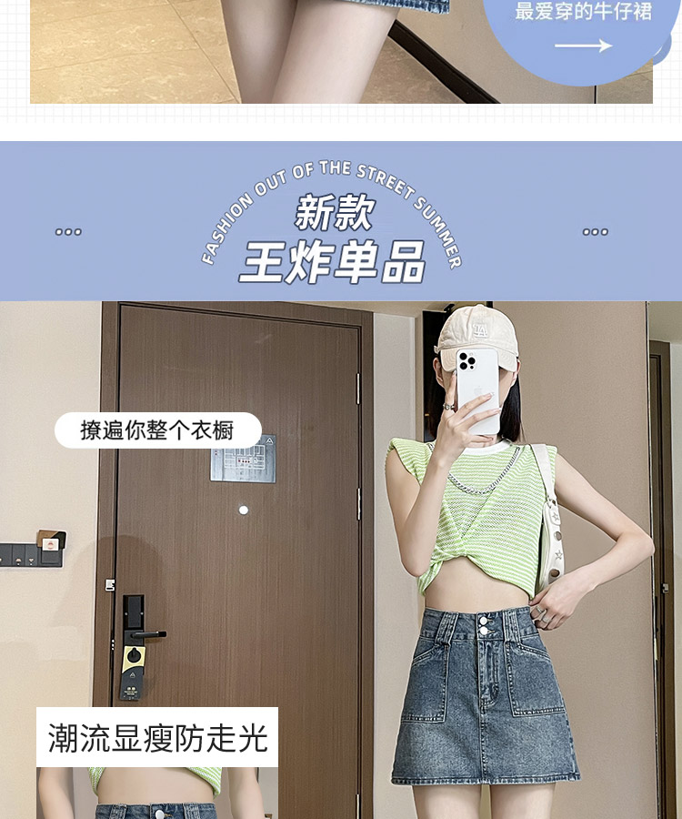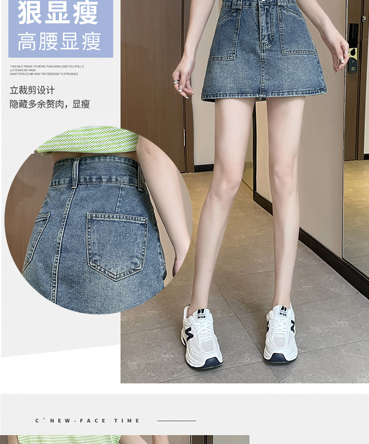 Джинсовая юбка Юбка-трапеция женская, лето 2025, новая короткая юбка с высокой талией, полуюбка, юбка, закрывающая бедра, модная юбка в один шаг