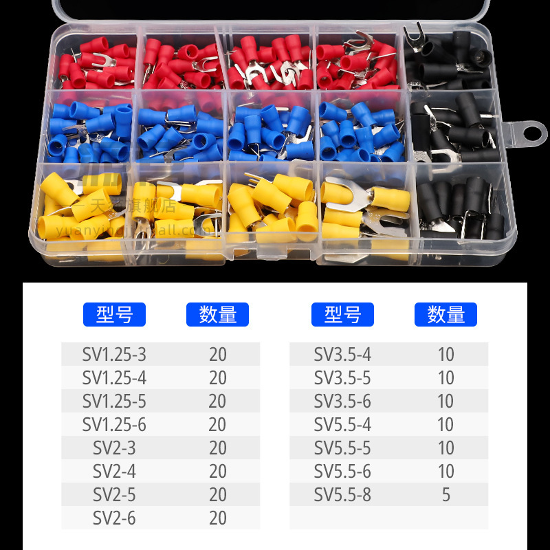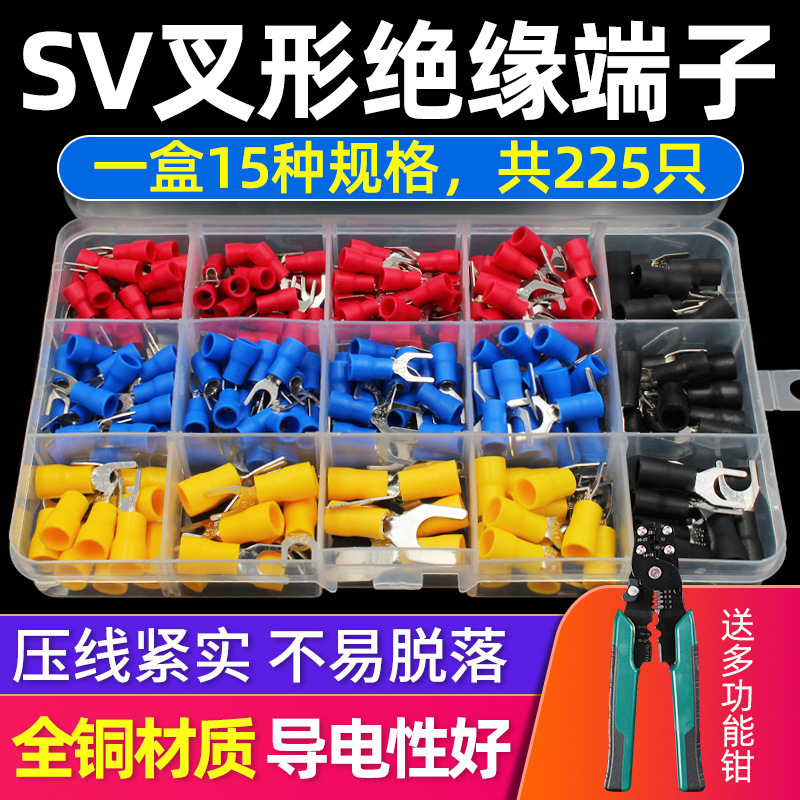 Клеммный наконечник SV для трансграничных соединений, U-образный, предварительно изолированный, набор клемм холодной прессовки, медная проволока, 225 шт., в коробке