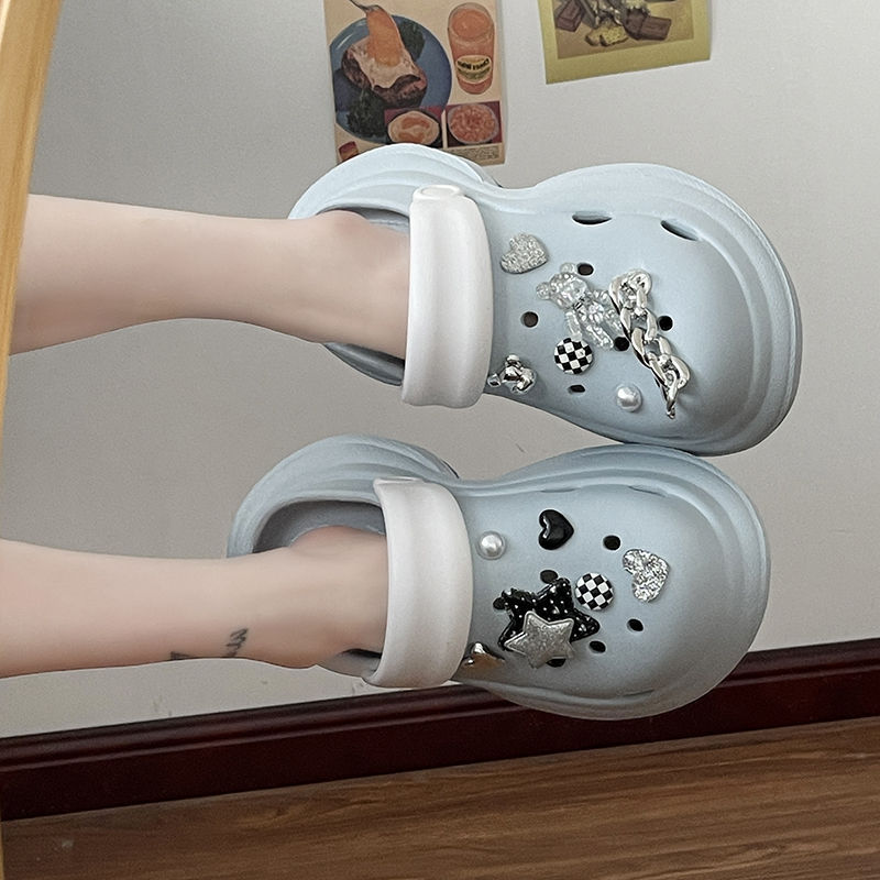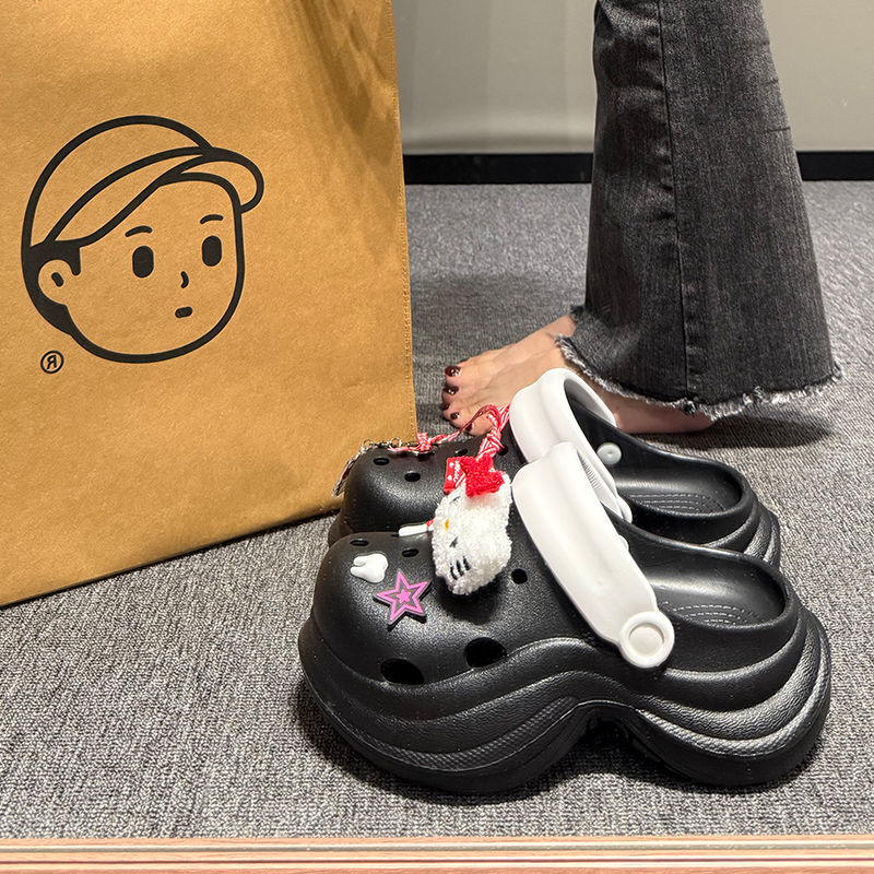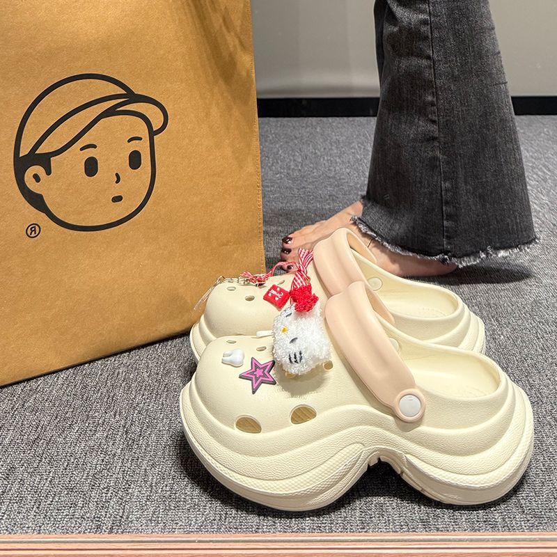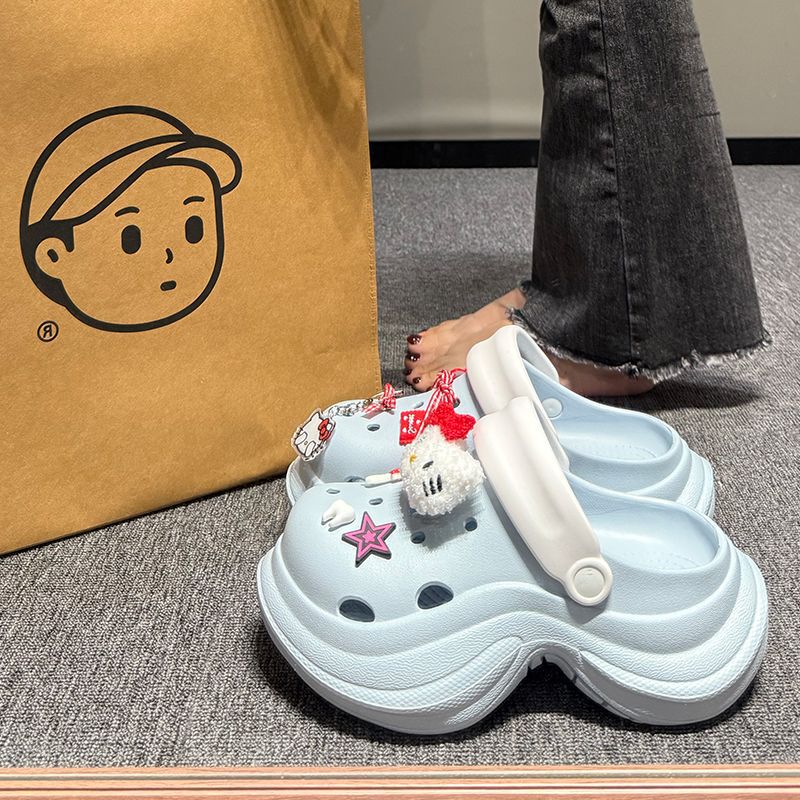 Женские крокодиловые туфли 2025 года, новые, увеличивающие рост, дышащие, мягкие, на толстой подошве, пляжные туфли для верхней одежды, легкие, нескользящие сандалии