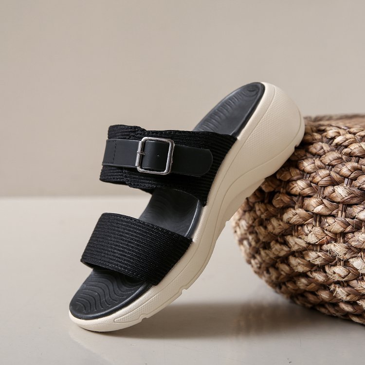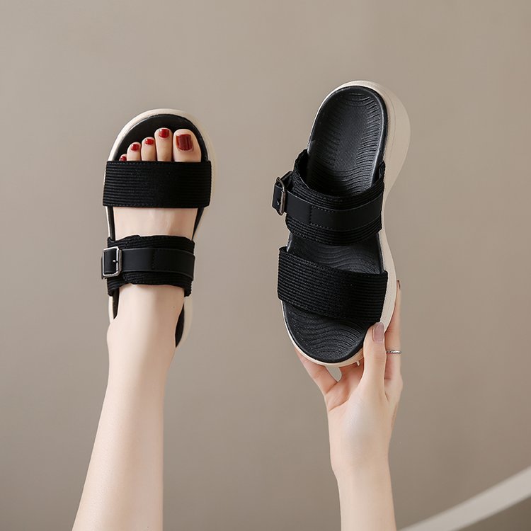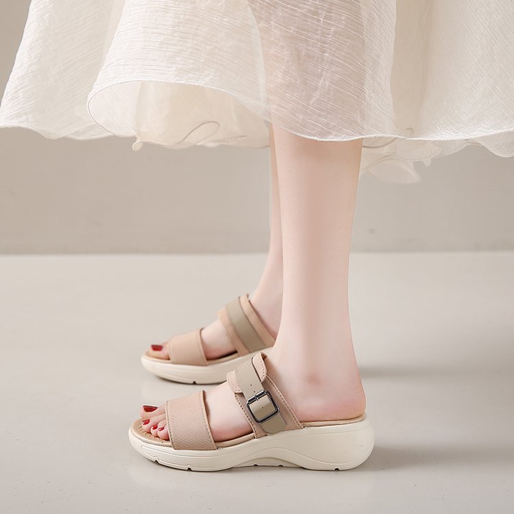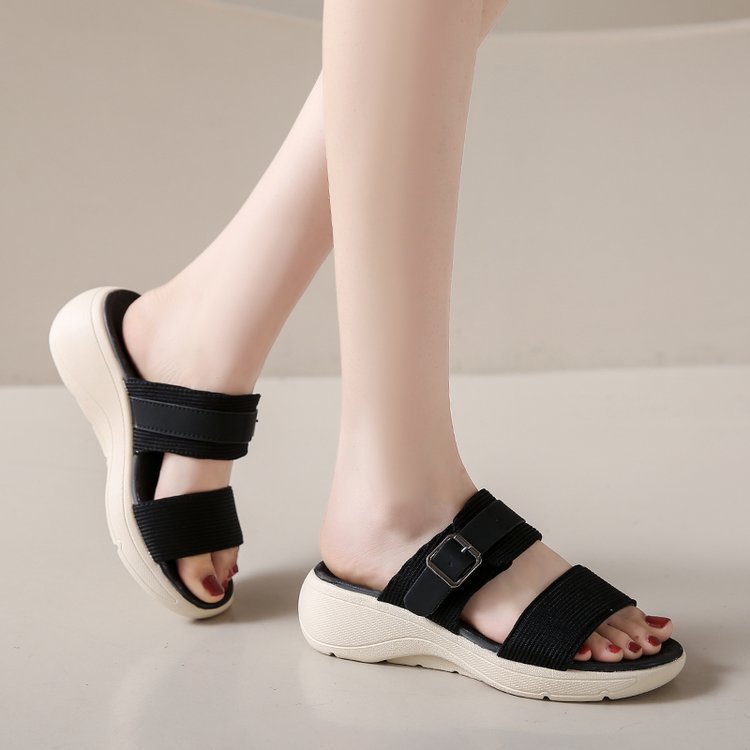 Женские домашние тапочки-сандалии на платформе с клиновидным каблуком, весна-осень 2025 года, большие размеры, толстая подошва