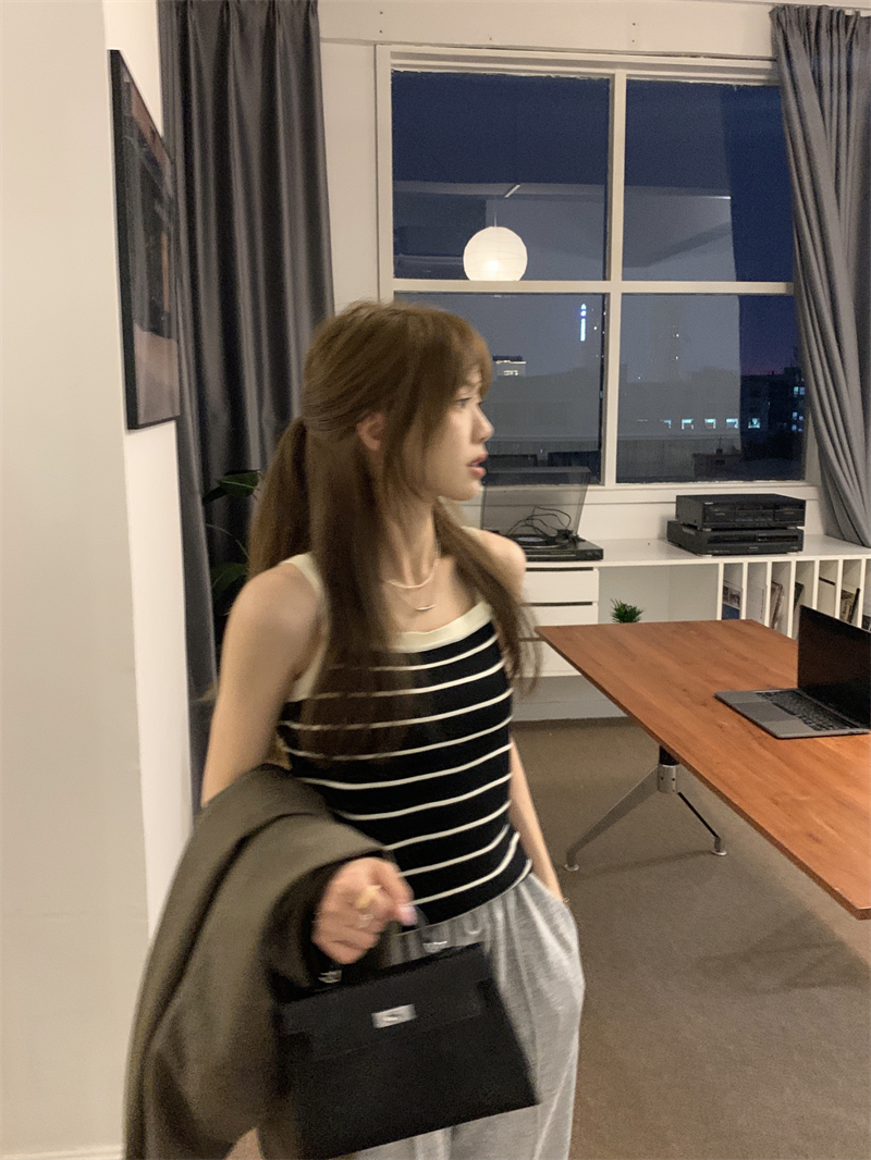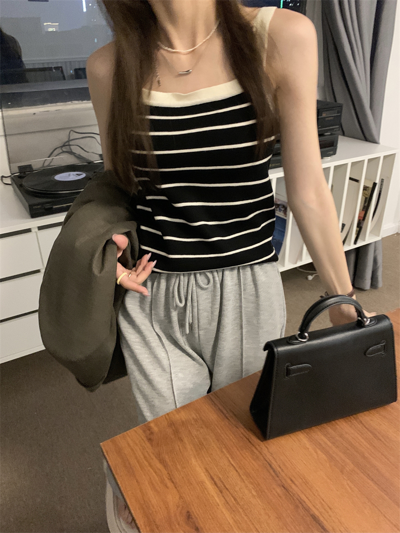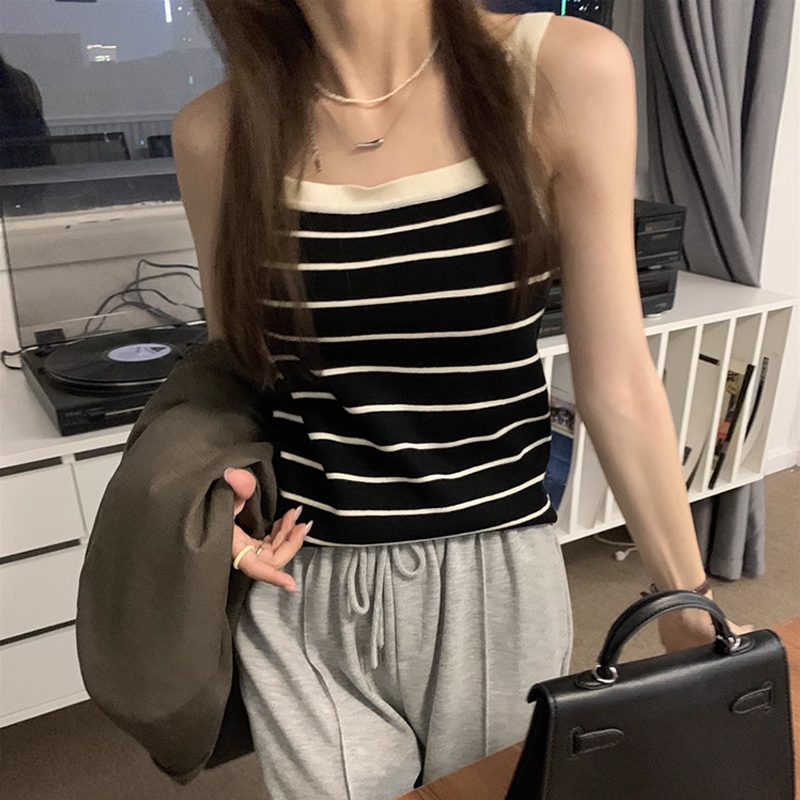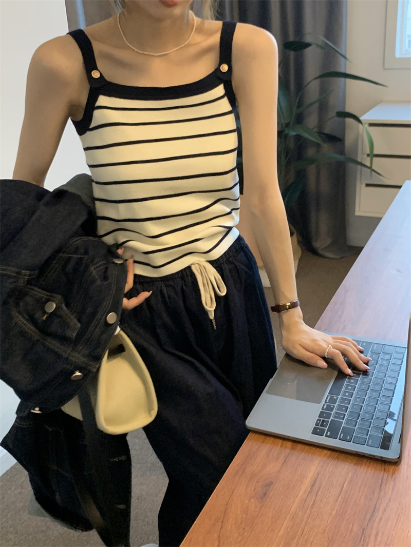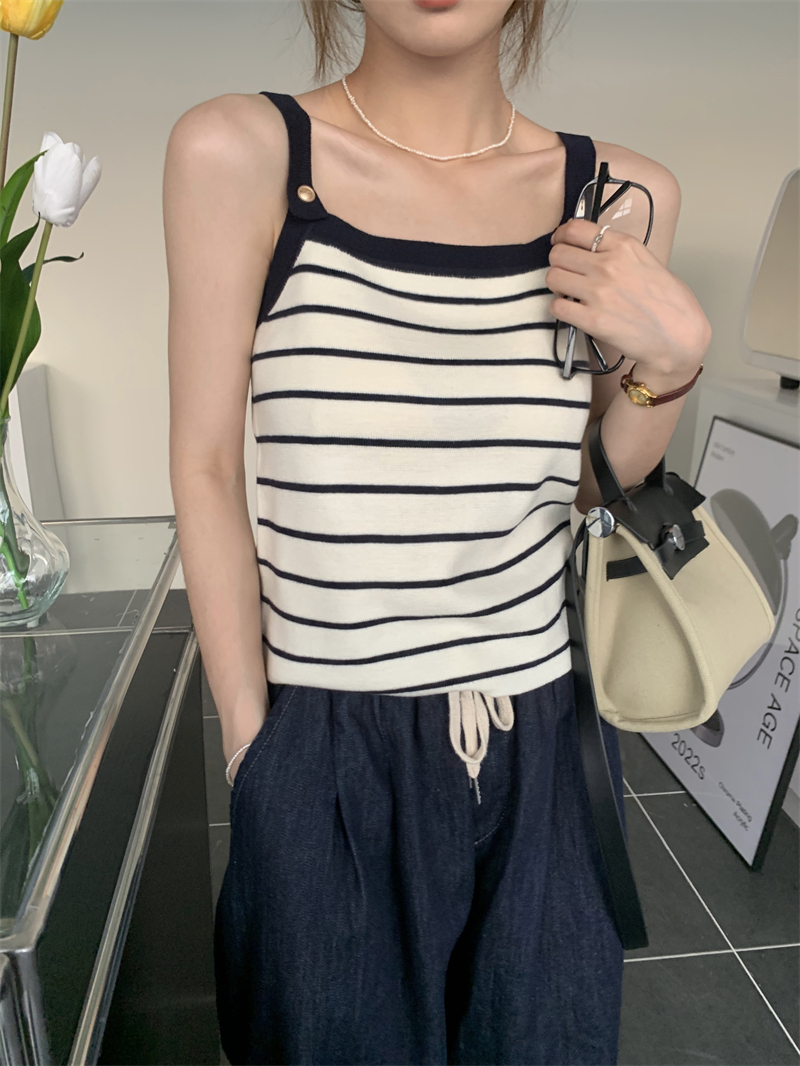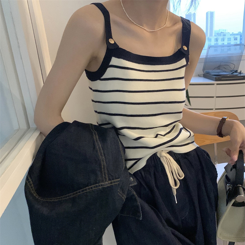 Трикотажный жилет в полоску, женский внутренний летний корейский дизайн