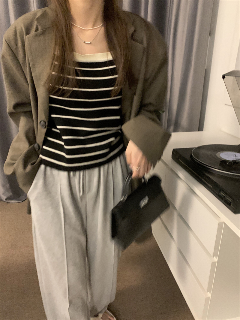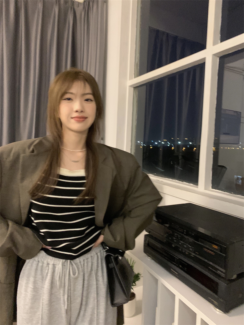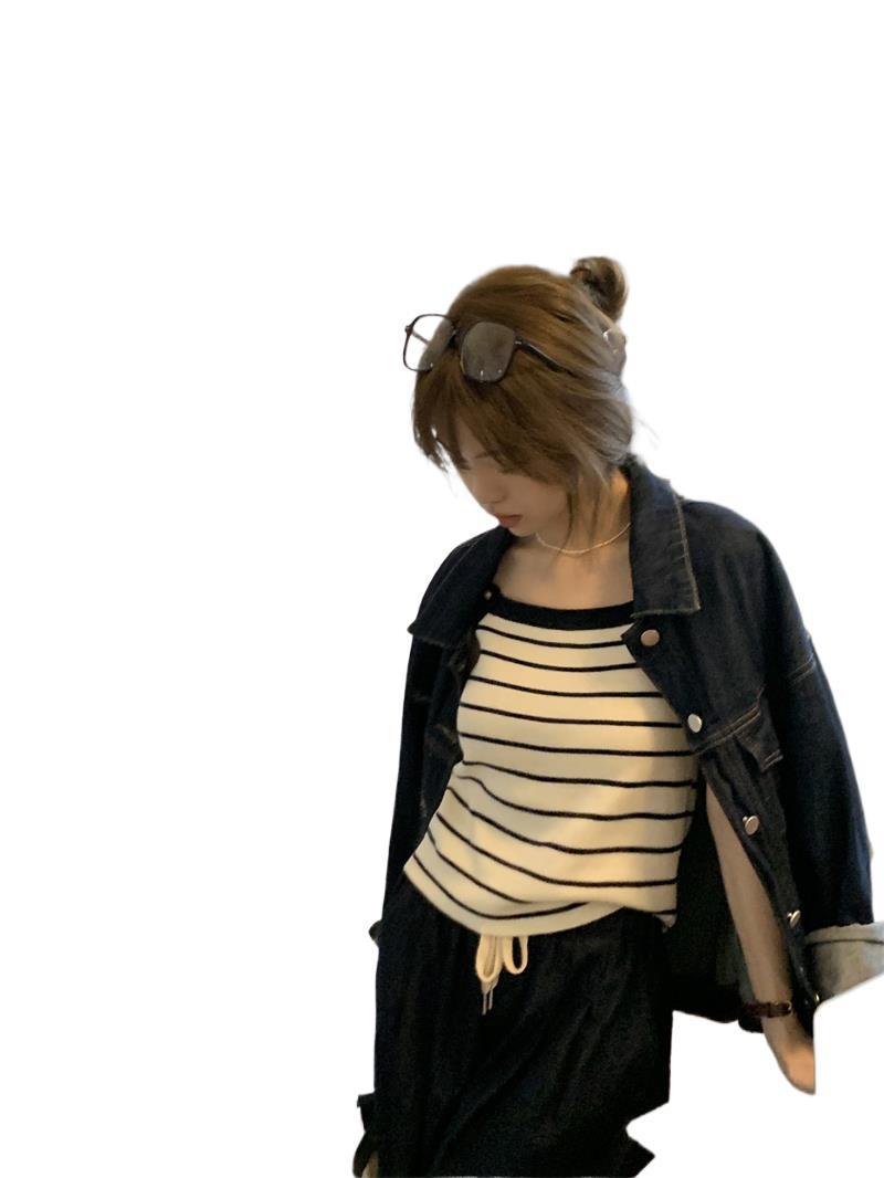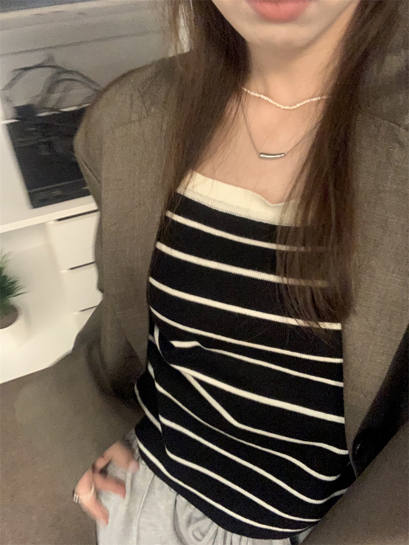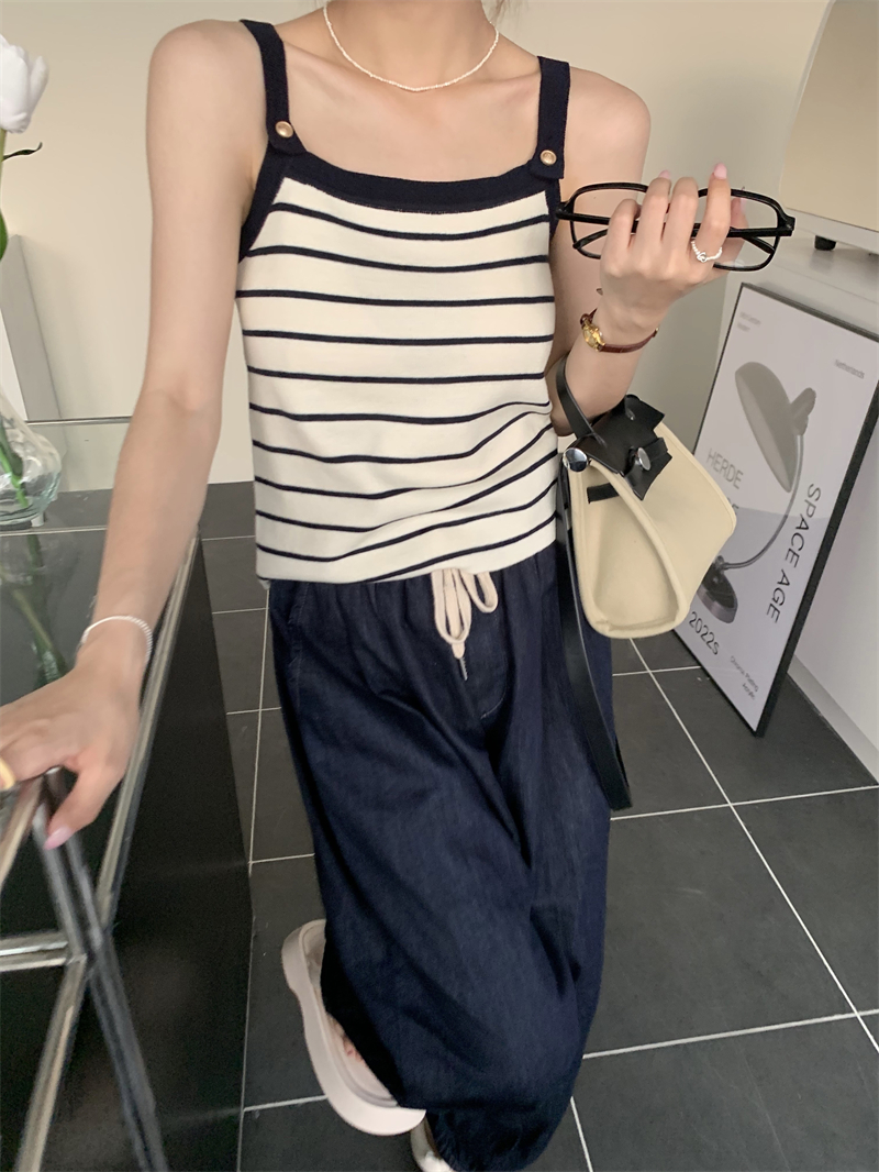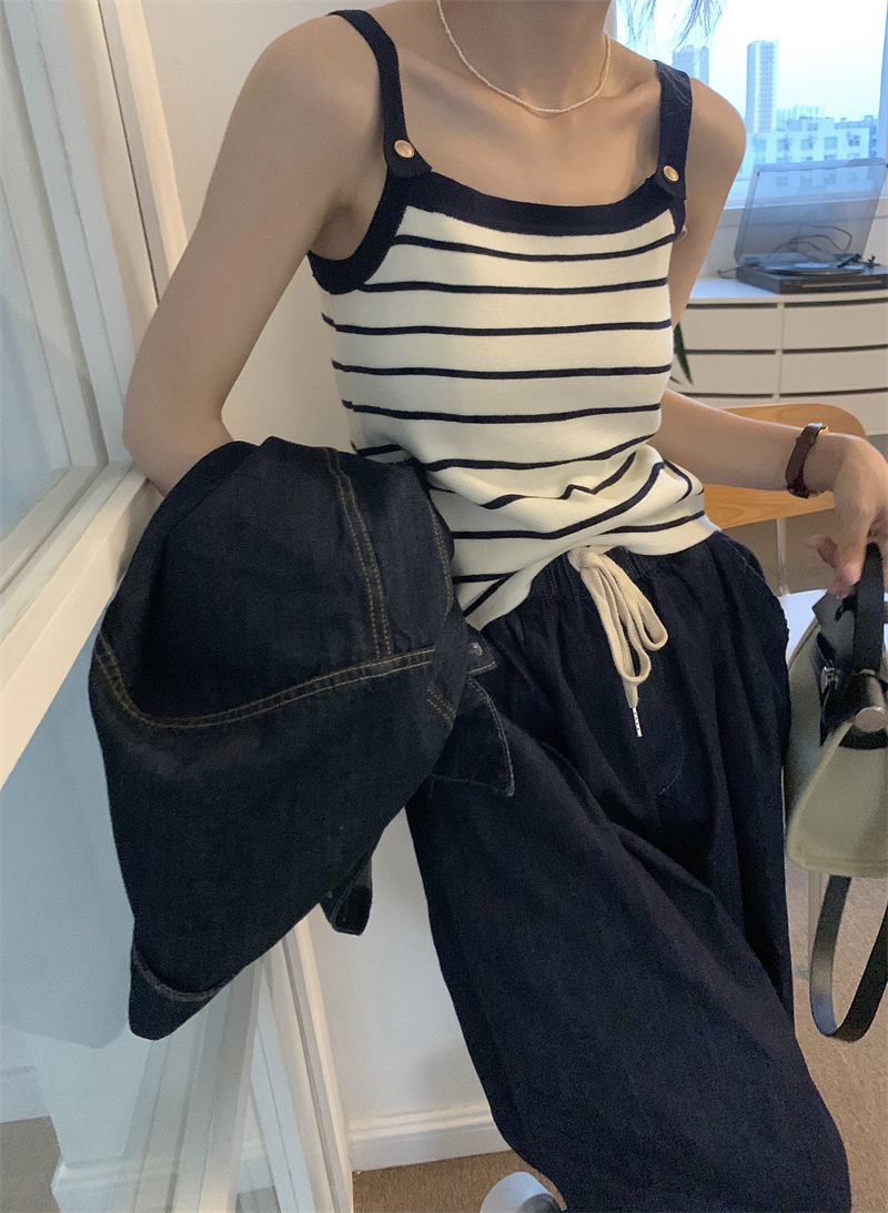Трикотажный жилет в полоску, женский внутренний летний корейский дизайн