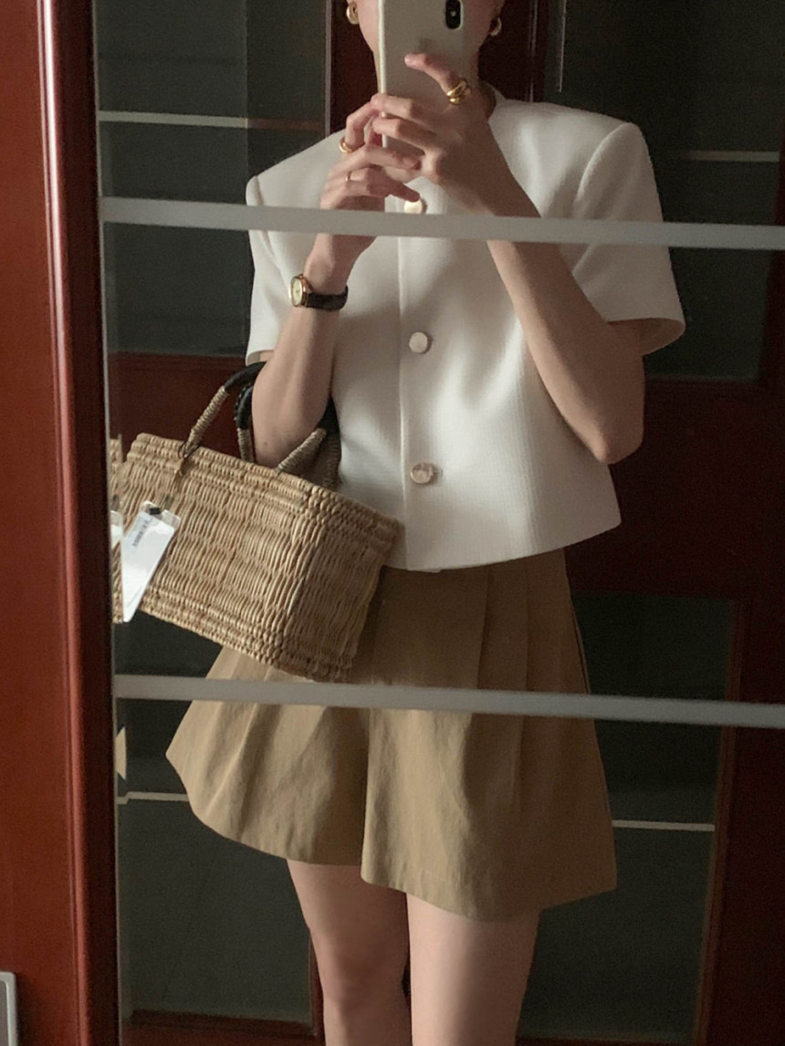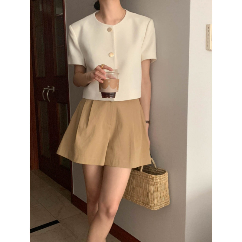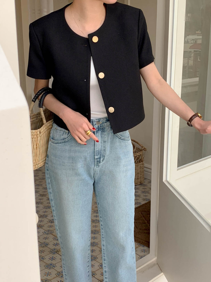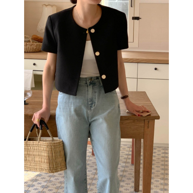 В наличии Корейский шикарный французский универсальный однобортный топ в стиле Шанель с круглым вырезом