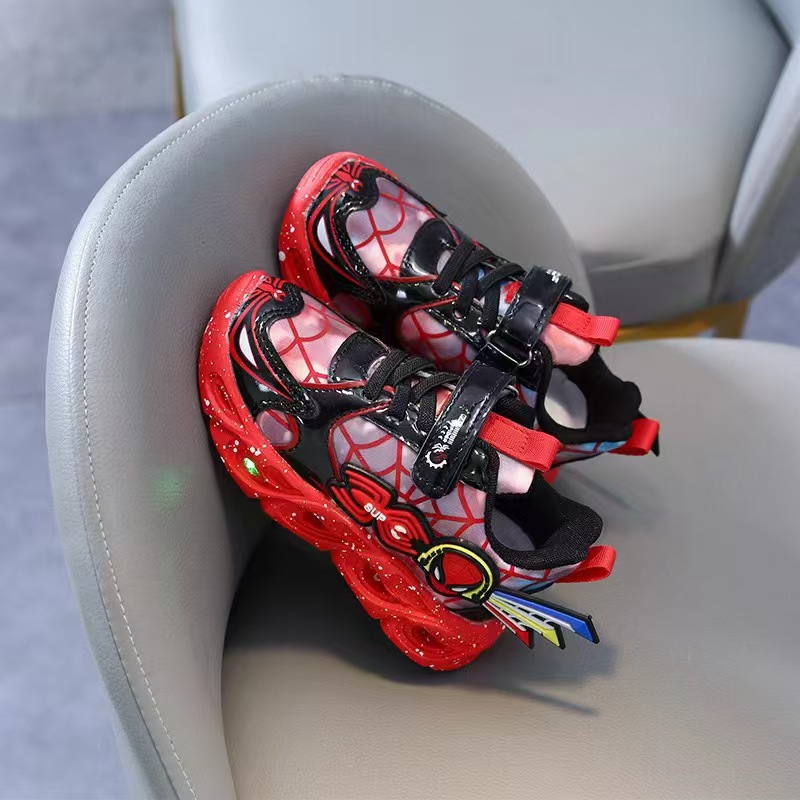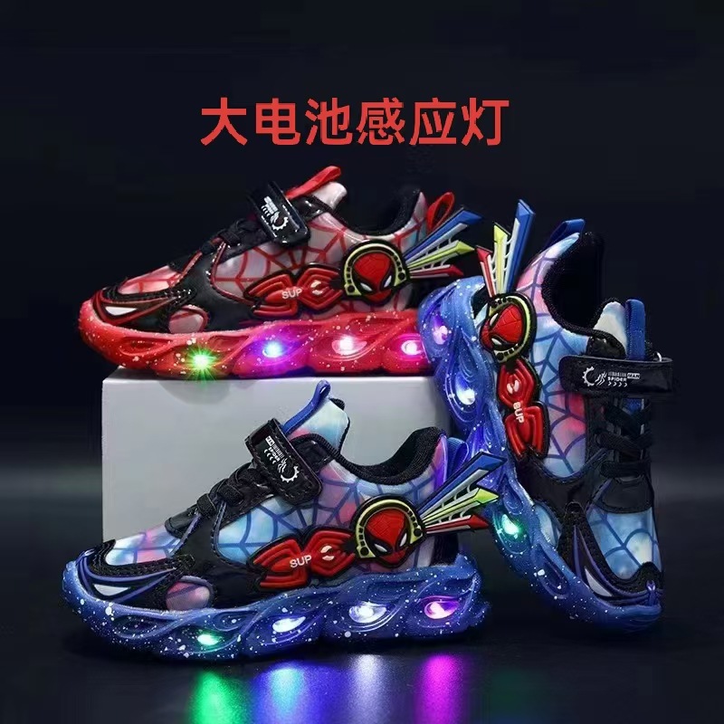 Человек-паук с лампой обувь для мальчиков осень-зима 2025 кожаные водонепроницаемые детские кроссовки