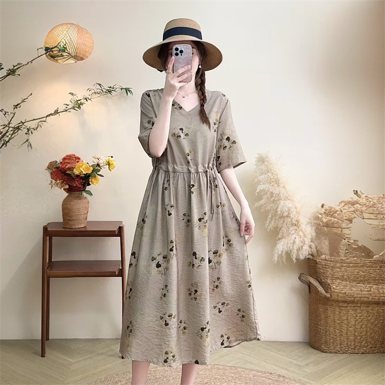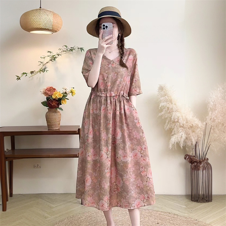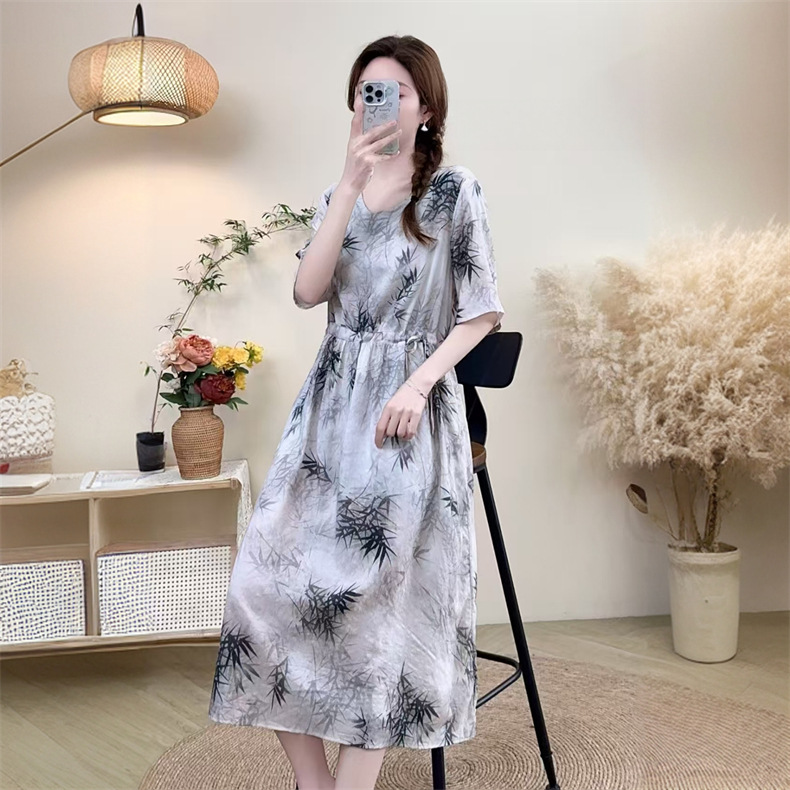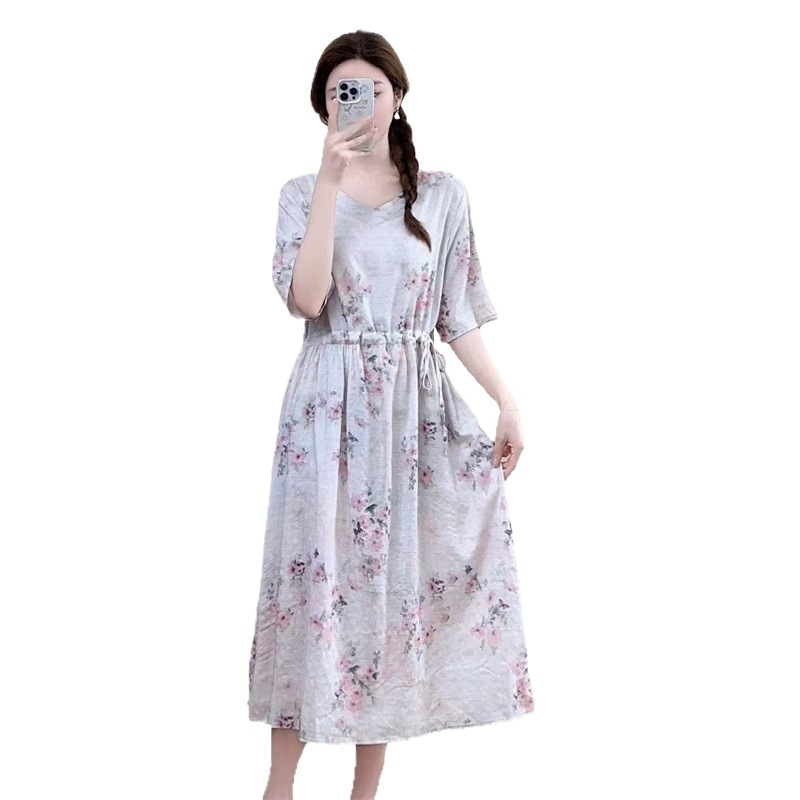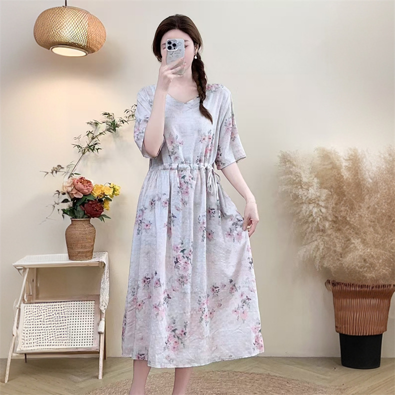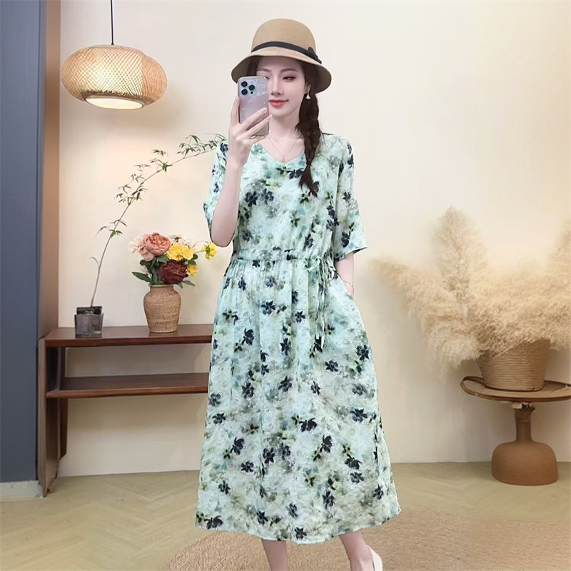 2025 новое платье с длинными рукавами, модное новое платье с цветочным принтом, большой размер, юбка средней длины, закрывающая живот, для похудения