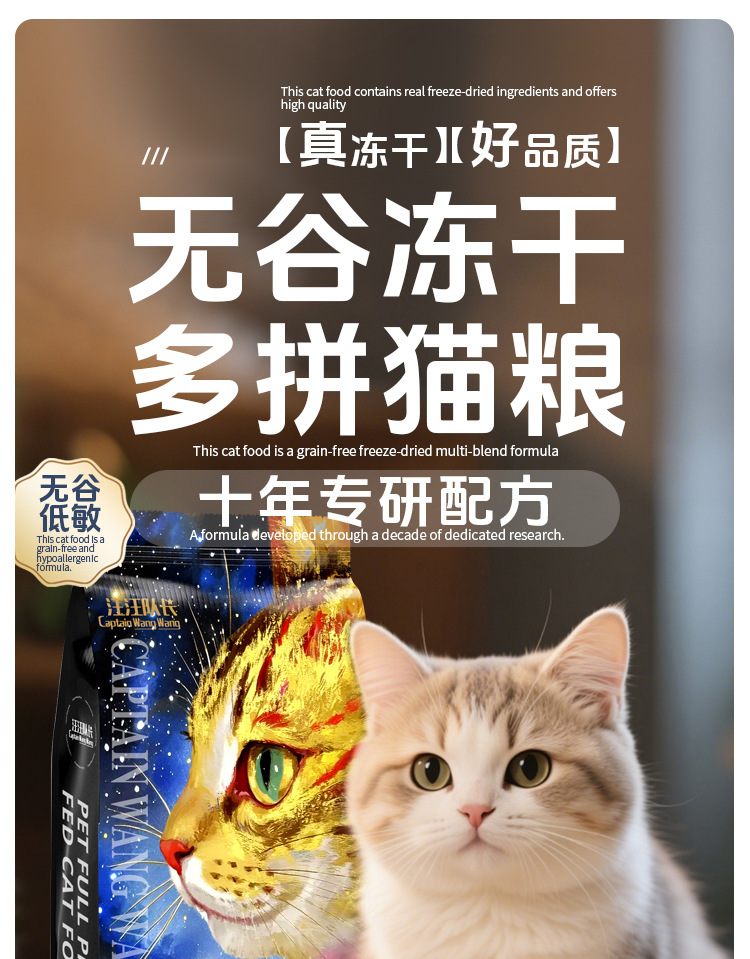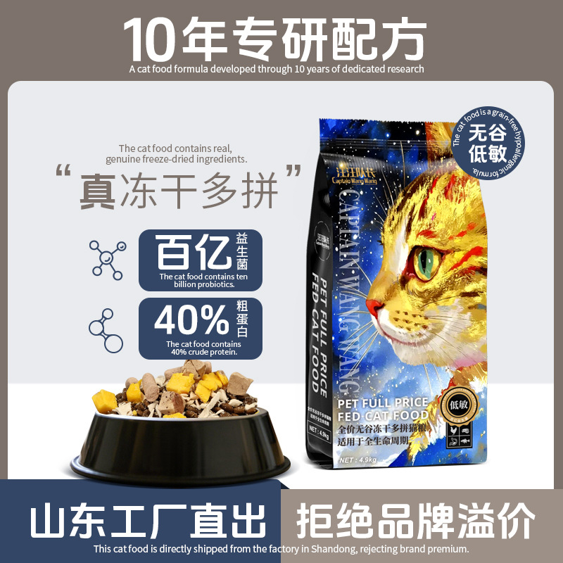 Корм для кошек Captain Woof, лиофилизированный куриный яичный желток, мясо с сырыми костями, куриная печень, утиная печень, многозерновой корм для кошек, основной корм для взрослых и котят